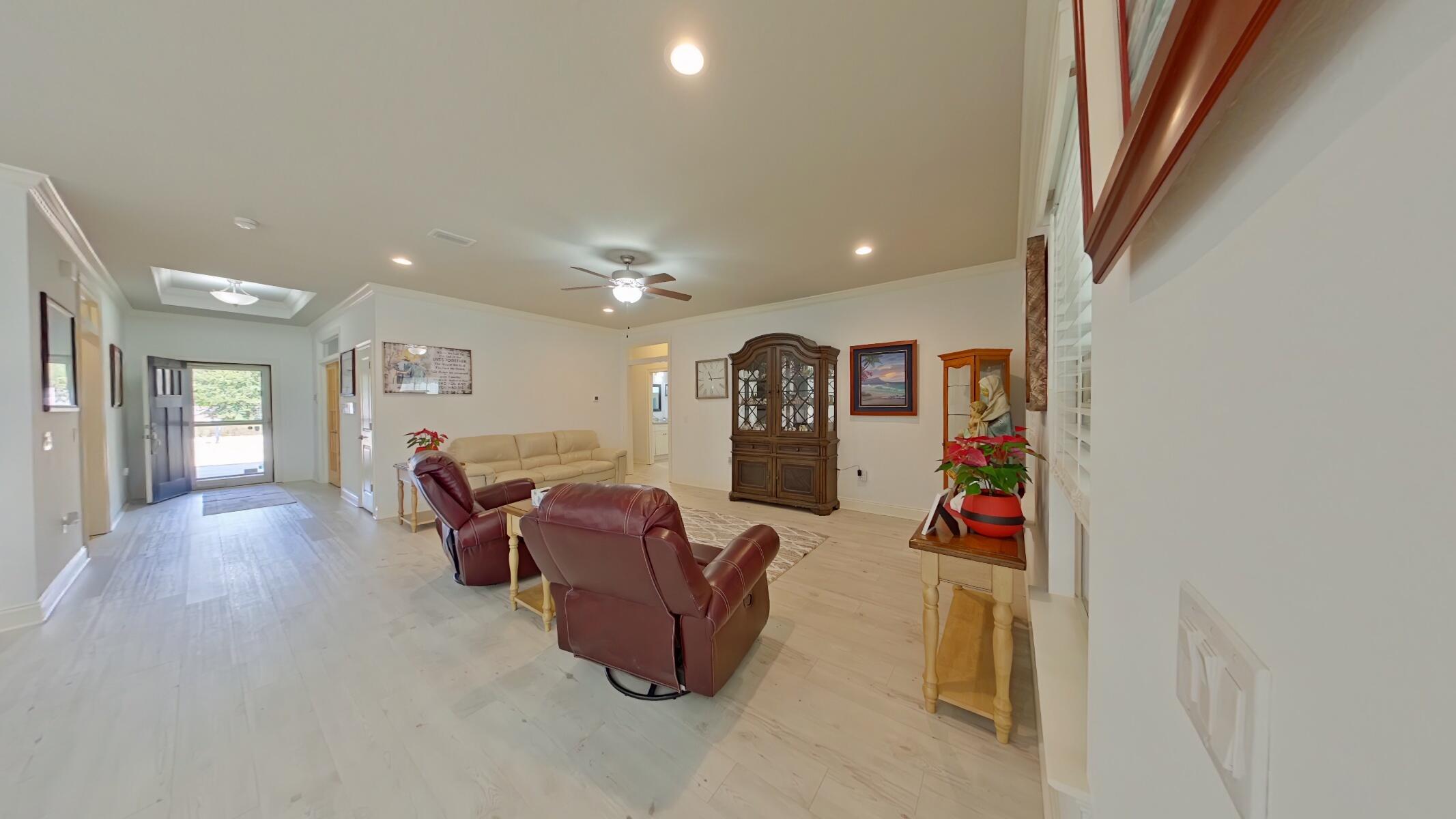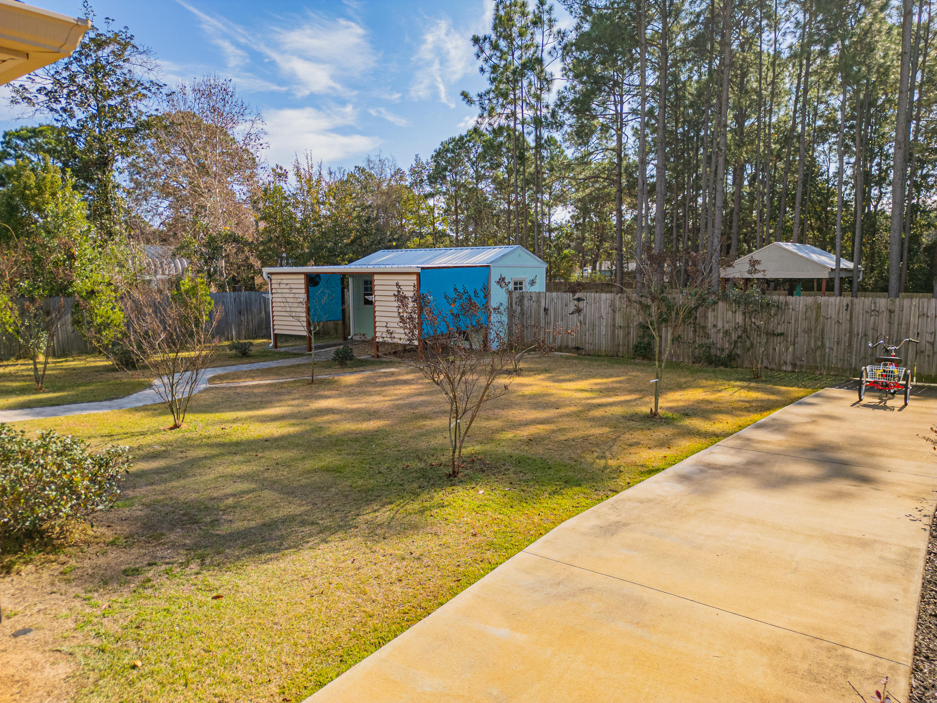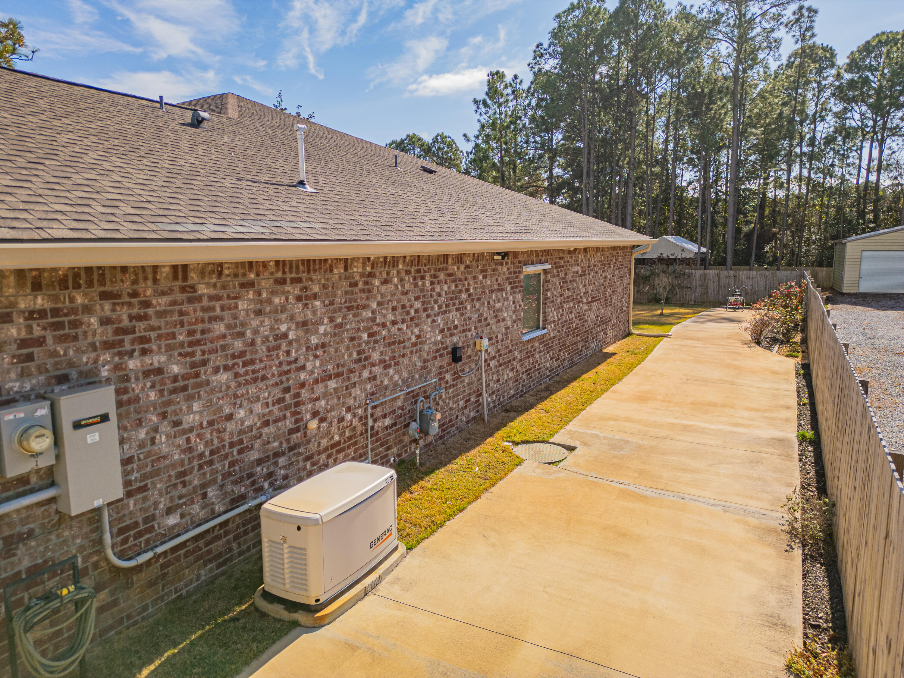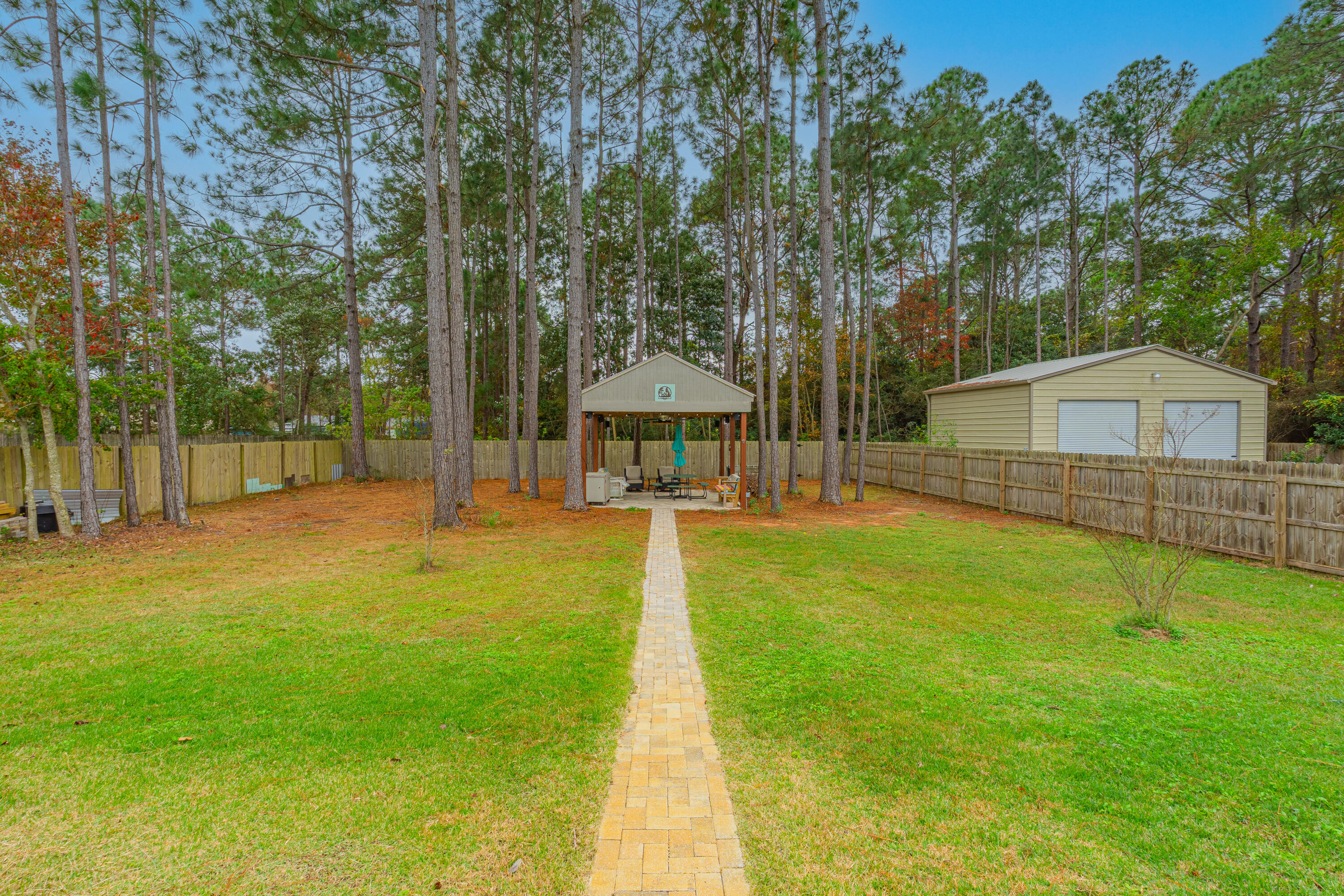 Exceptional home located in prime East Navarre. The home offers an open split floor plan and has been updated inside and out. The Shaker style cabinet's in the kitchen and baths have been professionally painted along with new granite in Kitchen. The sellers enclosed the covered patio to make it a large Florida room, with tile floors, ceiling fan and a plug in Air/Heat system. The interior offers LVP flooring in the common areas, bedrooms, tile in the bathrooms and laundry room. Wide baseboard, crown molding, and tray ceiling with crown molding accents in the primary bedroom, dining, and foyer. They also added a tankless hot water heater. The exterior has the timeless durability of brick, cement fiber board accents, and an architectural shingled roof. Complete with a lawn pump/sprinkler system, fenced backyard. They also added extra driveway that go all the way to the back fence for RV parking with electrical hookup, an EV plug in the garage, a Generac generator, a whole house water filtration system, a workshop with electric, brick pavers that lead to the workshop with a seating area, and leads beyond the fence to a cover Pergola with electric and a fireplace area. The lot goes beyond the Pergola area.