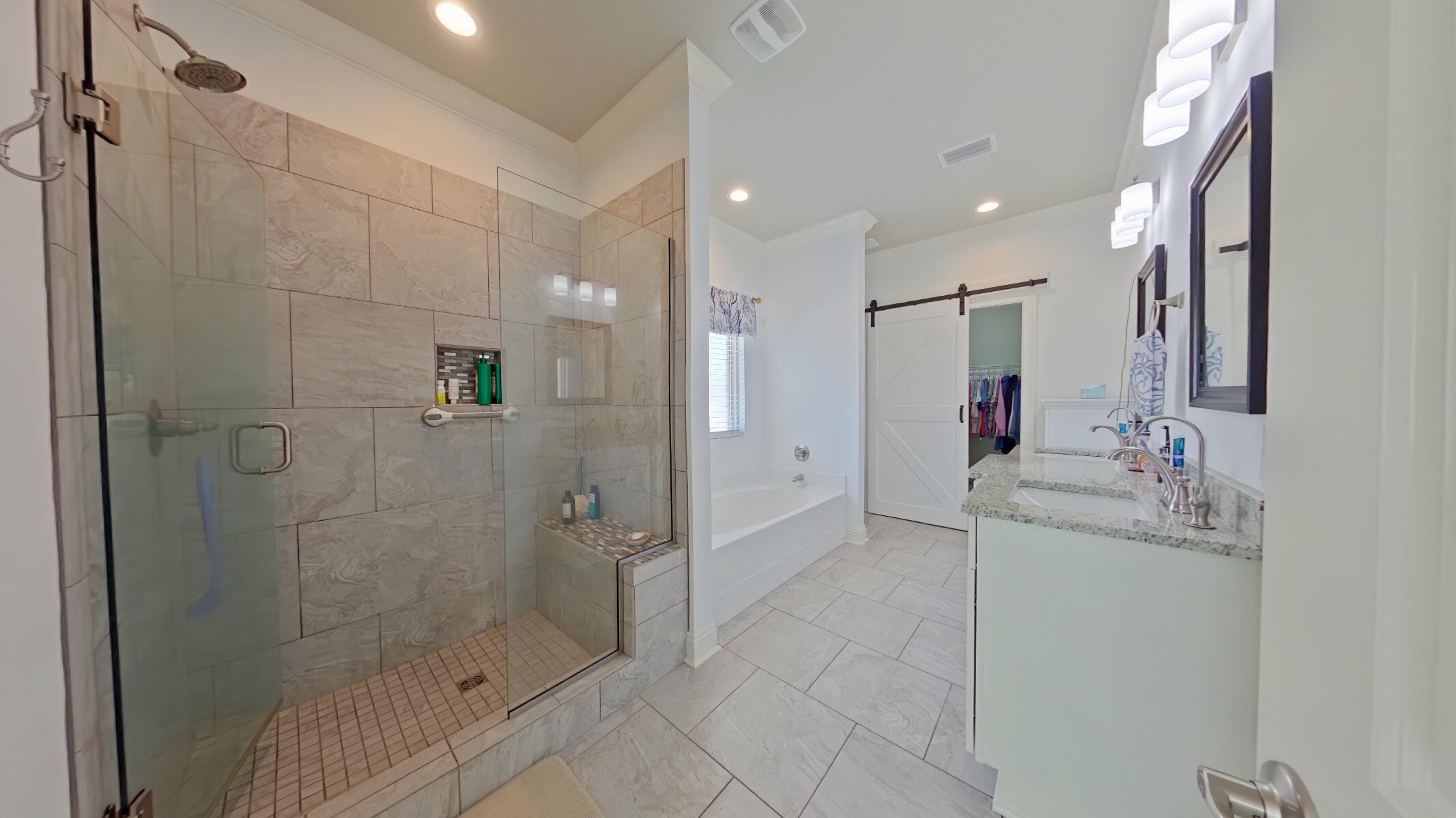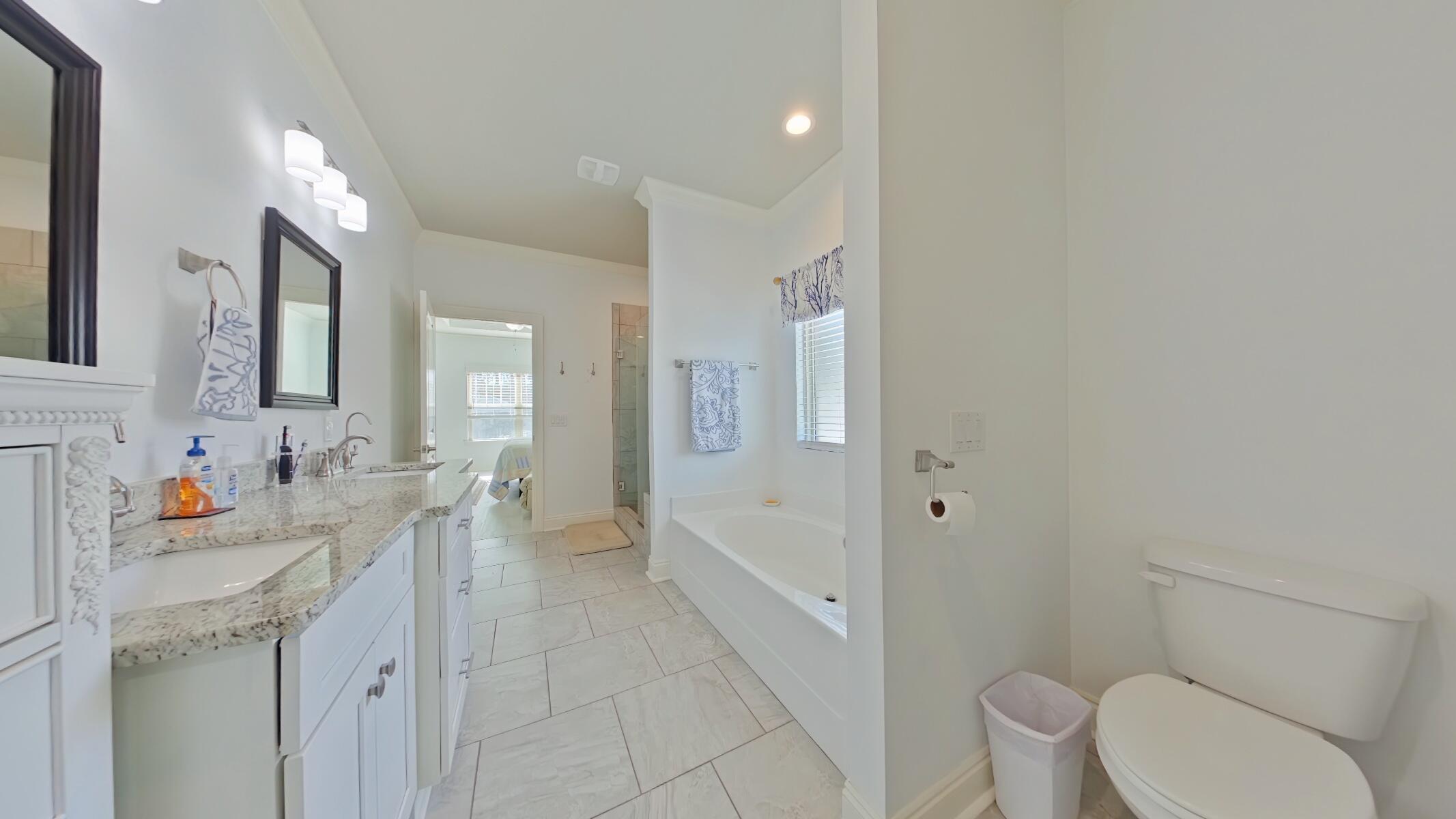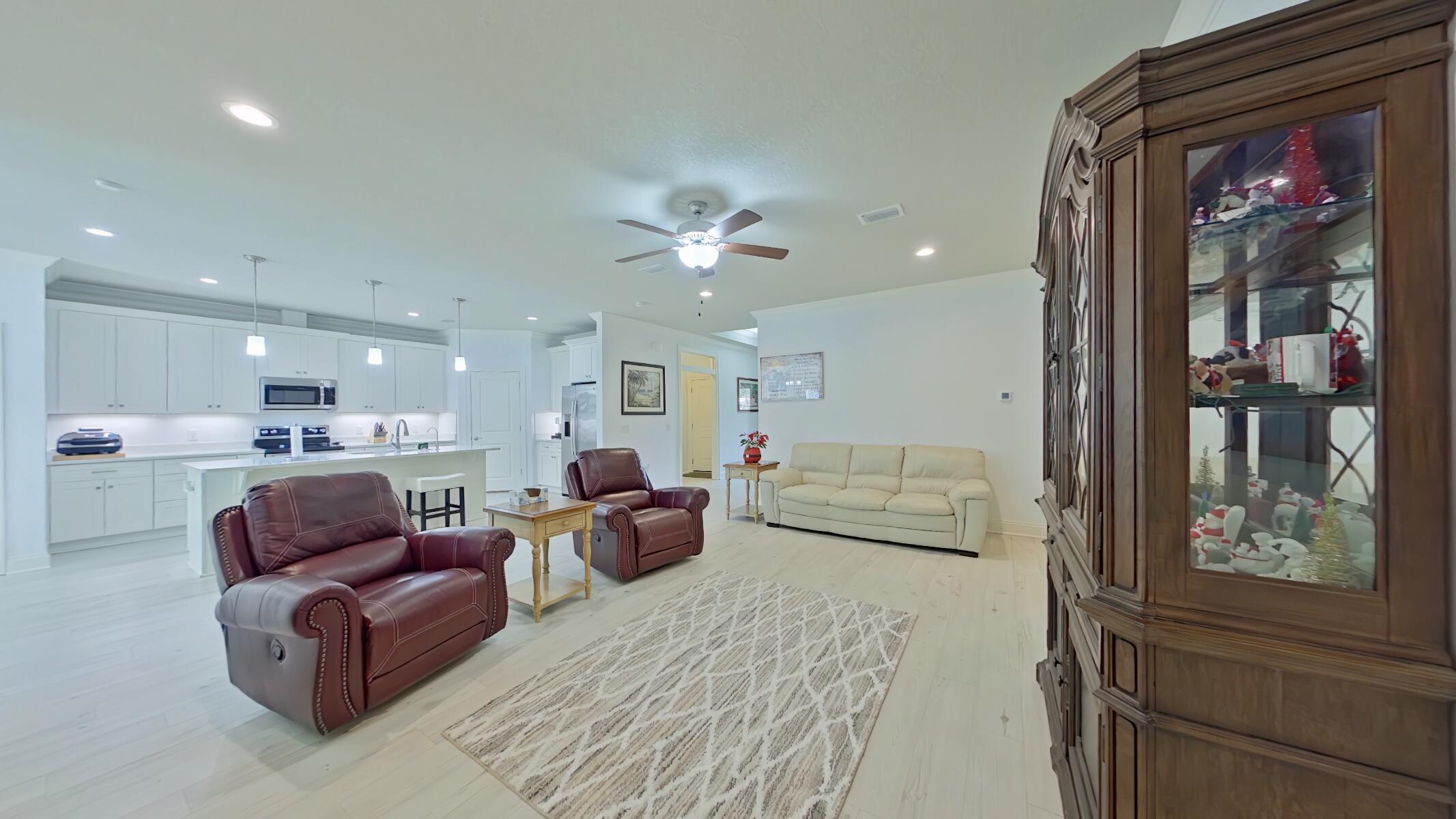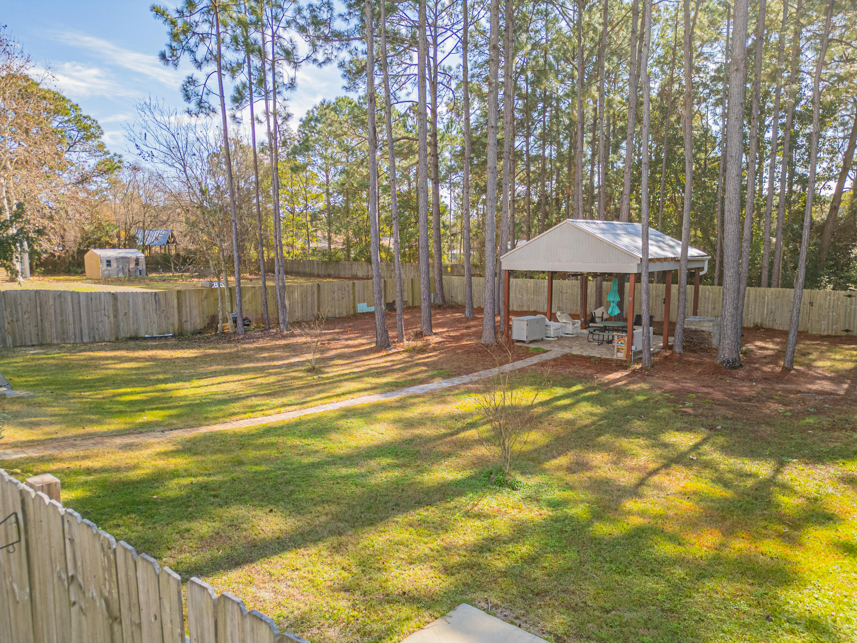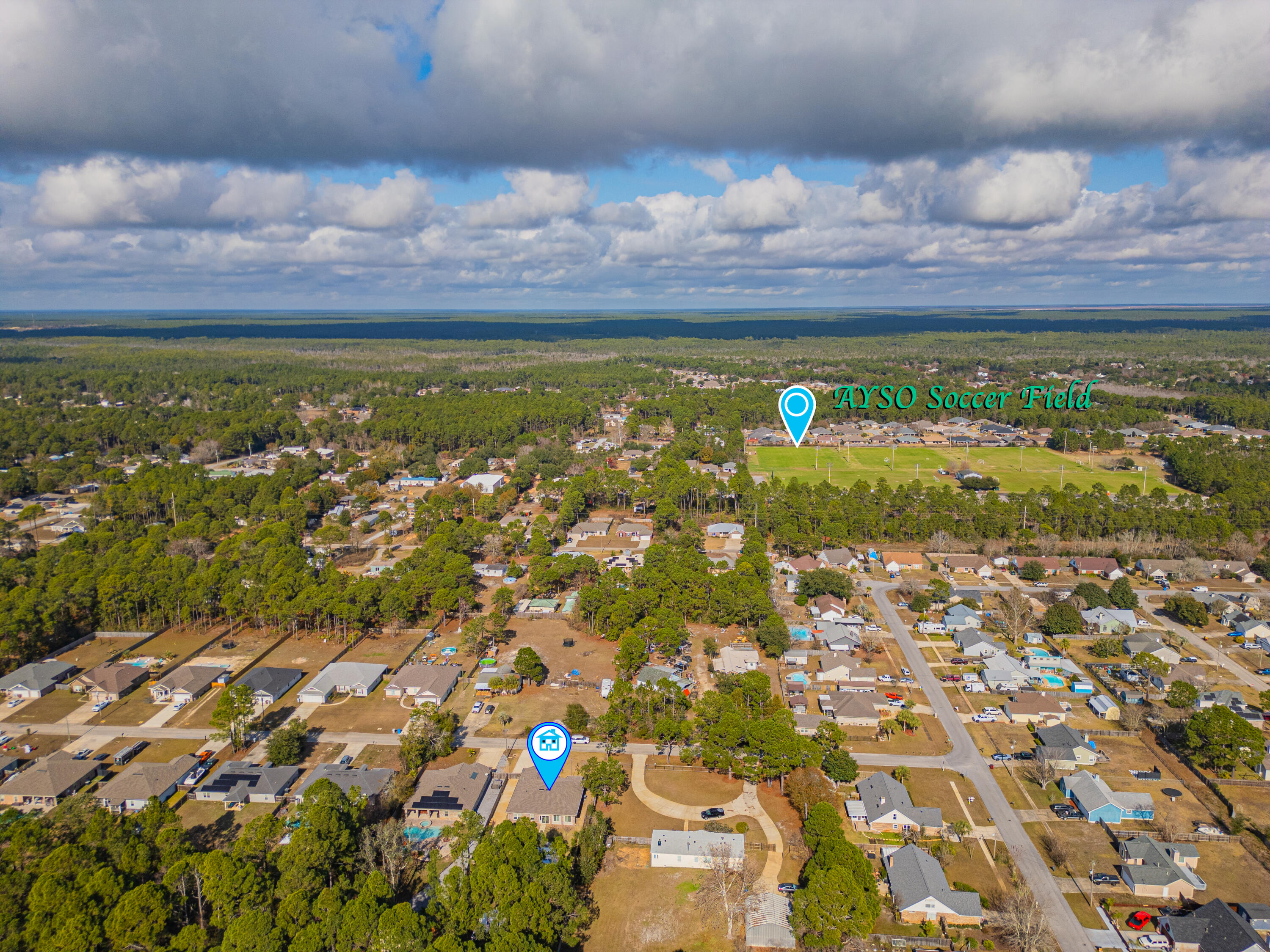 Exceptional home located in prime East Navarre. The home offers an open split floor plan and has been updated inside and out. The Shaker style cabinet's in the kitchen and baths have been professionally painted along with new granite in Kitchen. The sellers enclosed the covered patio to make it a large Florida room, with tile floors, ceiling fan and a plug in Air/Heat system. The interior offers LVP flooring in the common areas, bedrooms, tile in the bathrooms and laundry room. Wide baseboard, crown molding, and tray ceiling with crown molding accents in the primary bedroom, dining, and foyer. They also added a tankless hot water heater. The exterior has the timeless durability of brick, cement fiber board accents, and an architectural shingled roof. Complete with a lawn pump/sprinkler system, fenced backyard. They also added extra driveway that go all the way to the back fence for RV parking with electrical hookup, an EV plug in the garage, a Generac generator, a whole house water filtration system, a workshop with electric, brick pavers that lead to the workshop with a seating area, and leads beyond the fence to a cover Pergola with electric and a fireplace area. The lot goes beyond the Pergola area.