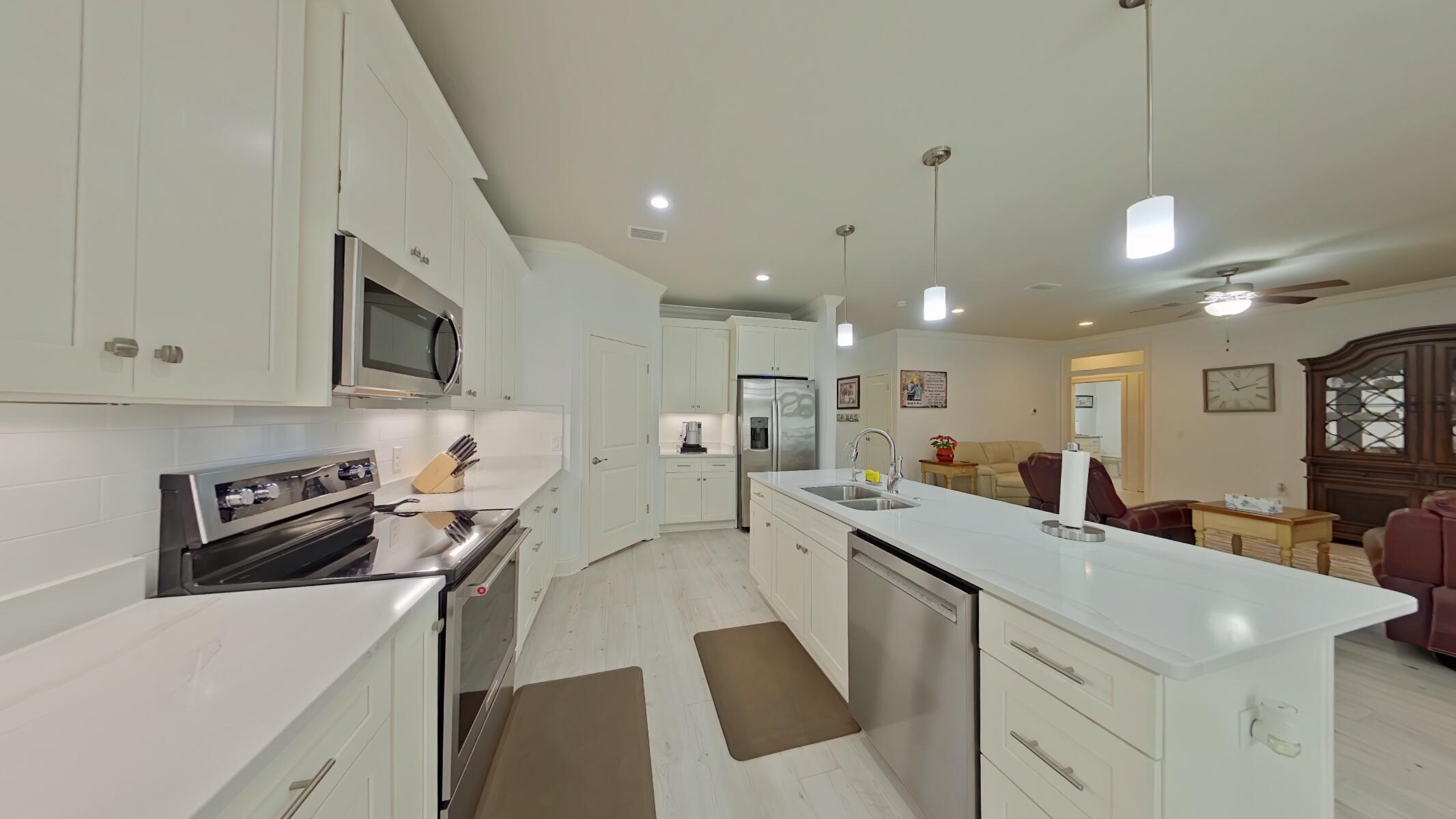 | INTERIOR | Ceiling Crwn Molding,Ceiling Raised,Ceiling Tray/Cofferd,Floor Tile,Floor Vinyl,Kitchen Island,Lighting Recessed,Pantry,Renovated,Split Bedroom,Washer/Dryer Hookup,Window Treatmnt Some |