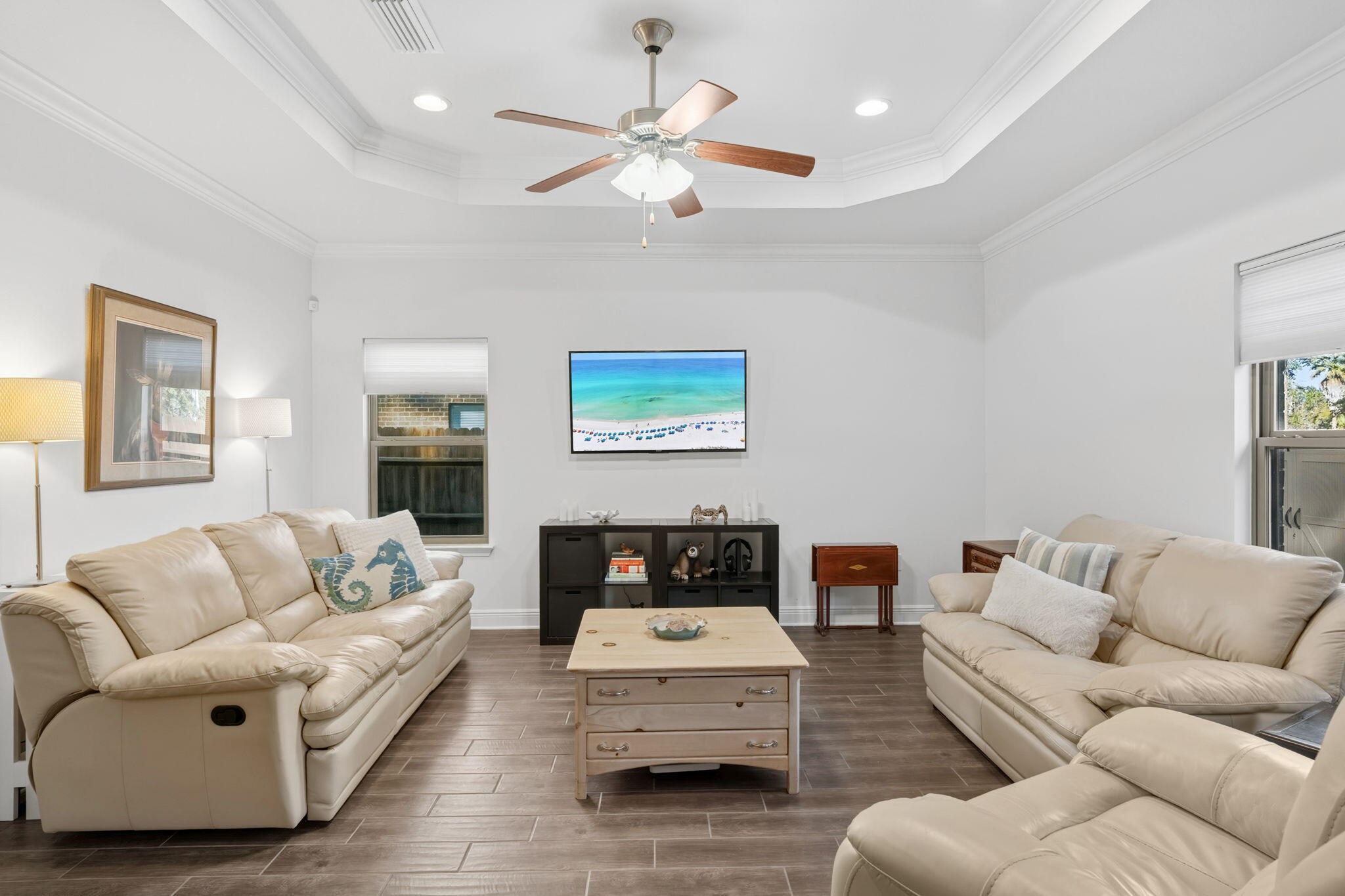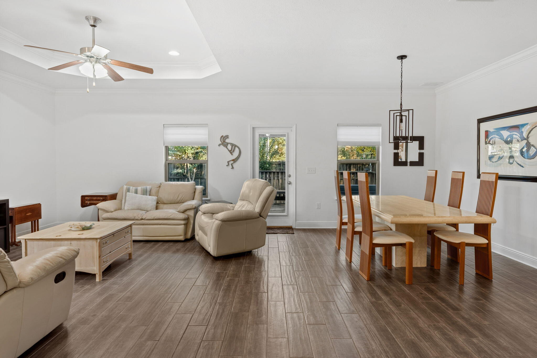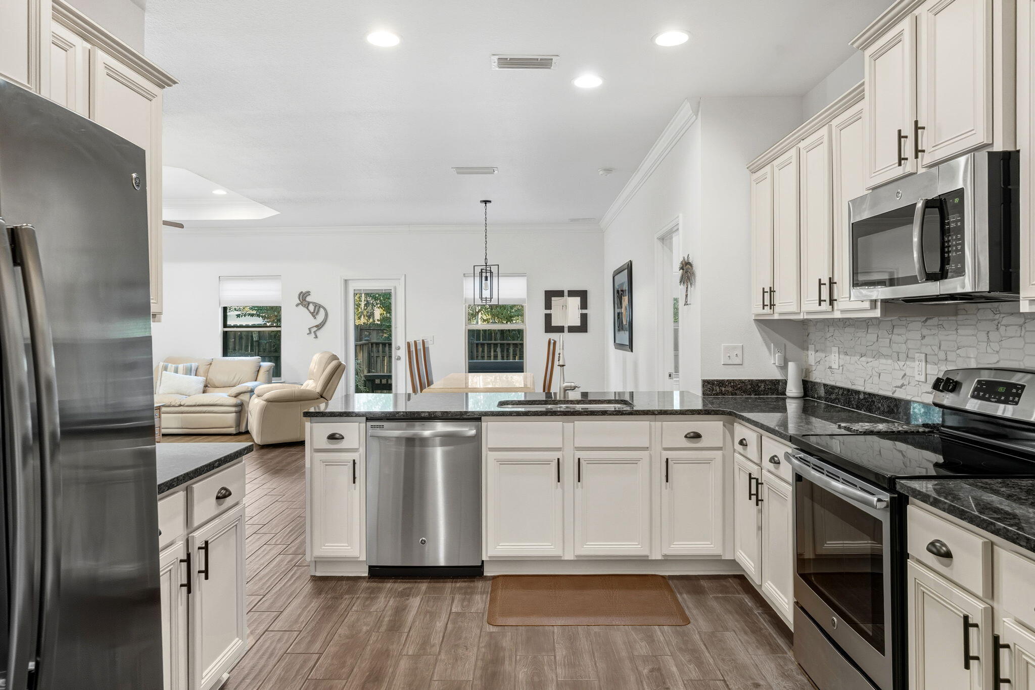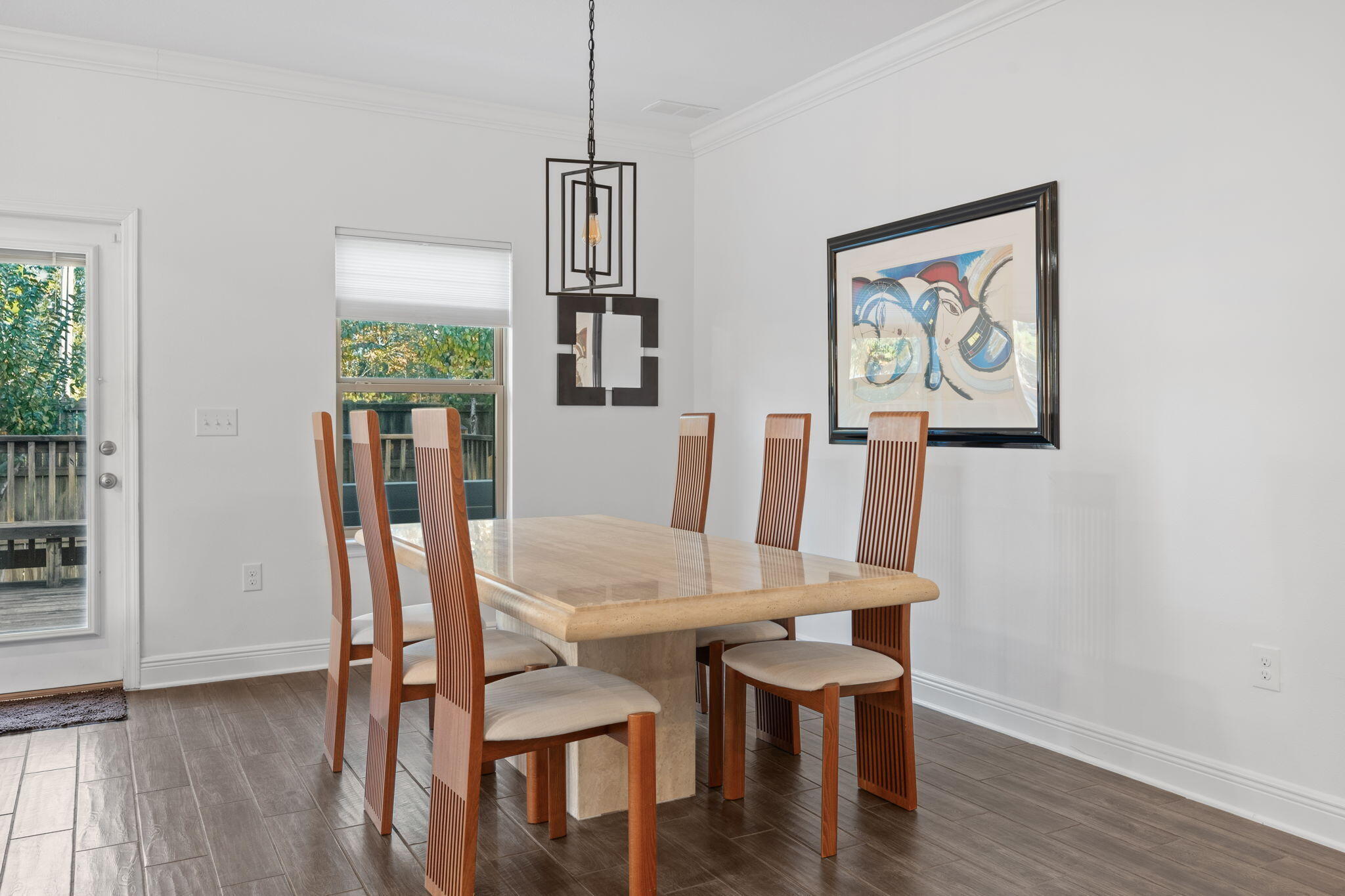 Seller is offering $5,000 toward buyer closing costs! Fall in love with this beautifully updated 3-bedroom, 2-bath home with a flex room, offering approximately 1,739 sqft of comfortable, smartly designed living space. From the moment you walk in, you'll notice thoughtful upgrades throughout: wood-plank tile flooring, modern light fixtures, granite countertops in the kitchen & baths, stainless steel appliances & a sleek backsplash that brings the whole space together. A dedicated flex/office room with shiplap walls gives you options...work from home, hobby room, additional bedroom or living area. One of the guest bedrooms even features built-in beds, maximizing both function and charm. Step outside to a fully fenced backyard with an open deck that's perfect for grilling out, entertaining or simply unwinding in your own private outdoor space. This solid brick home sits in the well-established Harstvedt Plantation community with low HOA fee & desirable X flood zone, so flood insurance is not required. You're within walking distance to the bay & just minutes from Pilcher Park and the Cessna Landing boat ramps. Plus, you're close to shopping, dining & entertainment that 30a & South Walton have to offer. Call today to arrange your private showing & see for yourself all this home has to offer!