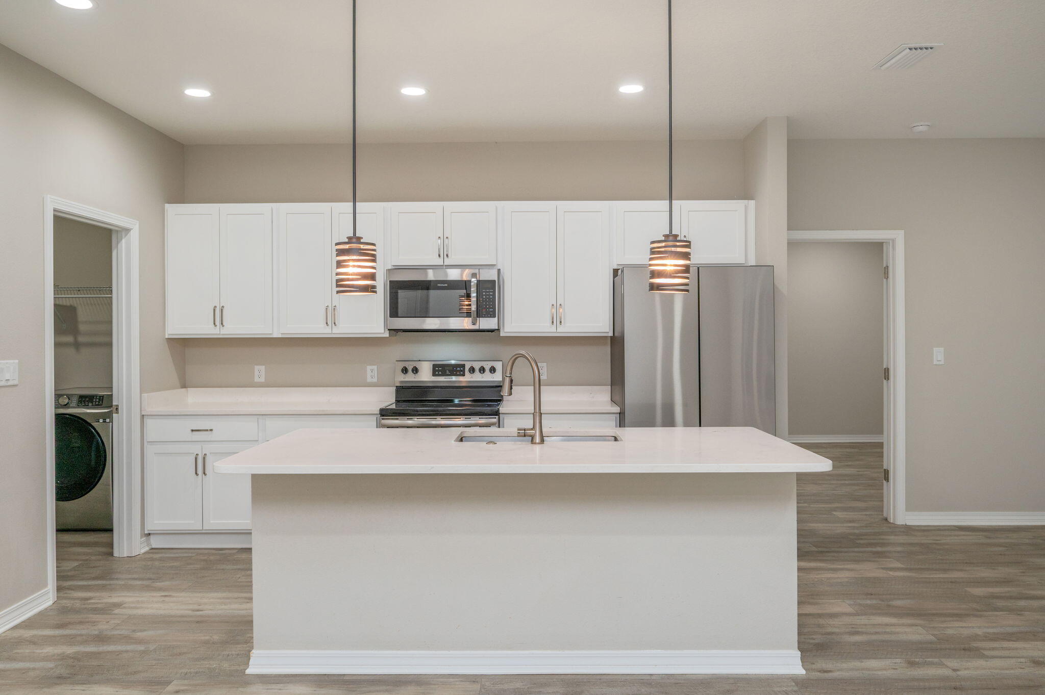 | INTERIOR | Breakfast Bar,Floor Vinyl,Floor WW Carpet,Kitchen Island,Lighting Recessed,Shelving,Split Bedroom,Washer/Dryer Hookup |