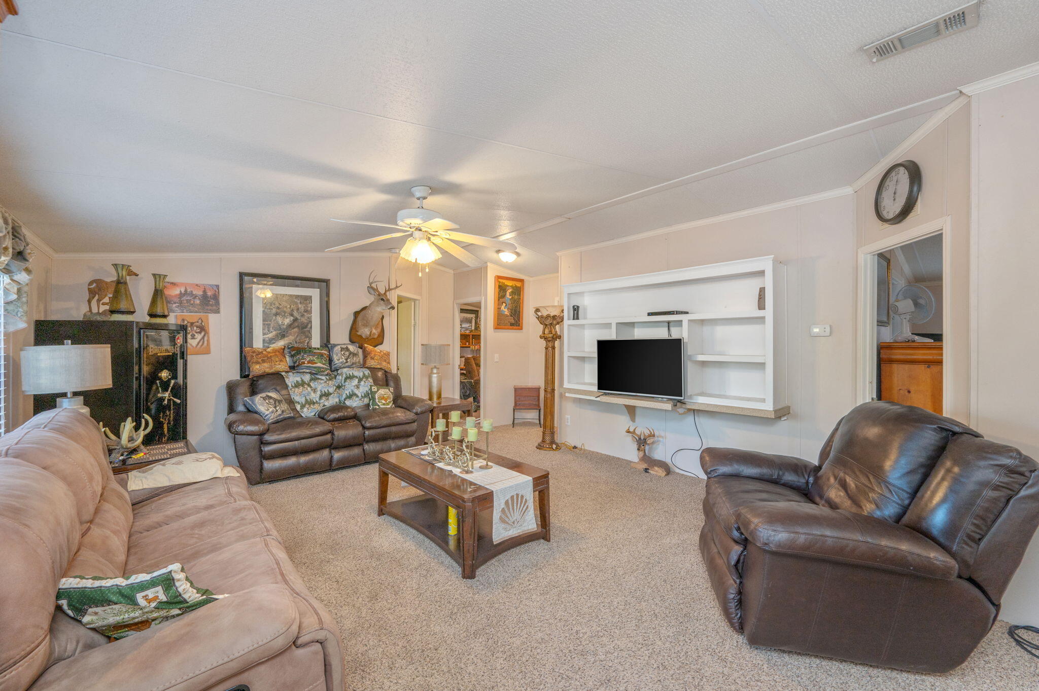 Welcome home to this well-kept 3-bedroom, 2-bath manufactured home nestled on a peaceful half-acre lot. Enjoy quiet mornings on the covered front porch and relaxing evenings on the large deck--perfect for soaking in the outdoors or entertaining guests. Inside, you'll find a nice open layout with updated bathrooms and newer carpet in the living room and primary bedroom, creating a comfortable and move-in-ready feel. Additional features include an attached one-car garage and a yard building for extra storage or hobbies. This property offers the perfect blend of space, comfort, and tranquility don't miss your chance to make it your own! To top things off this home will come fully furnished making for an easy move in.
