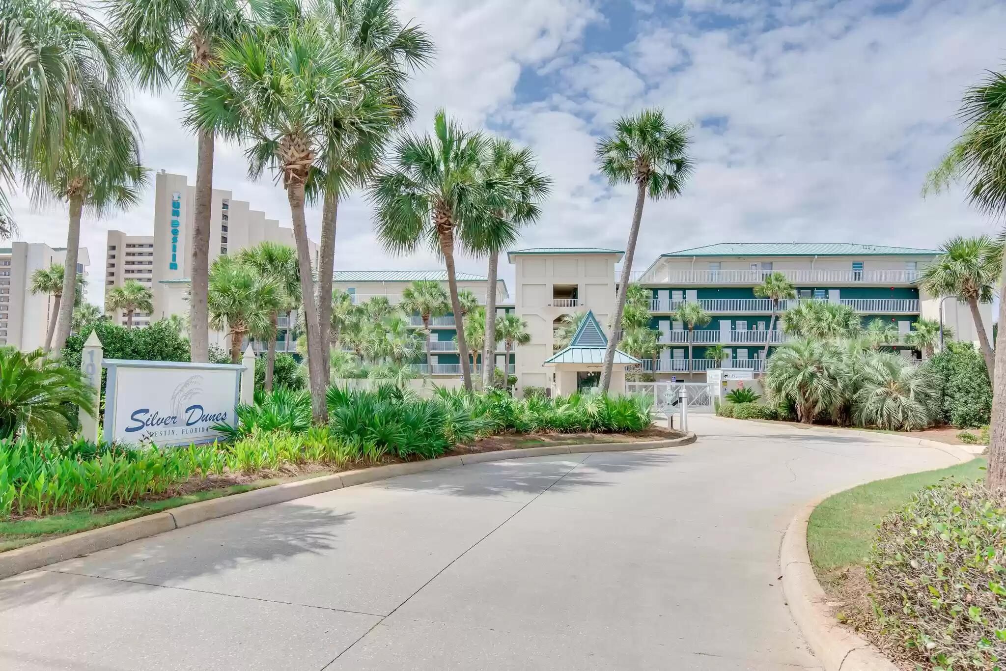 Silver Dunes is on the gulf side of 98 across from the old chick-fi-la and Pizza Hut. When you get to the gate, PRESS THE CALL BUTTON TO BE LET IN