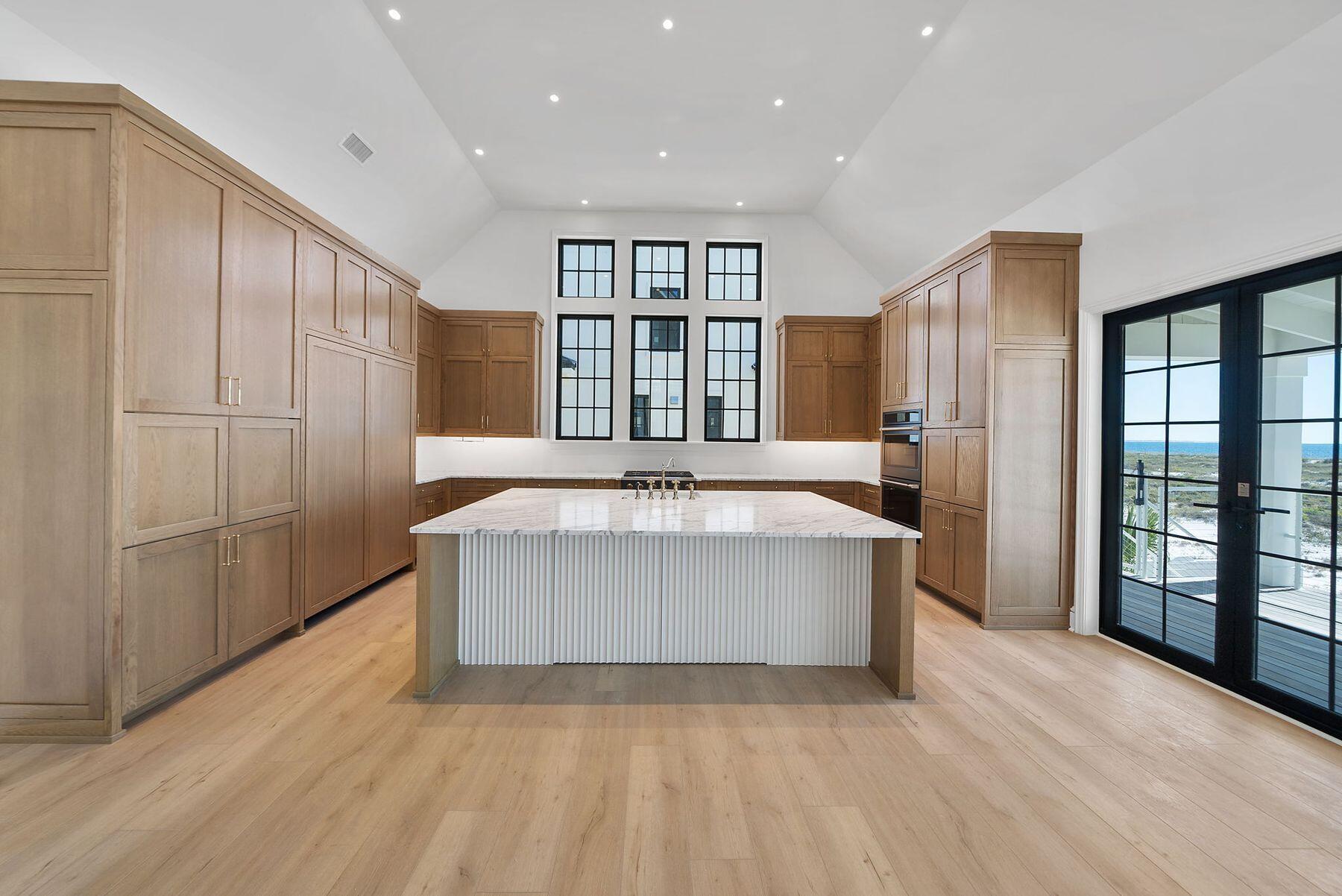 Nestled in the exclusive Sugar Sand community, this under-construction custom-built home epitomizes coastal luxury with high-end finishes, breathtaking Gulf-front views, and private beach access. Designed to seamlessly blend elegance with a relaxed beach lifestyle, this five-bedroom, five-bathroom residence offers a perfect retreat for private homeowners or investors seeking a premium rental property. Perched along the pristine shores of the Gulf of Mexico, this home features expansive unobstructed views from its back porch and pool terrace, creating an effortless indoor-outdoor living experience. The reverse infinity-edge pool enhances the connection between the home and its natural surroundings, while a private community boardwalk provides golf cart access to the unspoiled white sand beach. Every detail of this residence has been thoughtfully designed to offer the perfect balance of style and functionality. Inside, the open-concept floor plan maximizes natural light, with black-frame windows and three sets of double doors leading to a covered balcony on the upper level. The Catalina Black Label wood flooring adds warmth and sophistication, while a serene ocean-inspired color palette enhances the coastal ambiance. Stylish design elements, such as a shiplap stairwell with sconce lighting, and the elegant contrast of White Dove walls with Woodlawn Blue interior doors, elevate the home's aesthetic appeal. Upon entry, the paved parking pad leads into an elegant foyer, opening to a guest suite with a private bathroom, a TV/sitting area, and direct access to the pool terrace. Two additional guest suites on this level offer privacy, each with their own en-suite bathrooms. Upstairs, the main living, dining, and kitchen areas take center stage with soaring ceilings, high-end finishes, and panoramic Gulf views. Three sets of double doors open to the covered balcony, allowing for effortless indoor-outdoor entertaining. The primary suite and an additional guest suite occupy this level, featuring spa-inspired en-suite bathrooms with luxury brushed gold fixtures from the Momenti and Riu collections. Located midway between Mexico Beach and Tyndall Air Force Base, the private, gated Sugar Sand community offers a social clubhouse with a full kitchen, a community pool, a fitness center, and private golf cart access to the beach. With completion expected in October 2025, this stunning Gulf-front estate is a rare opportunity to own an exclusive coastal retreat, offering strong rental potential for investors or the ultimate luxury beach lifestyle for discerning homeowners. This home is being offered unfurnished at the current list price. However, it can be sold fully furnished and turnkey for an additional cost. Please inquire for details on pricing and inclusions.