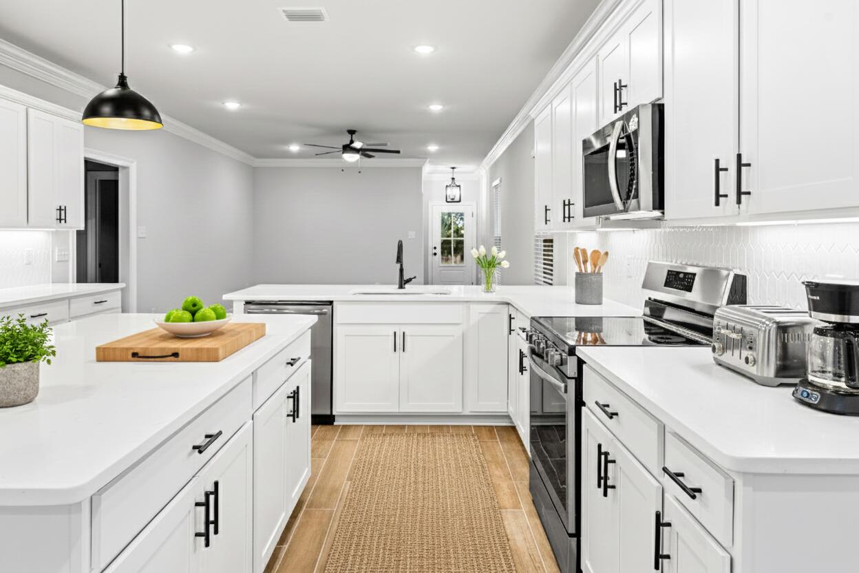 Awesome builder rate! Restrictions apply.The EVERGLADES II J in Crescent Mills at Hammock Bay community offers a 4BR, 2BA, open design. Upgrades added (list attached). Features: double vanity, custom tiled shower with frameless door, and walk-in closet in master bath, kitchen island, pantry, covered rear patio, custom kitchen backsplash, crown molding, LED lighting throughout, smart connect WIFI thermostat, smoke and carbon monoxide detectors, landscaping package, architectural 30-year shingles, flood lights, and more! Energy Efficient Features: water heater, electric kitchen appliance package, vinyl low E windows, and more! Energy Star Partner.