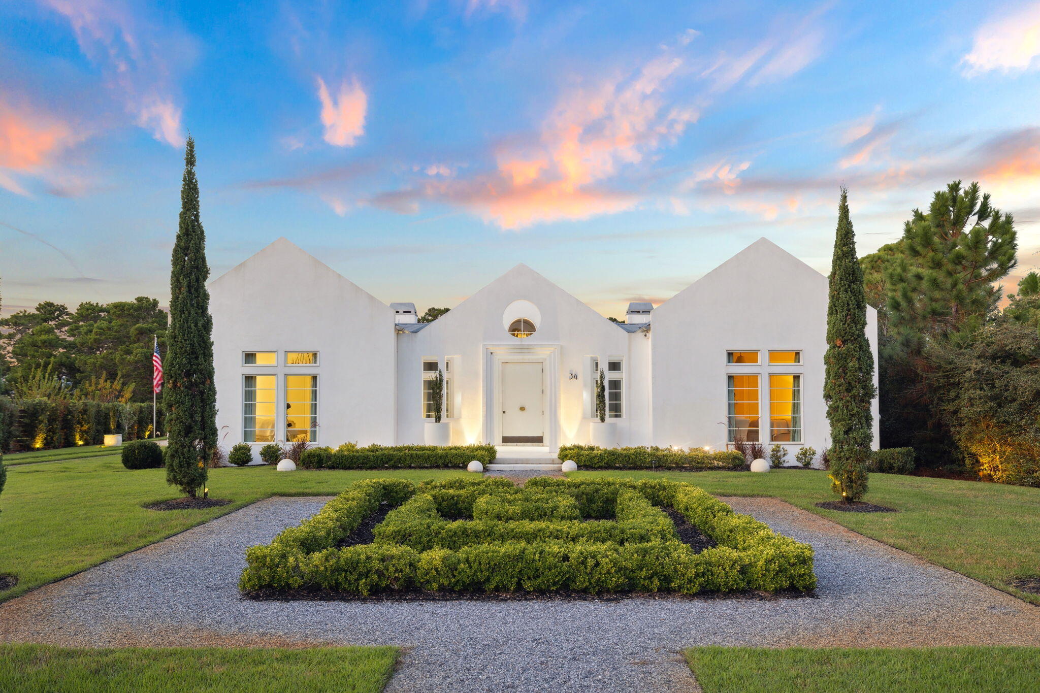 Welcome to 34 W Blue Coral Drive, a stunning blend of modern luxury and European charm, nestled in the serene beauty of Florida's Gulf Coast. Located in Blue Mountain Beach and situated off Scenic Hwy 30A, this home offers the perfect balance of resort-style living and easy access to world-class beaches, dining, shopping, and outdoor recreation.This exquisitely designed, single-level residence boasts 3,850 square feet of sophisticated living space. From the moment you step through the grand front door, you'll be welcomed by an inviting ambiance and seamless open-concept design that is perfect for both entertaining and everyday living. The central living area features a cozy fireplace framed by elegant ogee-style archways, while tumbled limestone flooring with a Schluter BEKOTEC floor system ensures year-round comfort.