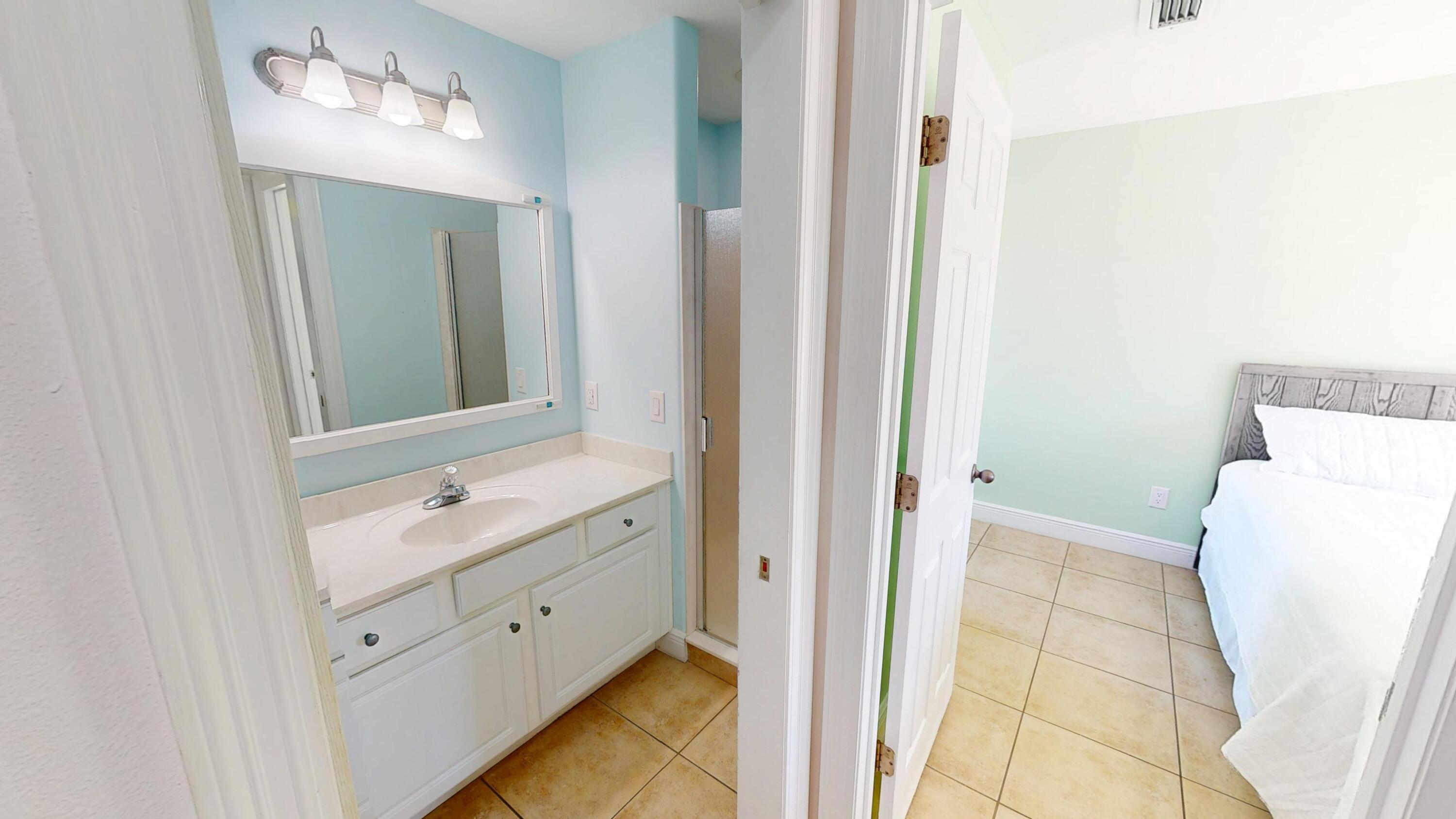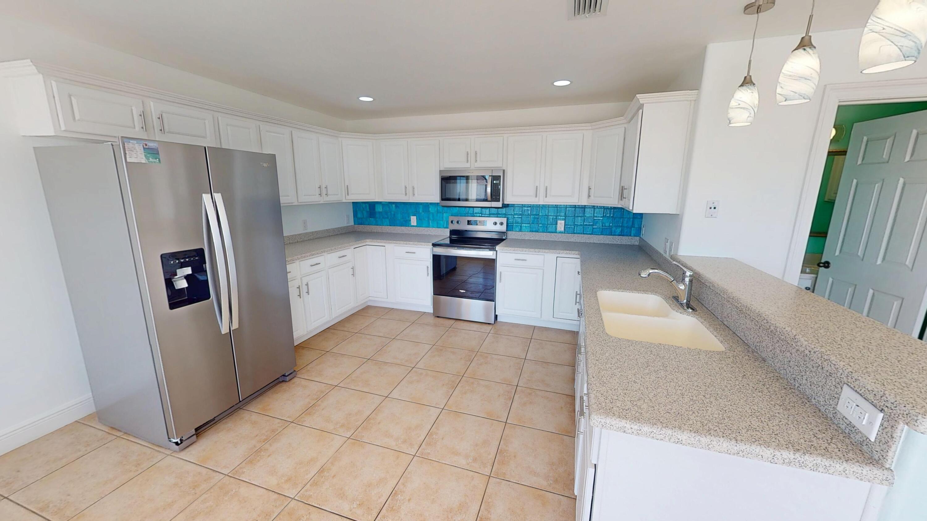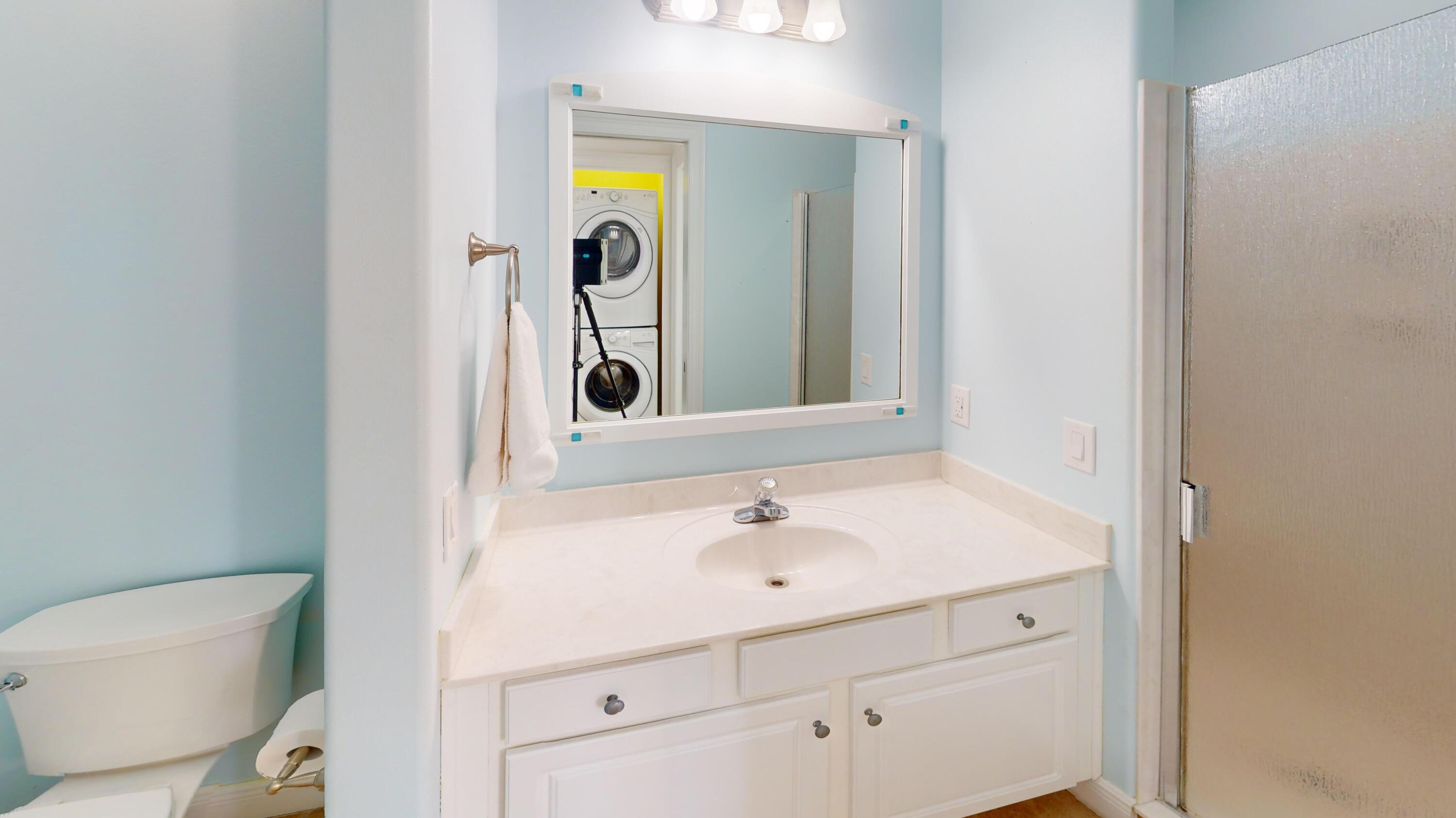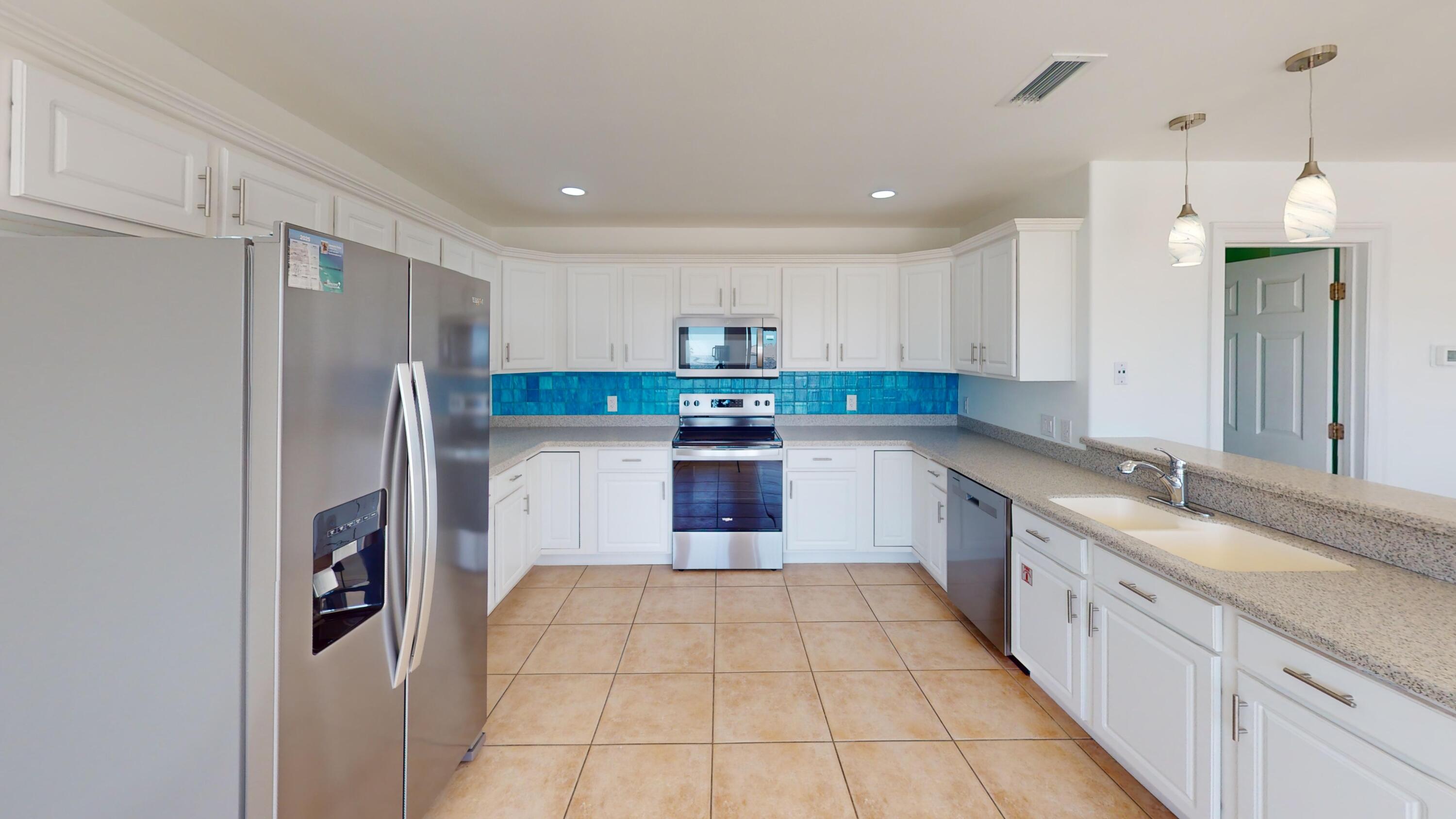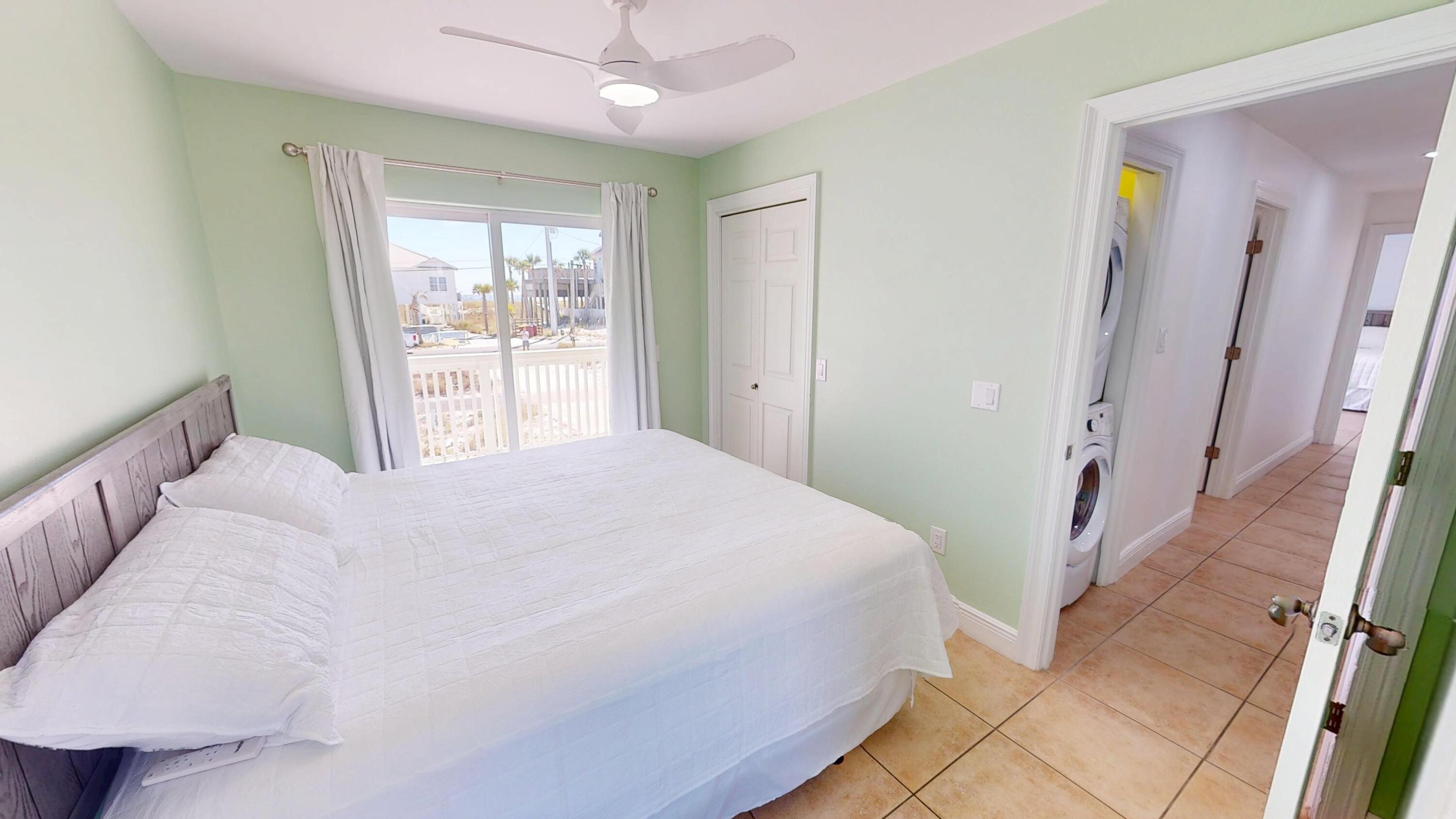On the main floor, you will discover 3 bedrooms and 2 full bathrooms with cultured marble showers. All bedrooms feature a door leading to the Gulf-facing deck. The primary suite includes a walk-in closet and a private bath with a separate shower.