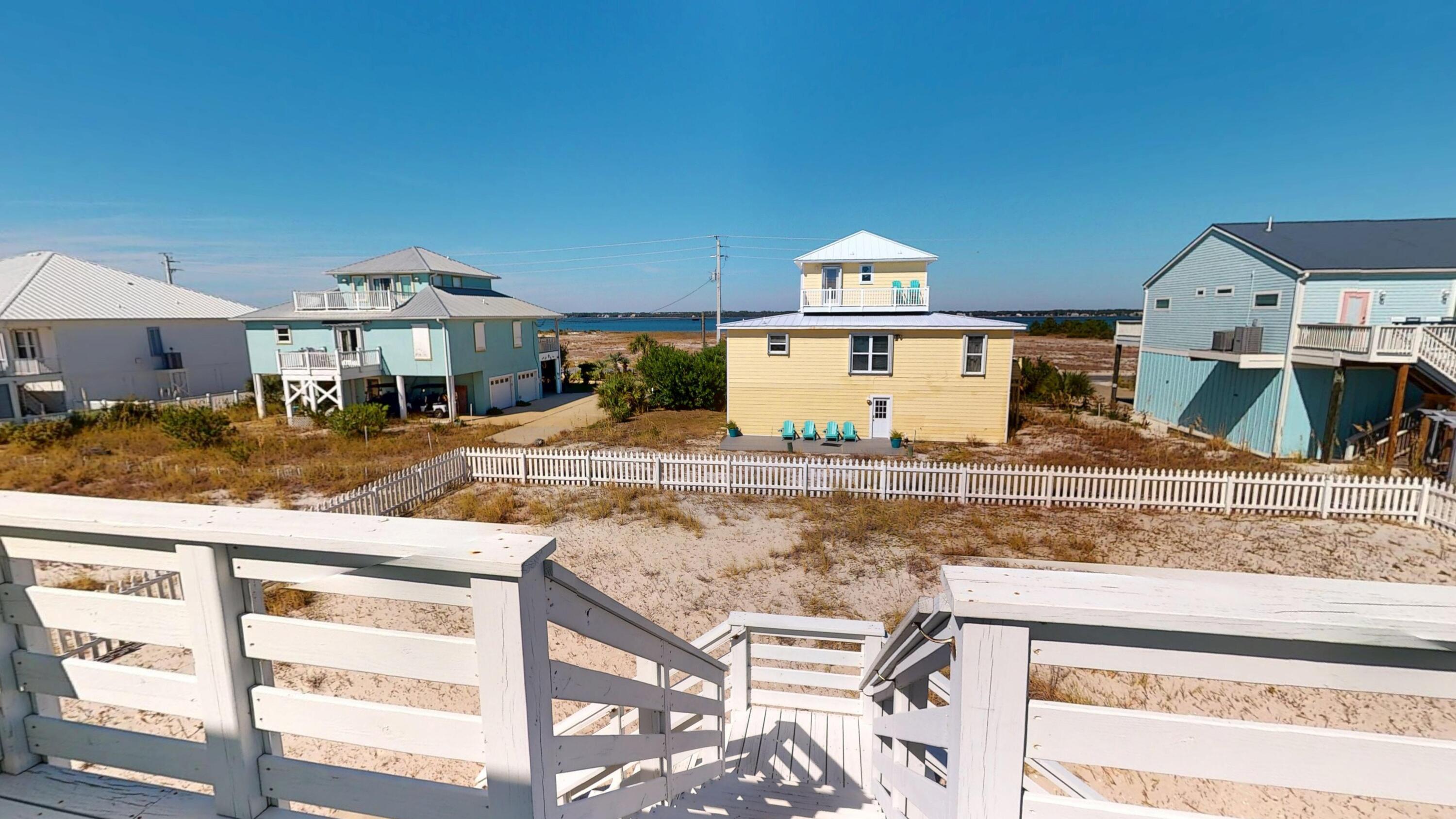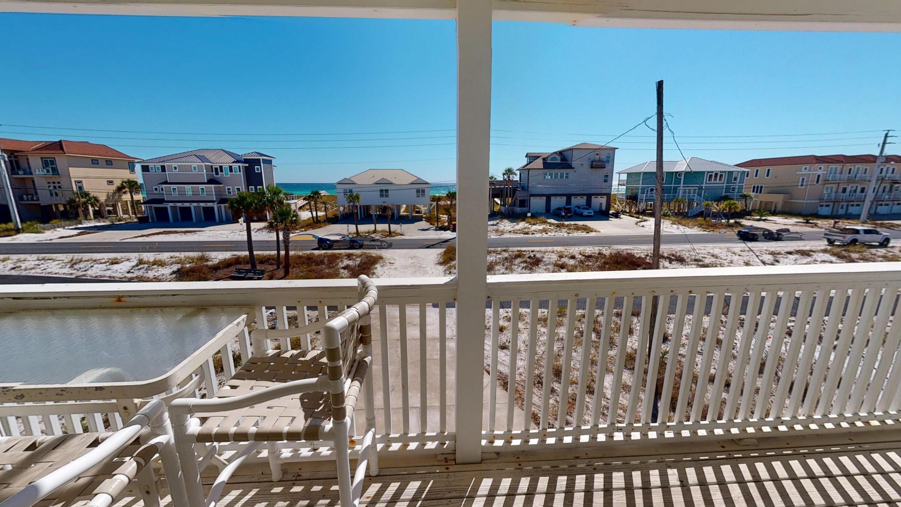 Updated and reconfigured Navarre Beach home with an assumable 2.375% loan subject to lender approval. This two story coastal retreat offers full Gulf and Sound views, direct Beach access and no HOA. The assumable low-rate financing provides a rare opportunity for long term savings compared to today's market loans. Thoughtfully redesigned with three bedrooms, two full baths and one half bath,this home blends comfort and coastal style. The open second floor living area captures panoramic water views and opens to full length covered decks-ideal for sunrise coffee and sunset skies. The kitchen features Corian counters, abundant cabinetry, new stainless steel appliances and a breakfast bar open to the dining area. The primary suite includes a walk-in closet and private bath with shower. Fresh steel appliances and a breakfast bar. From the dining area you'll find a spacious living room surrounded by windows and two sliding glass doors that lead to a covered Gulf-side balcony. The perfect spot to enjoy your morning coffee or evening sunsets.