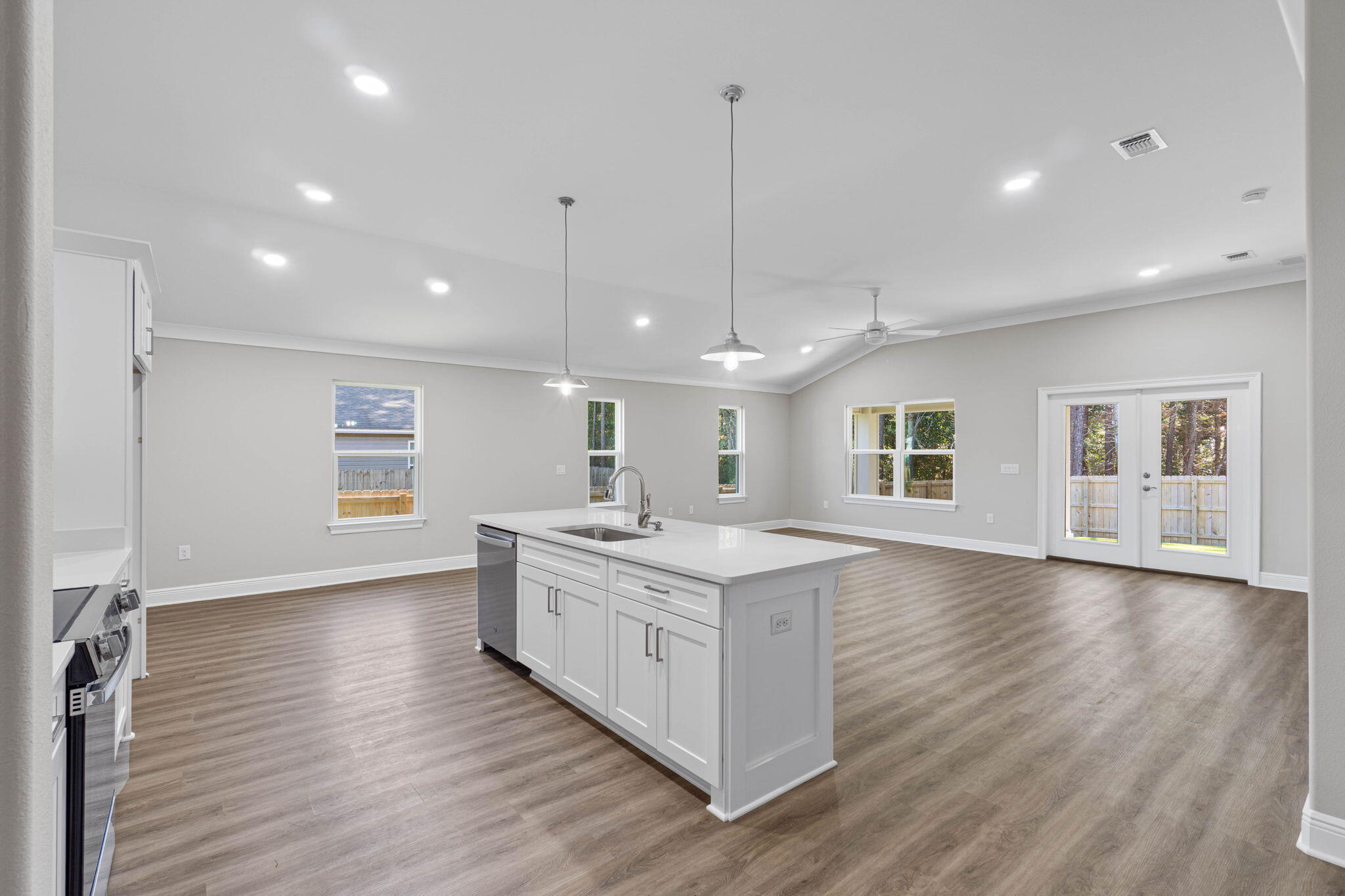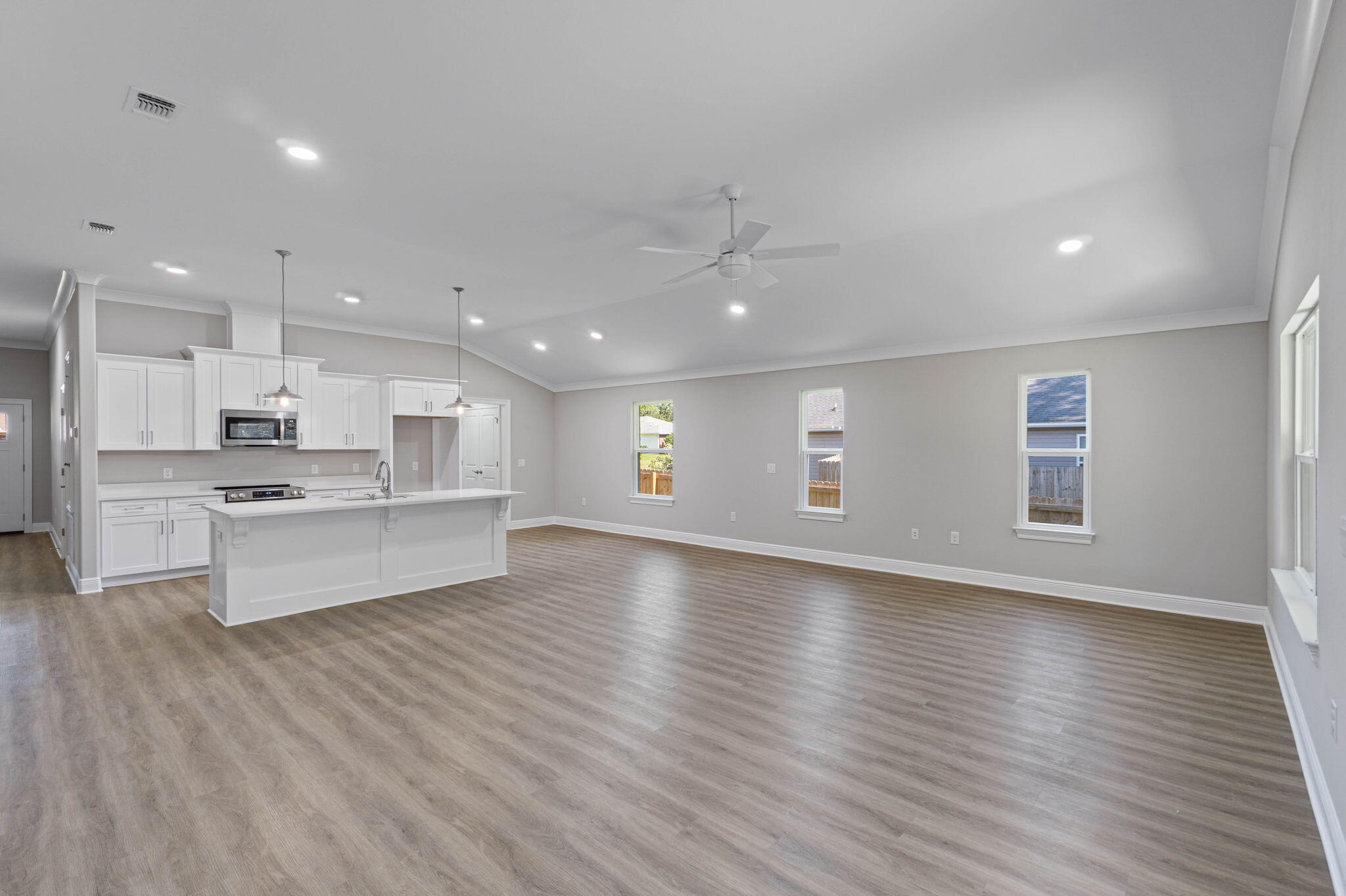 NEW CRAFTSMAN Custom Built Home ~ this luxurious 3 bed/2 bath floor plan is ready for its new owners . Fall move in offers builder incentives too. ~Great Central Location with easy access to Navarre Beach, Navarre Waterfront Park and Hwy 98 to Hurlburt Field AFB.This Stunning Robbins Builders Home offers trend setting features~Greeted by a walk in foyer sweeping through to your open floor plan ~Large kitchen enjoying custom cabinets with crown molding, beautiful quartz counter tops~under mount sink~S/S appliances, large double door pantry & closed off utility room ~sleek top center Island with pendant lights ~open flow to the family room with patio doors out to the large covered porch .Wood look LVP throughout with tiled bathrooms~ Large master with trey ceiling /ceiling fan and walk-in closet ~master bath offers an oversized TILED shower ~ double vanity with picture frame mirrors. Additional Bedrooms are a great size with double closets and ceiling fans~Home has a welcoming covered front porch and large covered back porch to sit out and enjoy those wonderful Florida evenings ~great to cook out and entertain. Grassed yard with irrigation system for easy care in the summer months. TAEXX in wall pest control system~ Hurricane protection for windows and dimensional shingle roof for lower insurance premium. Upgrades throughout include recessed lighting, bedroom fans, crown molding, deluxe lighting package,50 Gallon water heater, garage door remotes, attic drop down stairs~ to name a few.....Call today for further information.