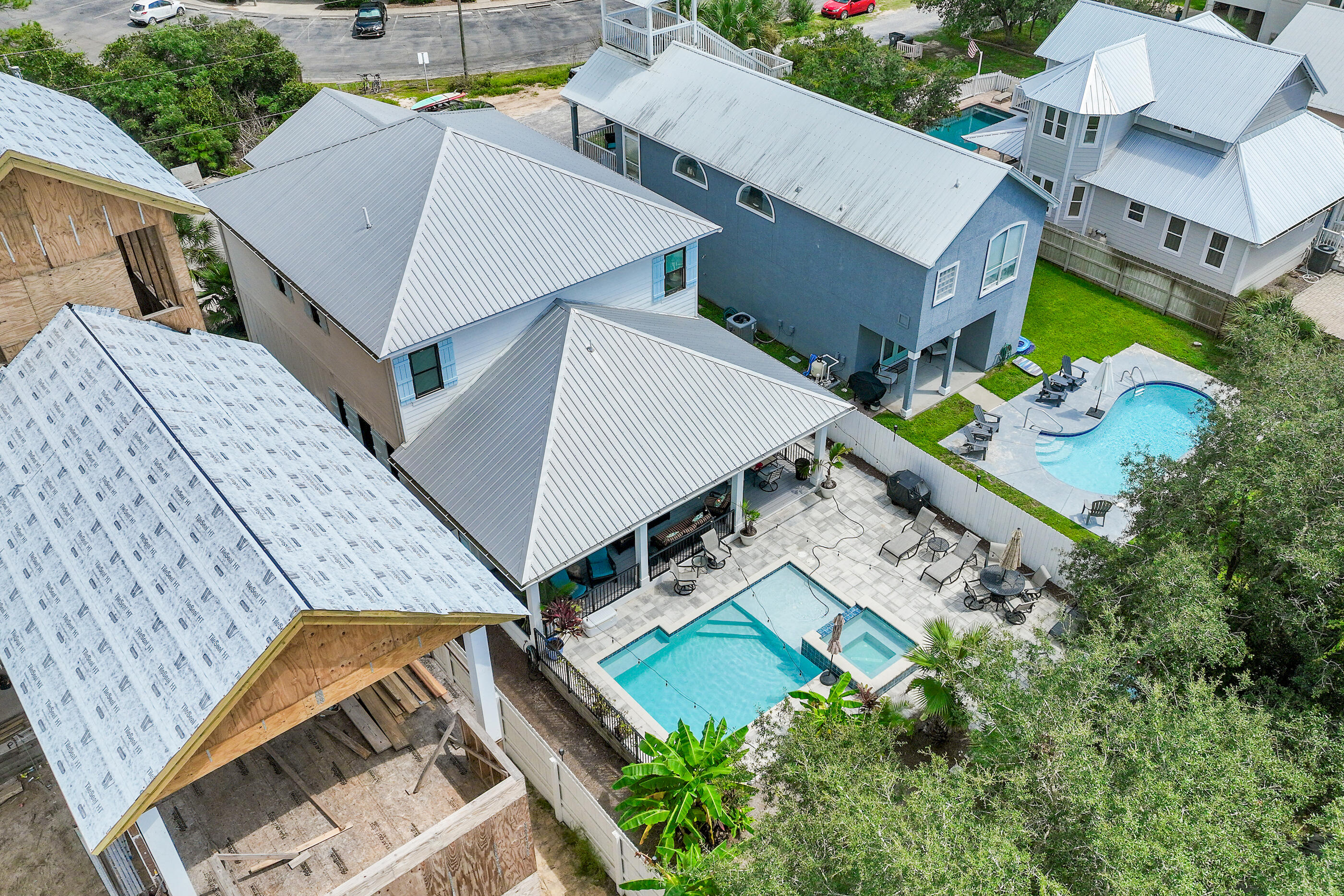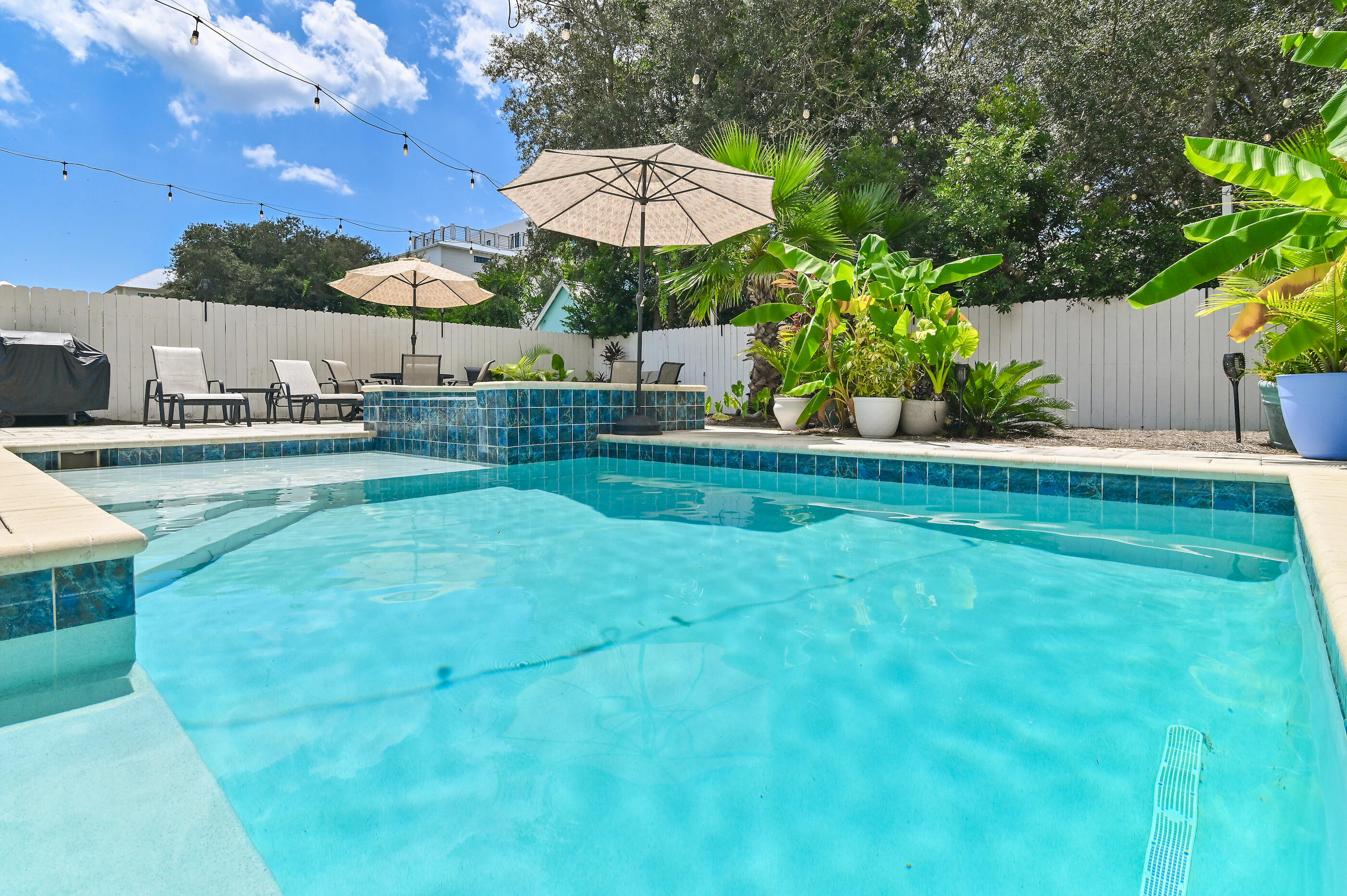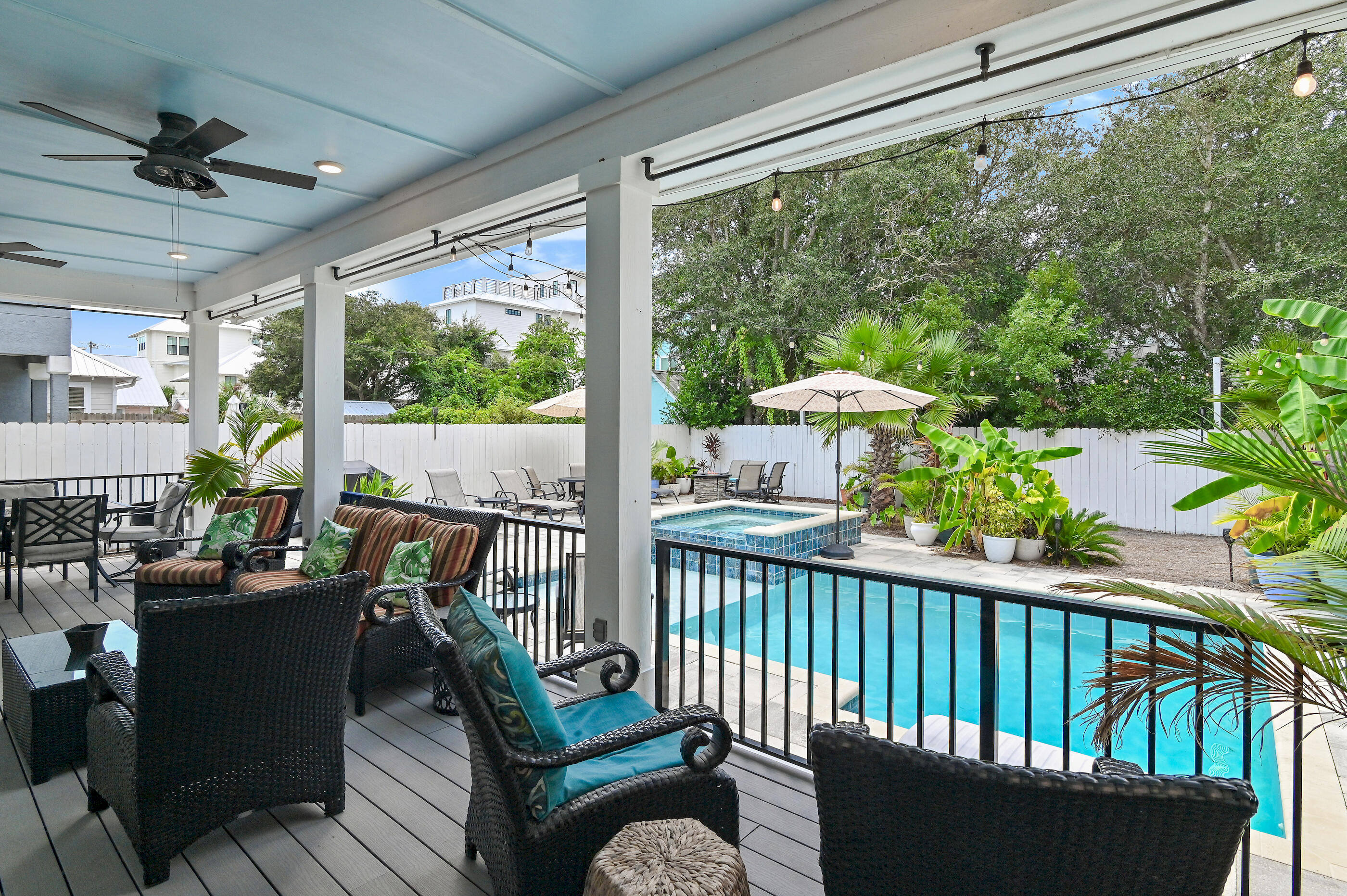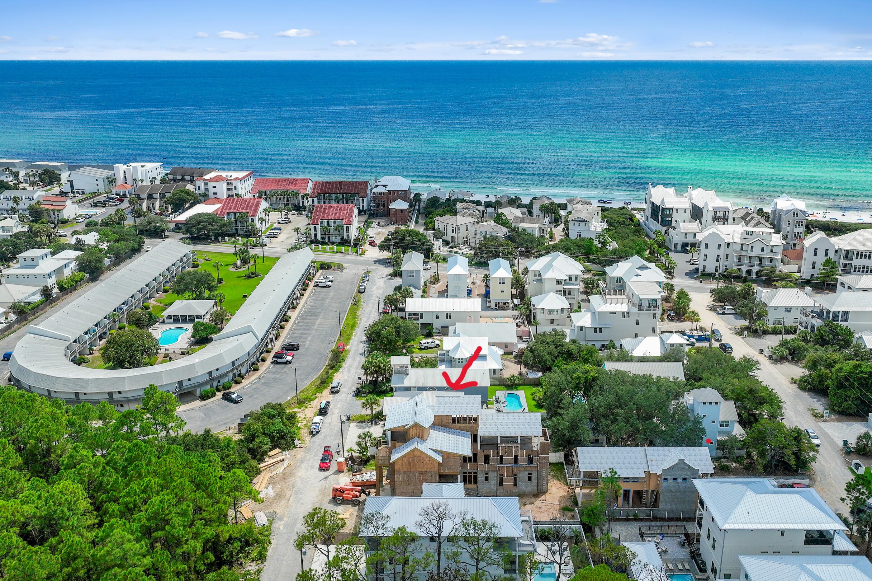 Welcome to Villa Dolce, a 3,074 sq ft luxury retreat in Seagrove, steps from Pelayo Public Beach Access. This custom-built 5-bed, 5.5-bath seamlessly blends modern elegance with coastal living. The 1st flr features an open-concept layout, including a chef's kitchen w/ top-of-the-line appl, quartz & granite c-tops, & gas range, spacious primary suite w/ walk-in closet, garden tub. The outdoor oasis offers a covered back porch & entertaining area, heated pool, spa, outdoor TV, firepit, grill, dining area, & outdoor shower, surrounded by lush landscaping & sprinkler irrigation system. Upstairs, 4 guest beds w/ensuite baths & 2nd living area provides space for family & guests. A large laundry room w/sink, 4x8 storage unit, hurricane-impact doors & windows. Close to restaurants & shopping
