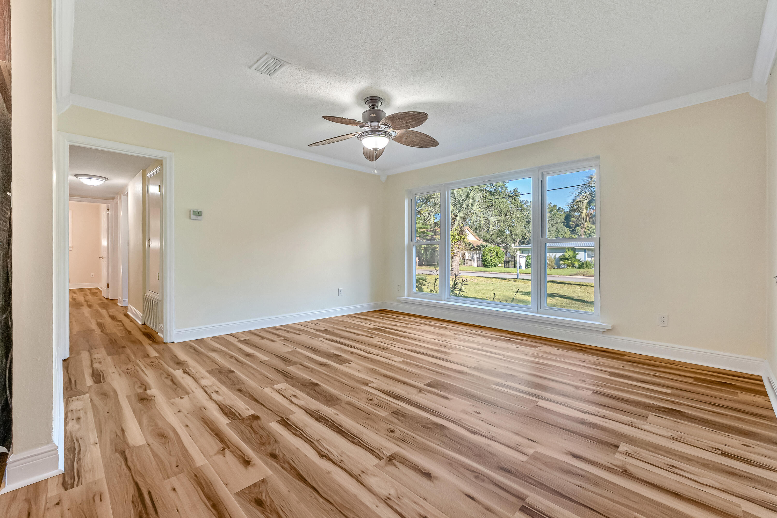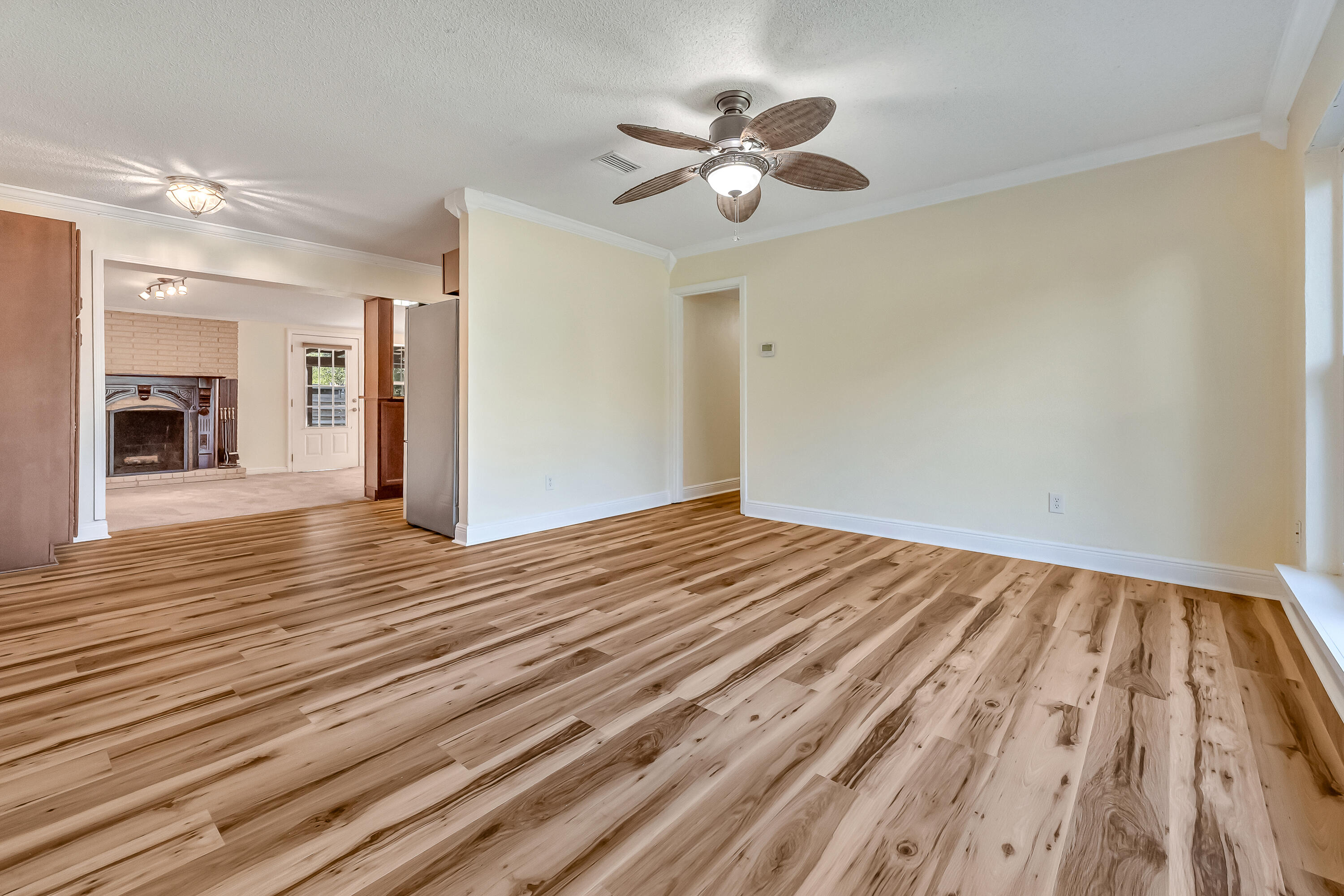 Comfortable and inviting 4-bedroom, 2-bathroom home offering 1,865 sqft, located just half a mile from Ferry Park and near military bases, beaches, shopping, and restaurants. Inside, you'll find new LVP flooring in the main living areas and a cozy fireplace with a mahogany surround that adds warmth and charm. The kitchen opens to the dining area and features granite countertops, some new stainless steel appliances, and plenty of cabinet space--ideal for everyday living or entertaining. The primary bedroom includes two closets for extra storage. Step outside to enjoy a large fenced backyard with a covered patio and storage shed. Roof replaced in 2025. Schedule your showing today and come see what makes this home such a great opportunity!
