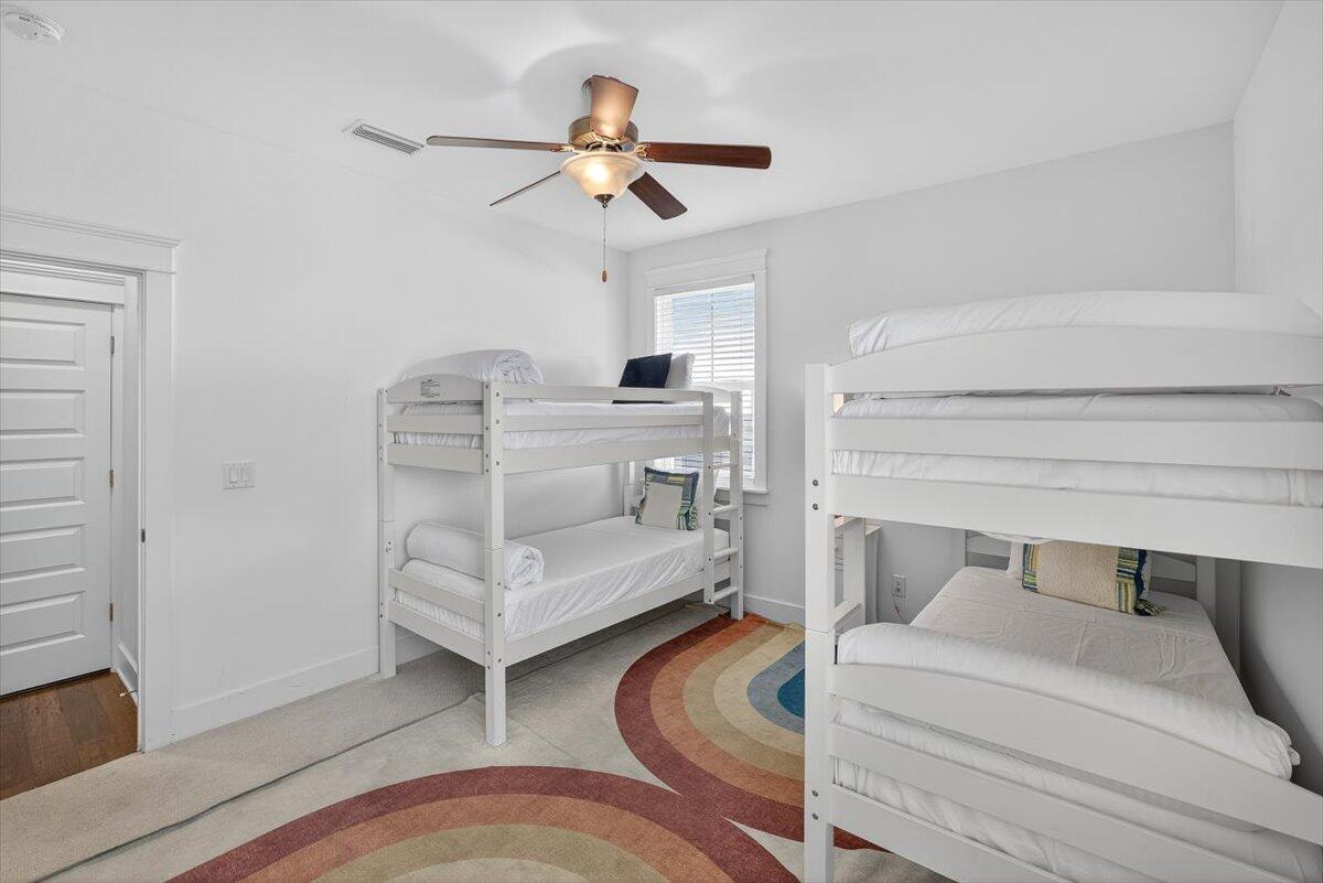 Nestled in the Highlands Park community of Blue Mountain Beach, this beautifully crafted bungalow offers 3 spacious bedrooms (with additional bonus room) and 3 full bathrooms, making it the perfect coastal retreat.The master suite features a king bed and en-suite bath for ultimate relaxation. The second bedroom boasts a comfortable queen bed, while the bunk room is designed to sleep 4, making it ideal for families or guests. Additionally, the bonus room on the first floor offers extra sleeping space with a daybed and pull-out trundle, comfortably accommodating 2 more guests.The home is just steps away from the pool house, which offers a hot tub, pool, covered grill area, and fire pit. Close to local favorite eateries like Shunk Gulley, Sunrise Coffee, Pecan Jack's Ice Cream.