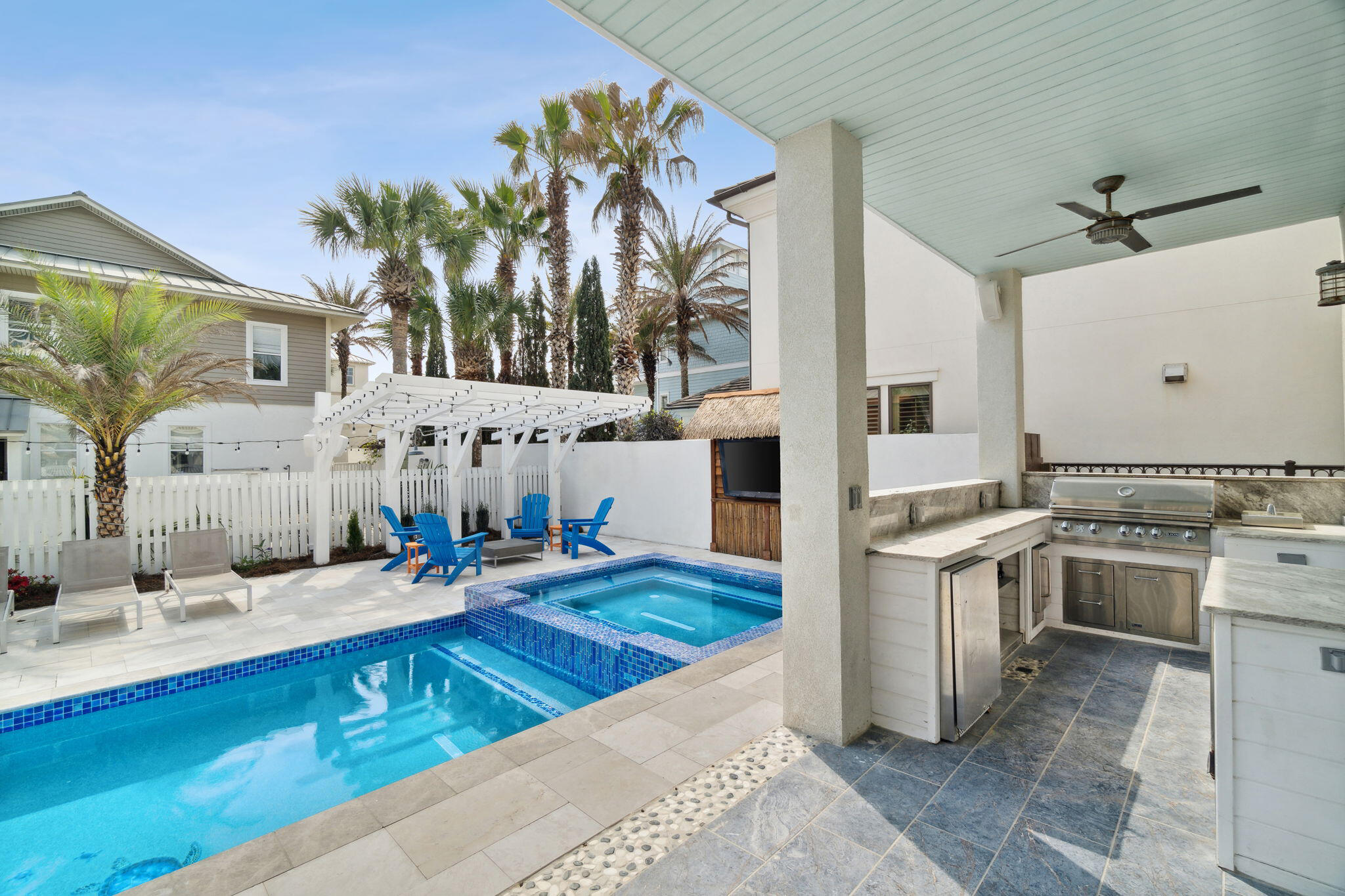 Welcome to Vast Cay Castle, a grand coastal retreat where turquoise waters, swaying palms, and gulf breezes set the scene for the ultimate tropical escape. Perfectly positioned near the beach in one of Destin's most coveted areas, this stunning estate combines laid-back luxury with resort-style amenities, including a private pool with spa, summer kitchen, and expansive balconies on the second and third floors offering serene views of the pool and surrounding beachside neighborhood. Step inside to discover spacious, light-filled living areas, a fully equipped chef's kitchen, indoor and outdoor dining spaces, and beautifully designed bedrooms spread across all three levels. The first floor features a King suite and oversized bunk room, the second level boasts two additional King suites, a twin bunk room, a media/game room with wet bar, and a laundry room, while the third level is crowned with the Main King suite, two more King suites, another twin bunk room, additional baths, and a second laundry area.