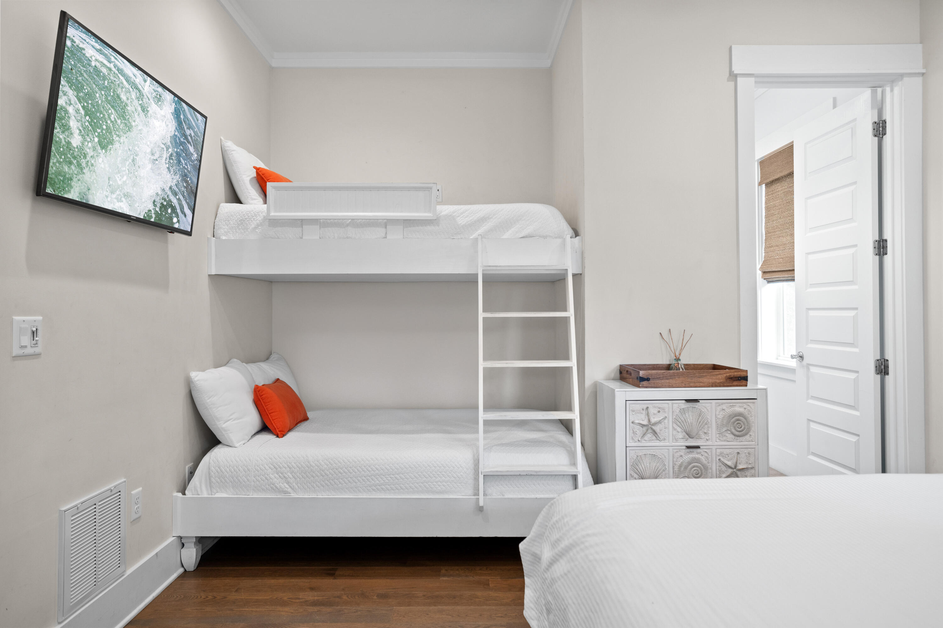 Located just 2 blocks from Wall Street Public Beach Access -- a quiet, foot- and bike-only entryway to one of 30A's least crowded beaches. This 4BR/4BA home features 3 king bedrooms and a bunk room with a queen + twin-over-full. Enjoy a heated community pool, private top-floor grilling patio with peek-a-boo Gulf views, and stunning sunsets. Walking distance to 30Avenue and Rosemary Beach shops and dining. Excellent rental and investment opportunity!