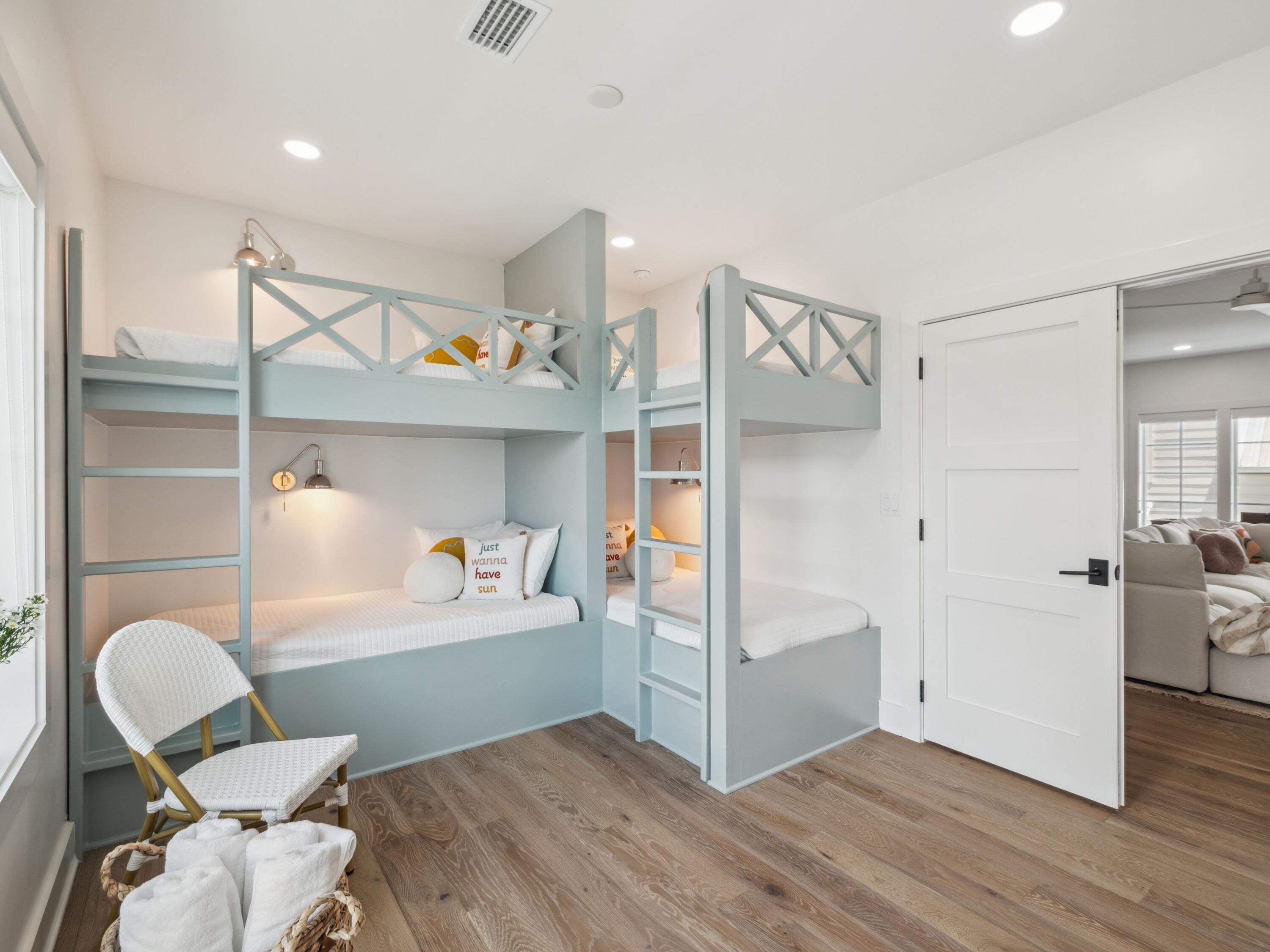 An extraordinary opportunity to own one of the most unique properties on 30A--where lakefront tranquility meets Gulf-side convenience. Located just a one-minute walk to the beach and steps from the 30A bike trail, this stunning home sits on 74 feet of rare Coastal Dune Lake frontage, offering an unbeatable blend of location, privacy, and lifestyle. With over 5,800 square feet of living space, this beautifully updated residence features 6 spacious bedrooms, 7 full bathrooms, and two large bunk rooms, comfortably sleeping up to 30 guests. The interior is bright and welcoming, filled with natural light and designed for relaxed coastal living. Every inch of the home has been thoughtfully curated for comfort, convenience, and coastal charm.
