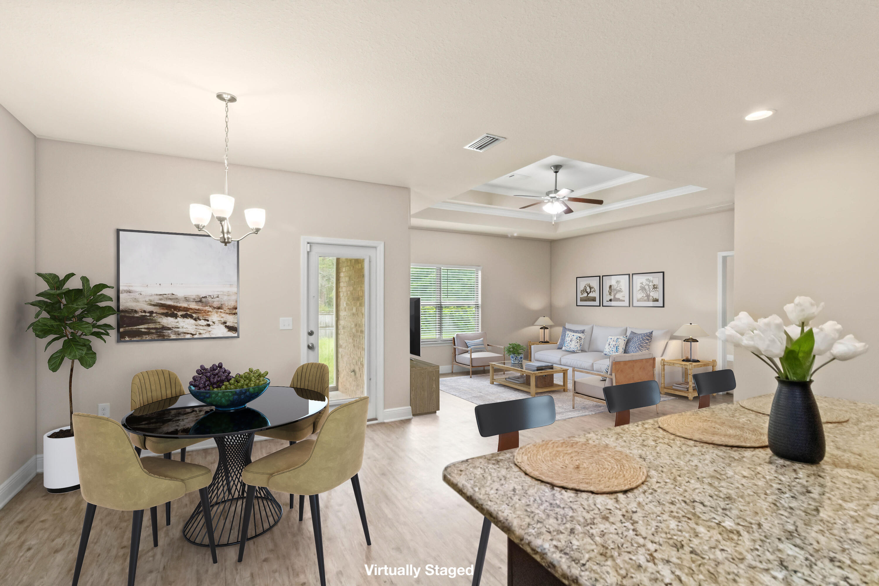 VA Assumable 2.75% (VA buyer with their own entitlement only). No City taxes!This beautifully designed 4-bedroom, 2-bathroom contemporary home offers the perfect blend of style, comfort, and functionality. From the moment you enter, you'll be greeted by a spacious foyer that flows seamlessly into the open-concept living area, featuring a trey ceiling and large windows that flood the space with natural light.The kitchen is a chef's delight, complete with granite countertops, recessed lighting, a pantry, and a breakfast bar--ideal for casual meals or hosting guests. Just off the living area, the private master suite serves as a true retreat, featuring a spacious en-suite bathroom designed for relaxation and ease. Three additional bedrooms provide flexibility for family, guests, or a home office setup. An attached garage offers secure parking and extra storage, while the covered back porch and fenced backyard create a serene outdoor space perfect for entertaining, pets, or play.