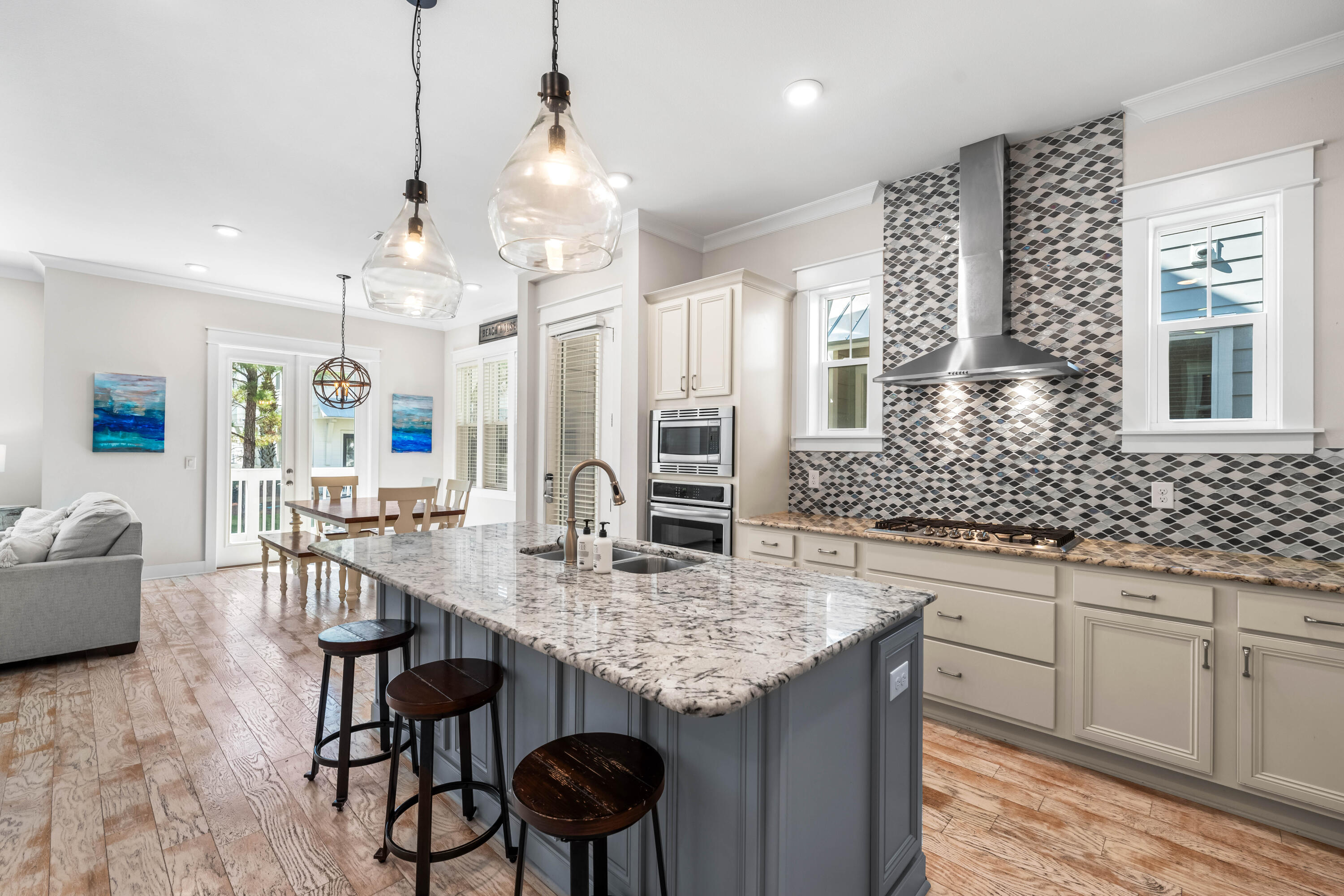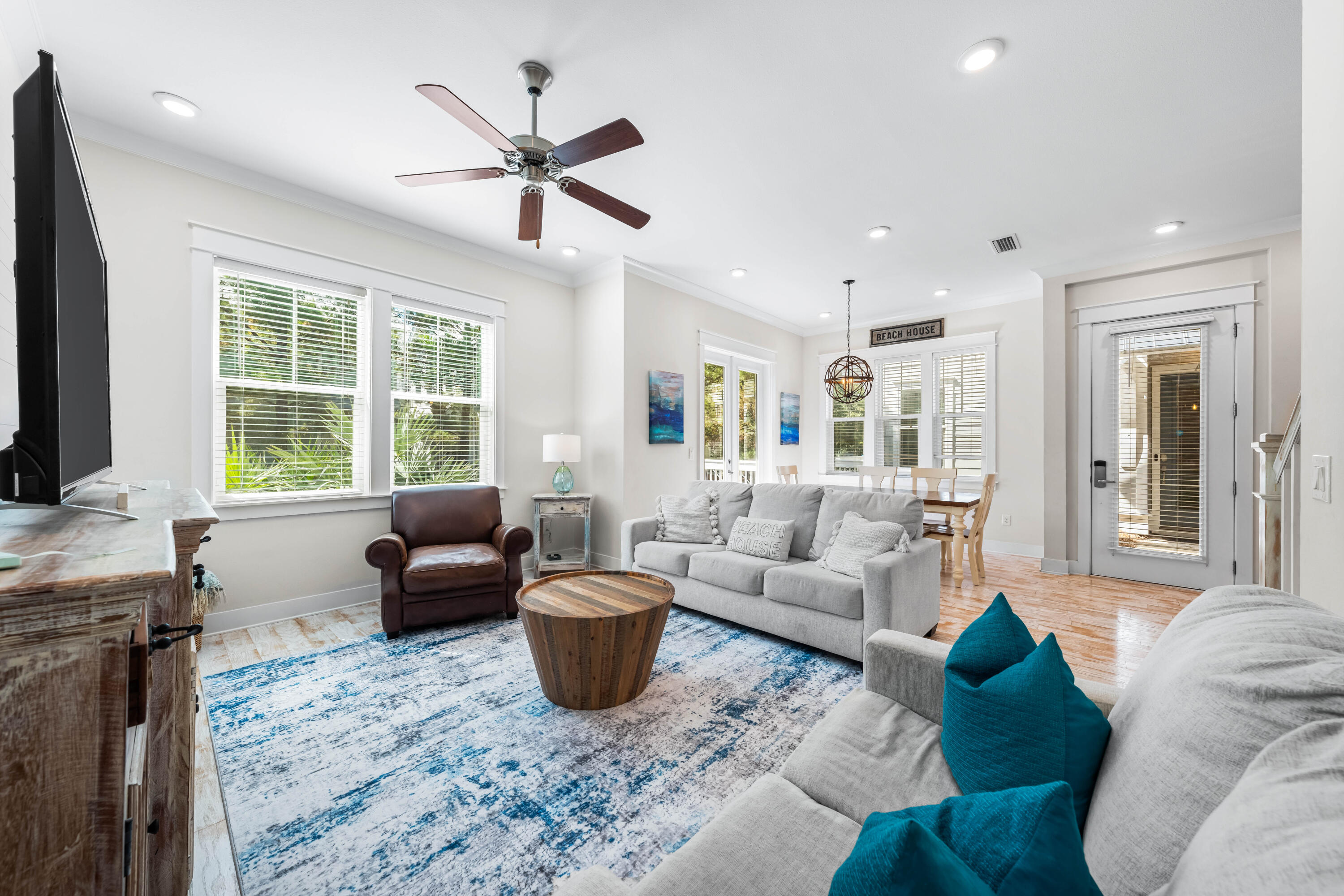 This gorgeous and charming (3) bedroom, (2.5) bath, (2)-car garage townhome located in Prominence North on 30A is a turn-key investment opportunity with low HOA fees and strong rental numbers. A prime location backing up to an expanded green space between units, provides extra privacy and easy access to the resort community pools, The Big Chill, Watersound Beach Club and Deer Lake State Park. Offered fully furnished with luxurious furnishings in coastal hues provides a relaxing atmosphere to relax and enjoy the 30A lifestyle - the perfect opportunity for those looking for immediate short-term vacation rental income, a second home or primary residence! Claim your paradise in Prominence today! The Cozumel (B Unit) floor plan includes the most open and spacious living area of all Prominence North floor plans, providing extra space for enjoying the coastal lifestyle with family and friends. The kitchen is a chef's dream with custom cabinetry, granite countertops, mosaic tile backsplash, professional stainless-steel appliances, gas cooktop, and a large island/bar space with custom woodwork great for entertainment. This unit showcases hardwood flooring in the main areas, 10ft' ceilings, 8ft doors, hurricane impact windows & doors, professionally designed lighting, window treatments, exceptional woodwork, and a washer/dryer. Step onto the back patio to lounge, relax, and watch the many breathtaking sunrises and sunsets on 30A.