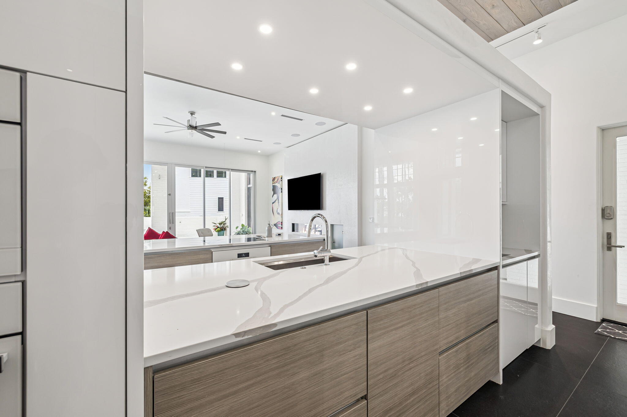 The detached carriage house includes a full kitchen and laundry, providing flexibility for guests or multi-generational living. A 50-foot private boat slip with lift is also included, placing open water access just steps from your front door.