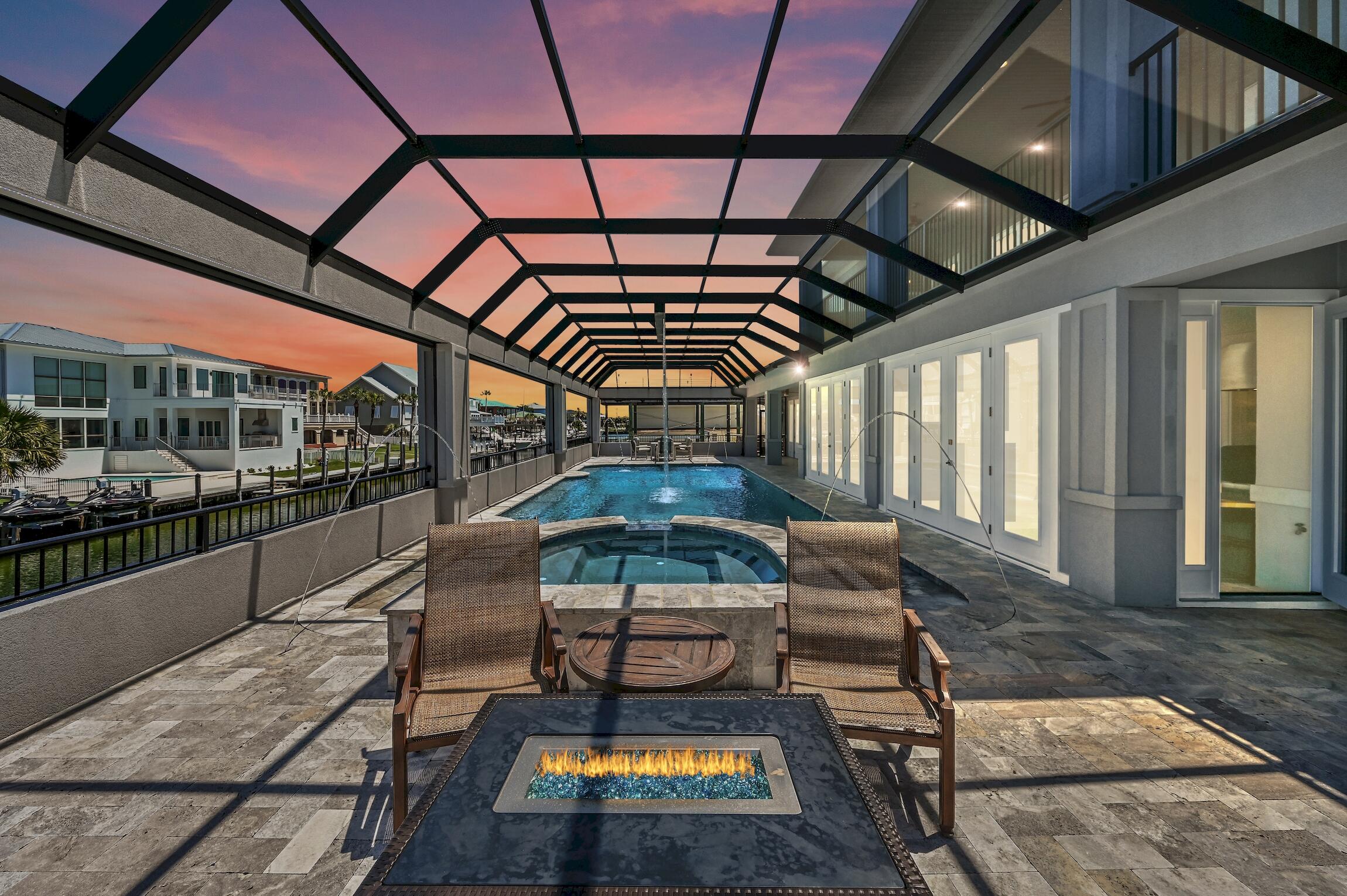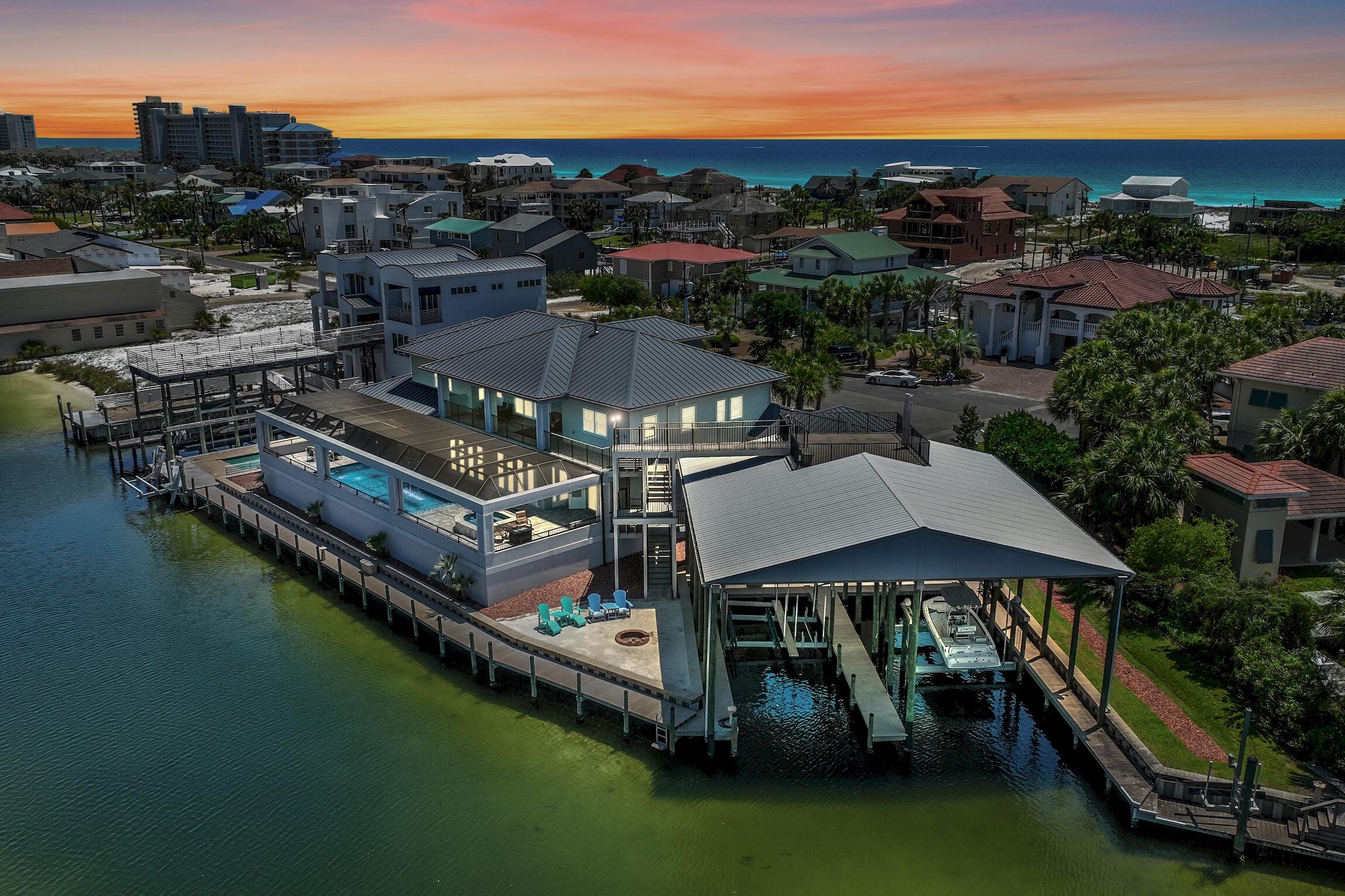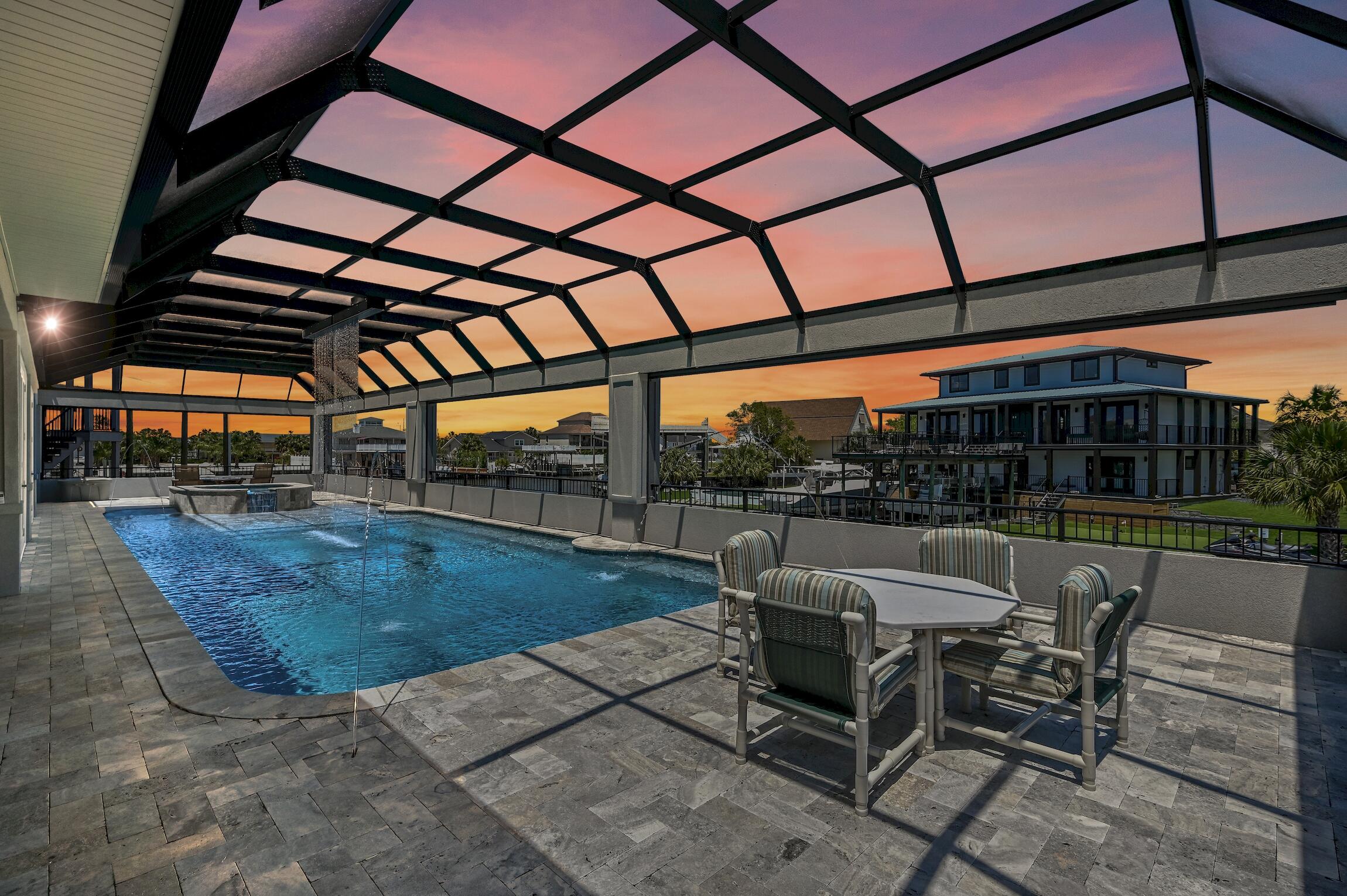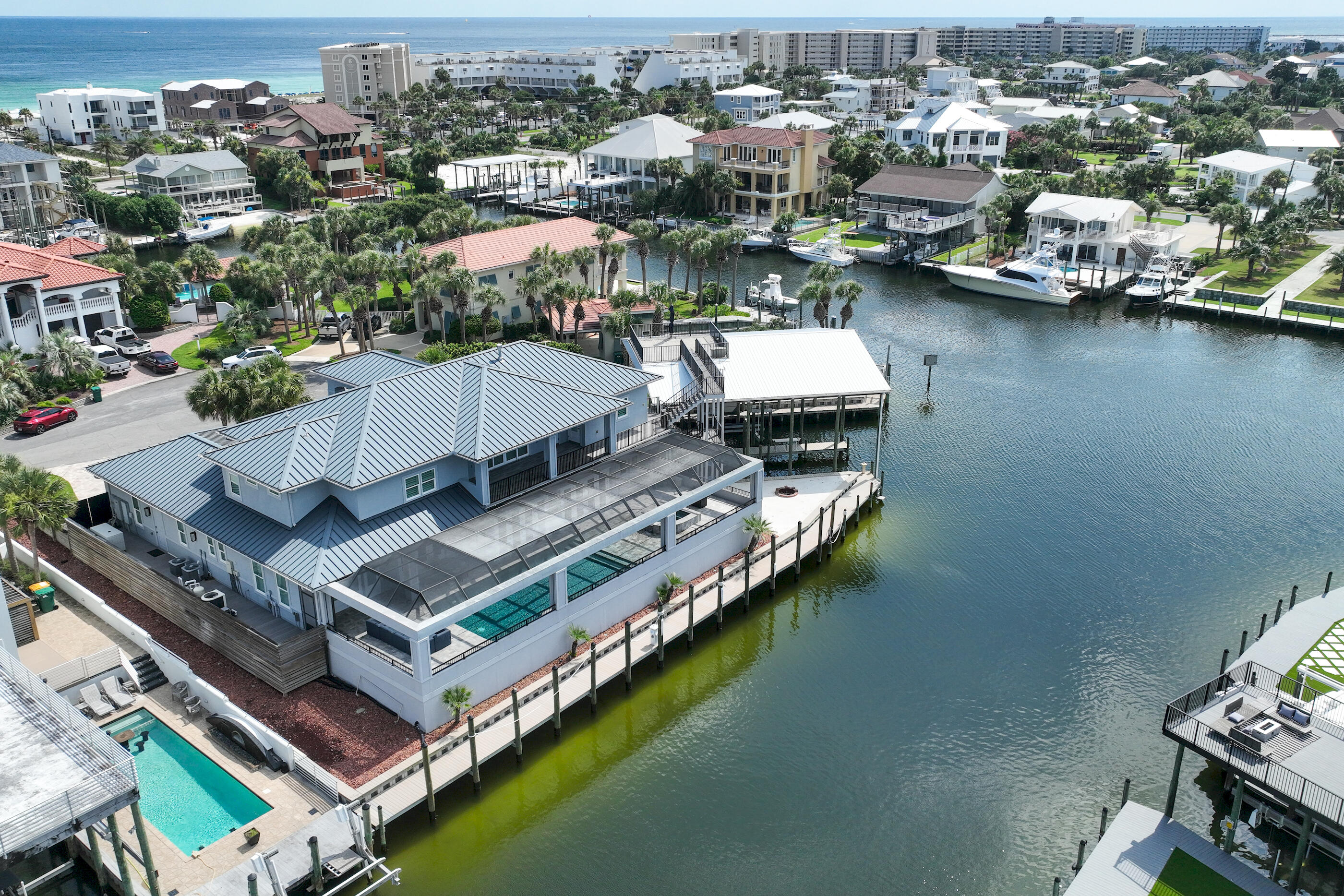 This canal-front home on Holiday Isle sits on a spacious corner lot and is a true boater's dream, featuring over 217 feet of waterfront--ample space for your fleet of vessels.The property offers two covered deep-water 40-foot slips, one equipped with a 25,000-pound boat lift. Additional features include three 30-amp power pedestals and a non-covered jet ski lift.The crown jewel of the estate is a 100-foot lay-to dock, current owner has been HOA-approved to accommodate a 90-foot sportfishing yacht with a 23'2'' beam. This dock includes two 100-amp single-phase power pedestals and ten newly installed 12-inch pilings, ensuring secure mooring.