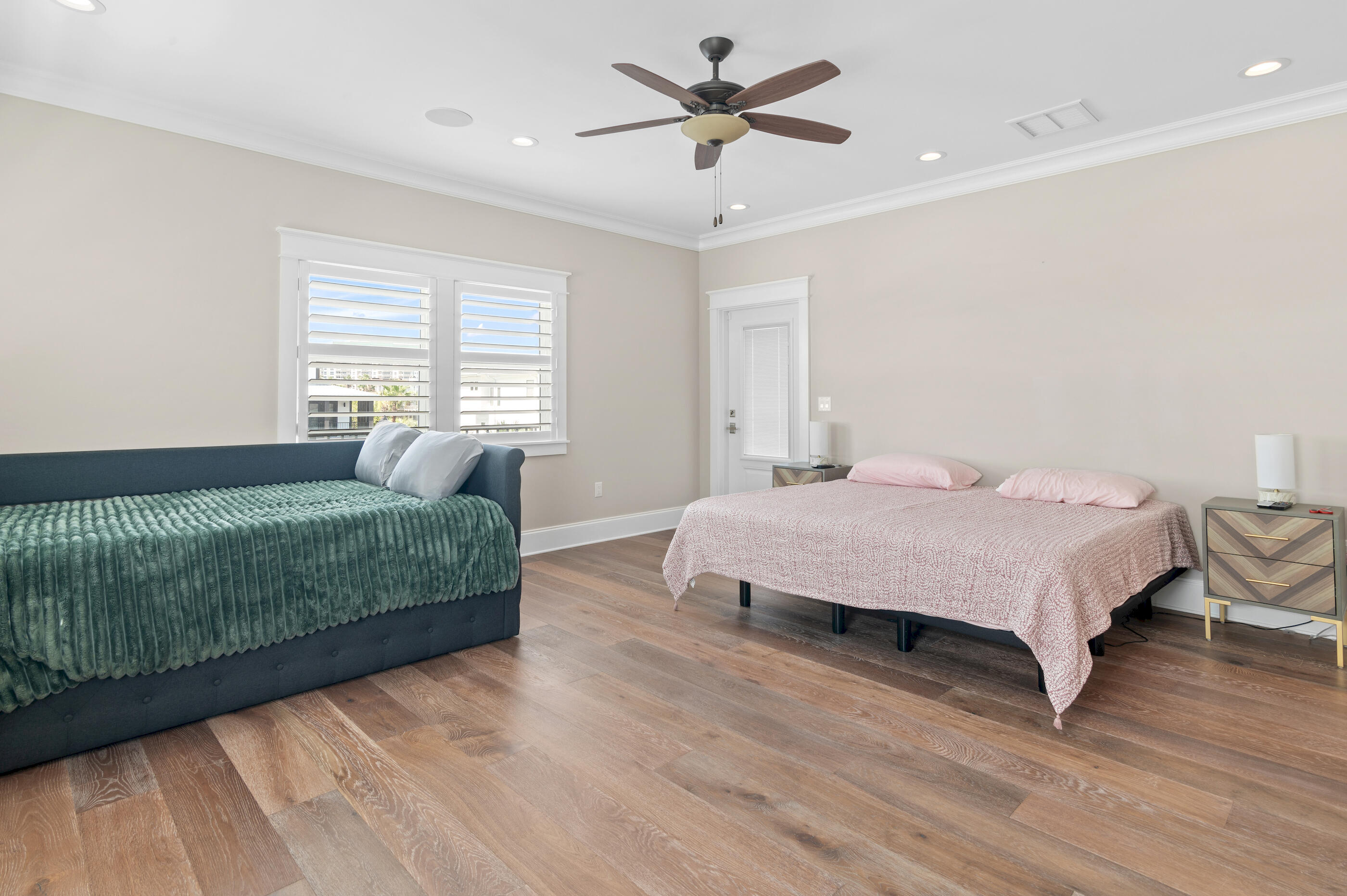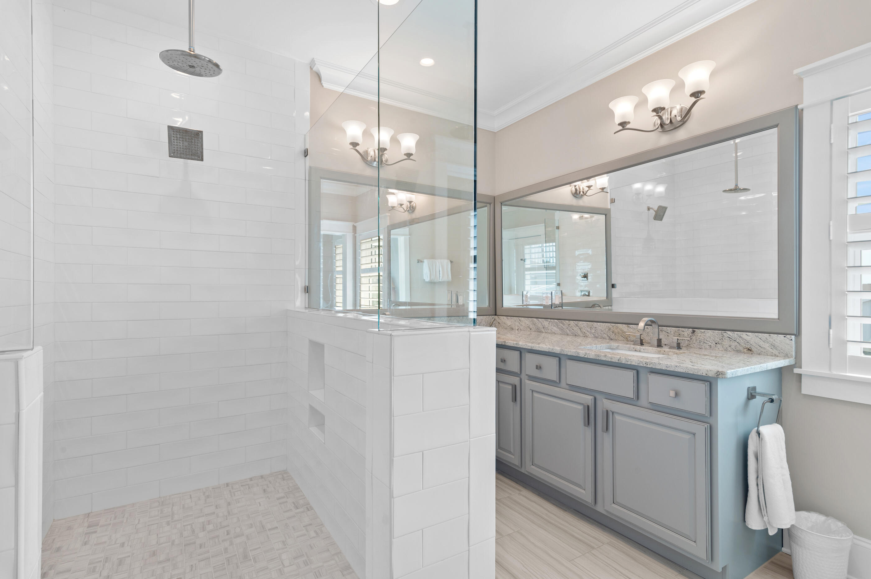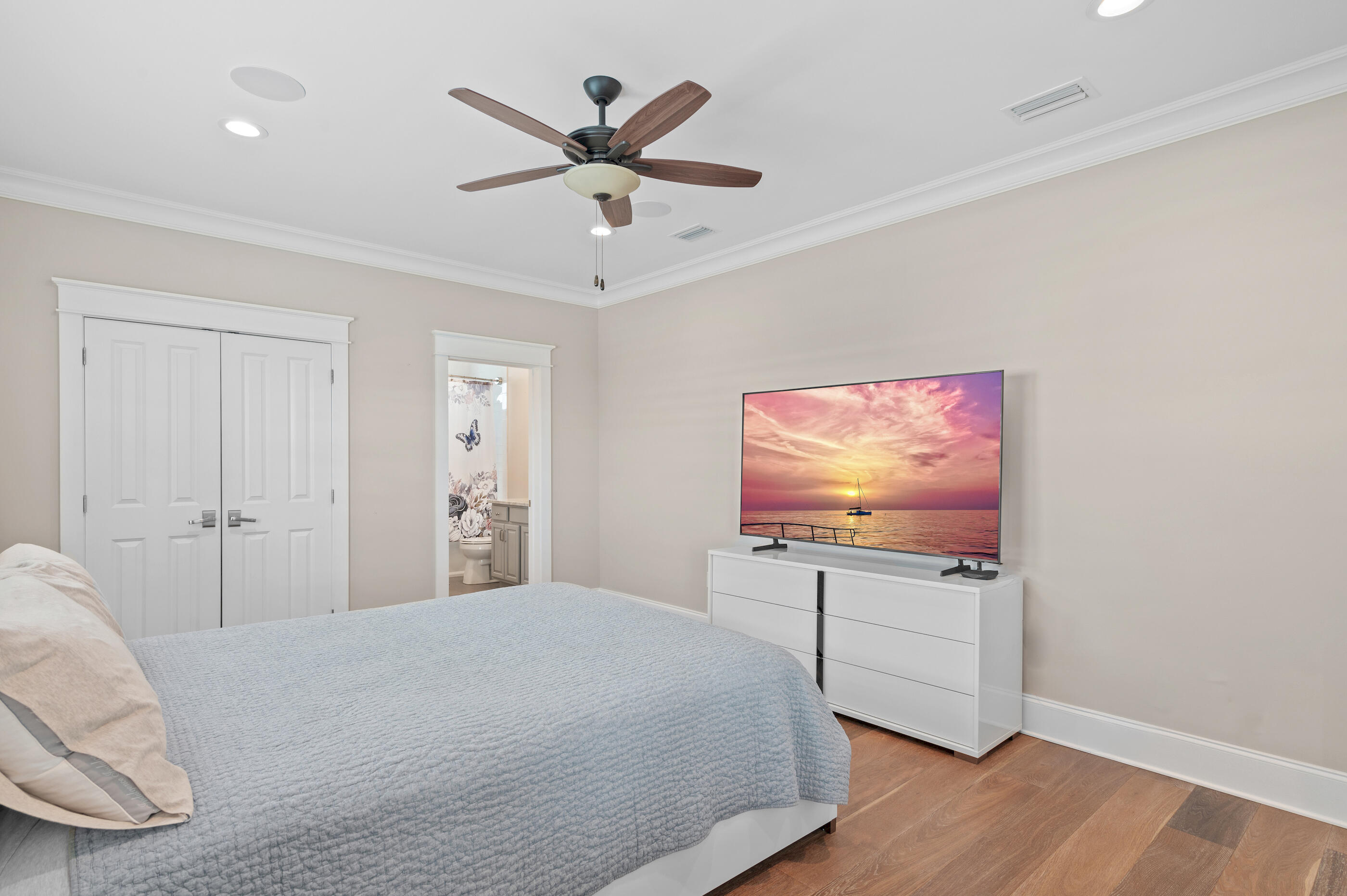 The resort-like rear exterior includes a stunning swimming pool and hot tub with fountains, a rain curtain, and custom color-changing lighting. Roll-up pool screens provide unobstructed views and enhanced airflow. Over 2,000 square feet of covered porches, a large sundeck, and a private beach area with a fire pit complete this exceptional outdoor living space.