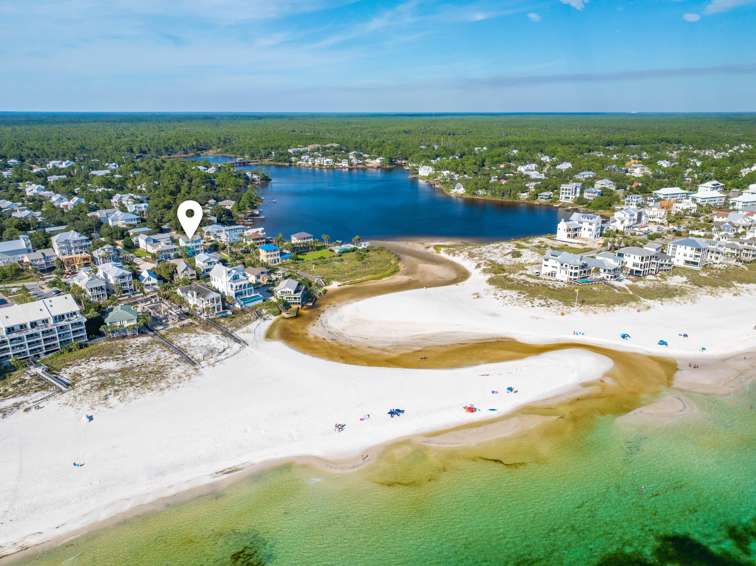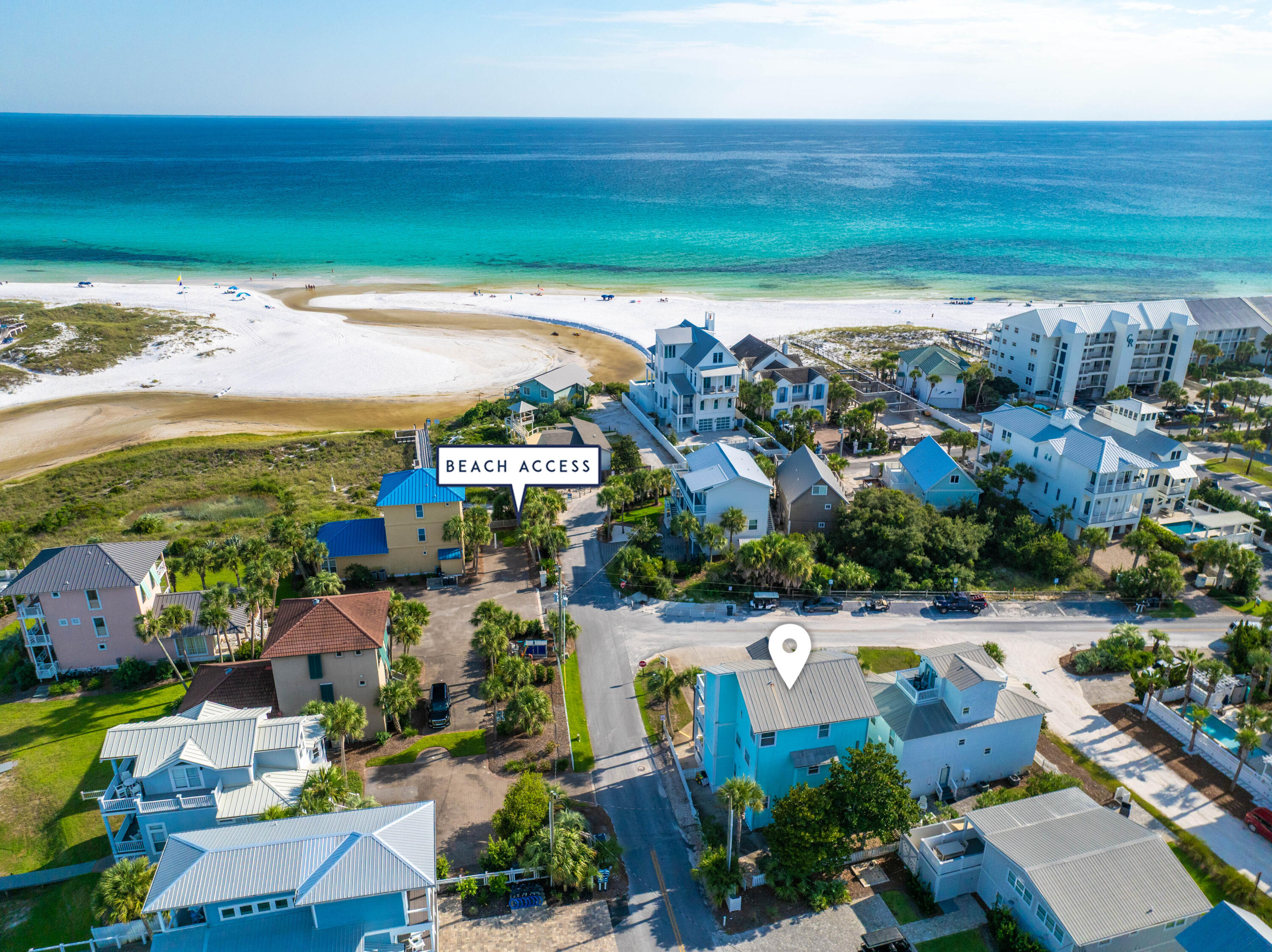 From Scenic 30A turn South onto S. Lake, house is at the corner of Eastern Lane and S. Lake