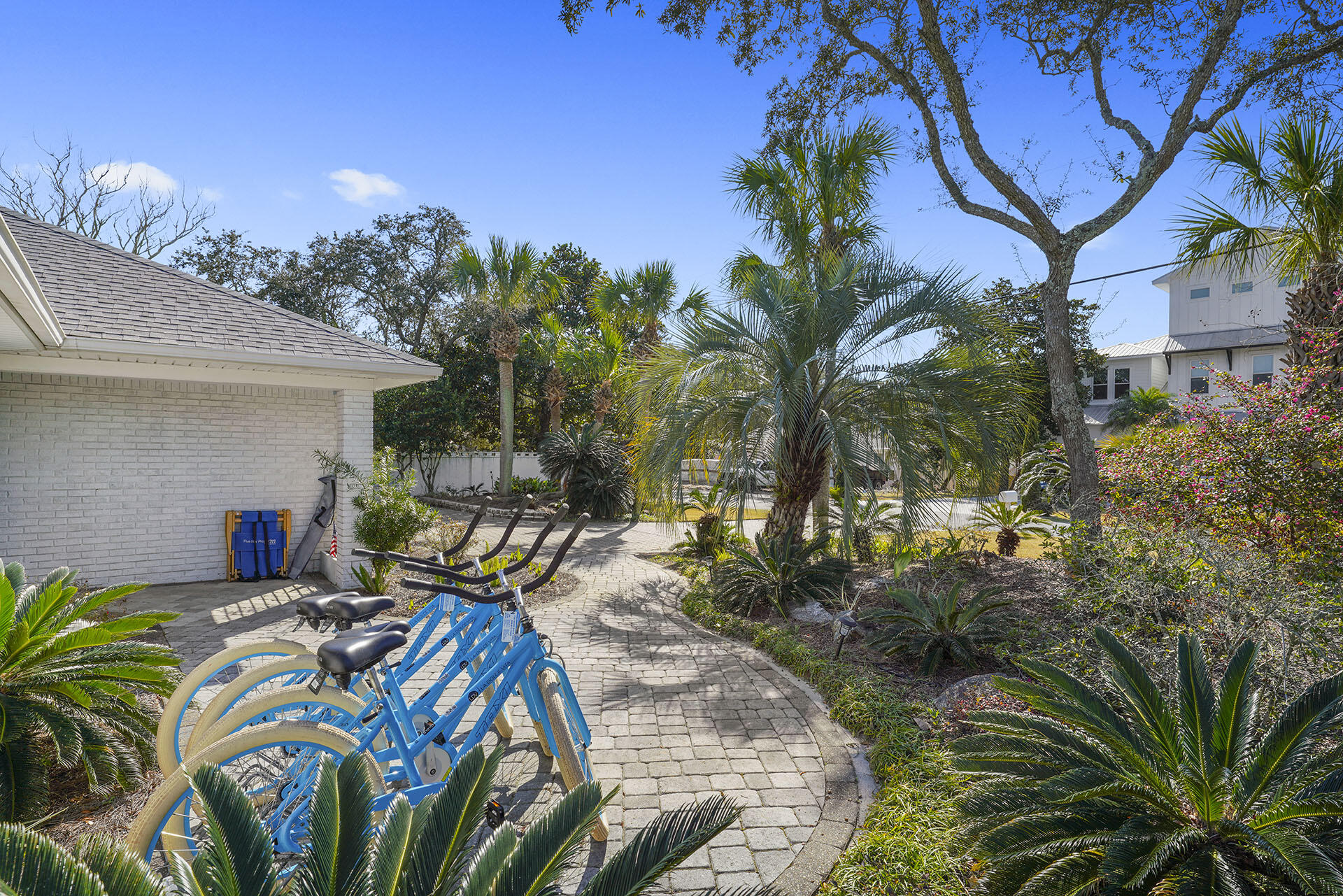 For added convenience and adventure, explore the scenic neighborhood on one of four complimentary bikes or a golf cart included with your stay. Just a short five-minute walk leads you to exclusive private beach access, where soft sands and the shimmering Gulf waters await.