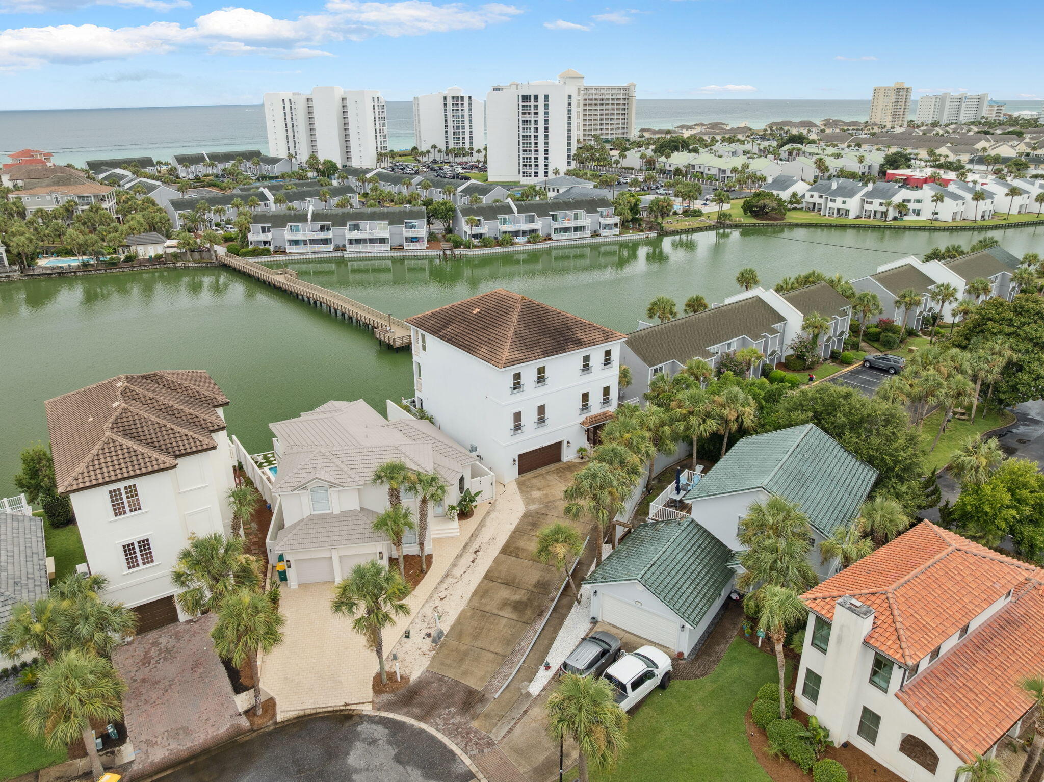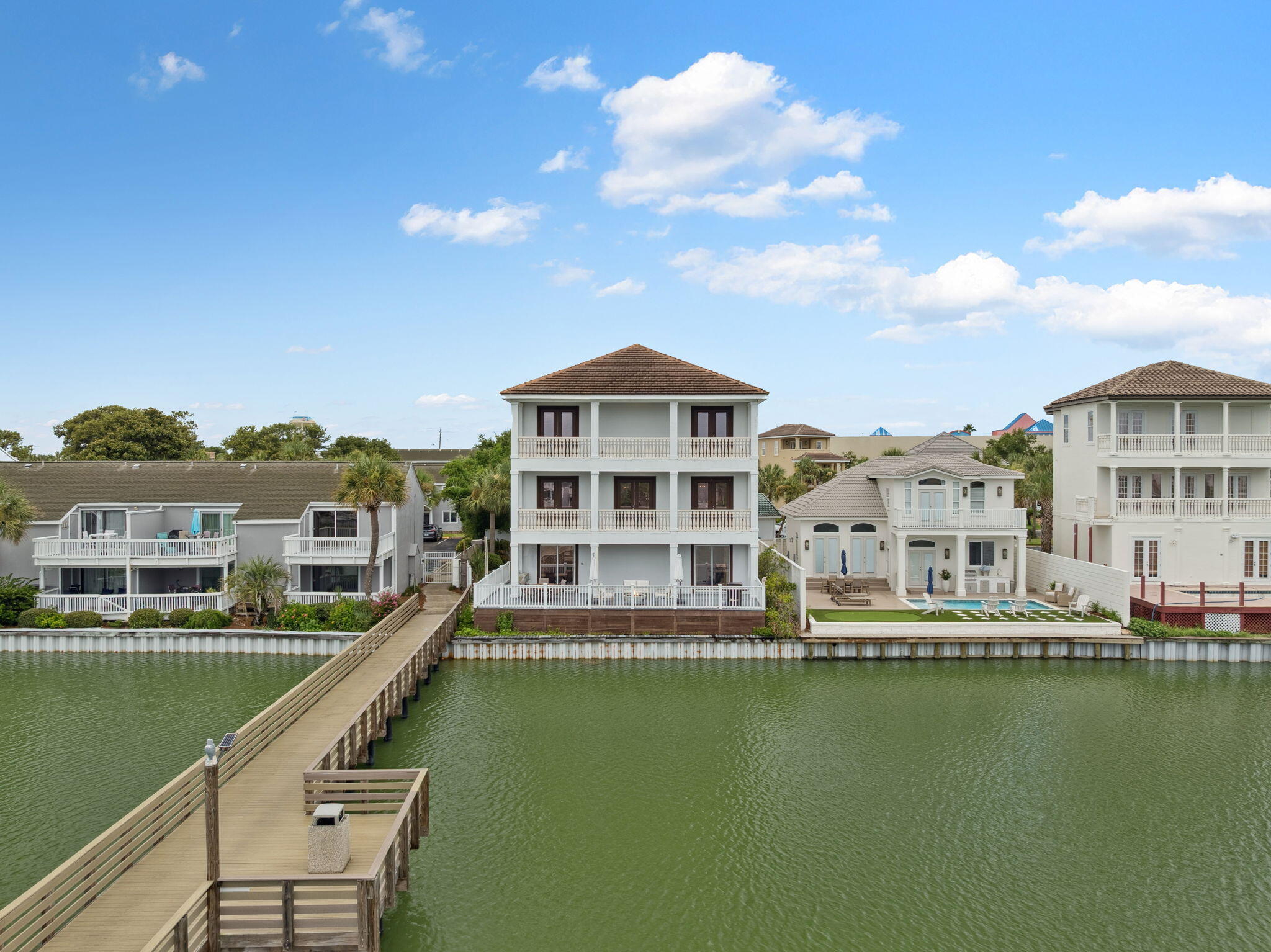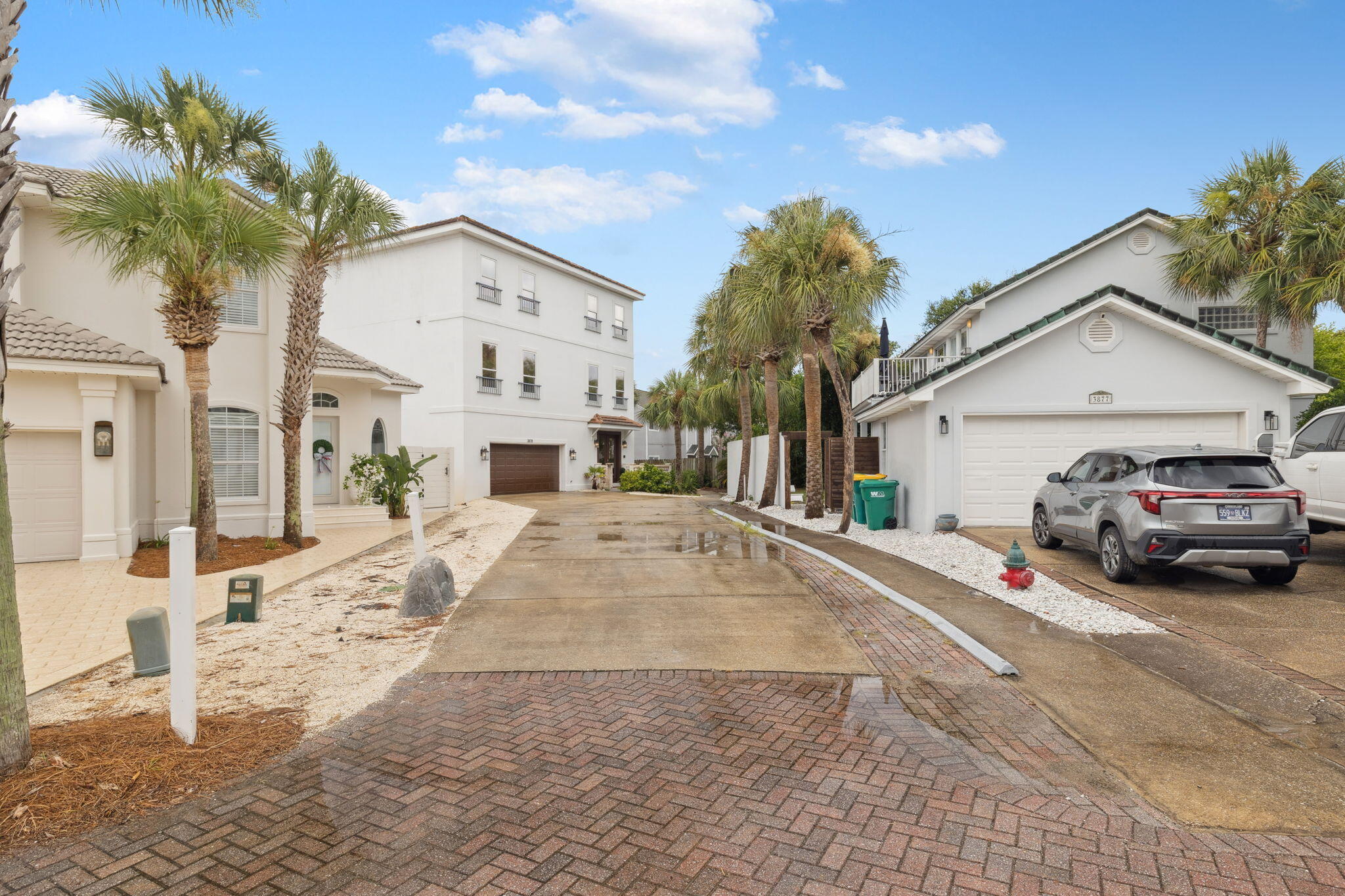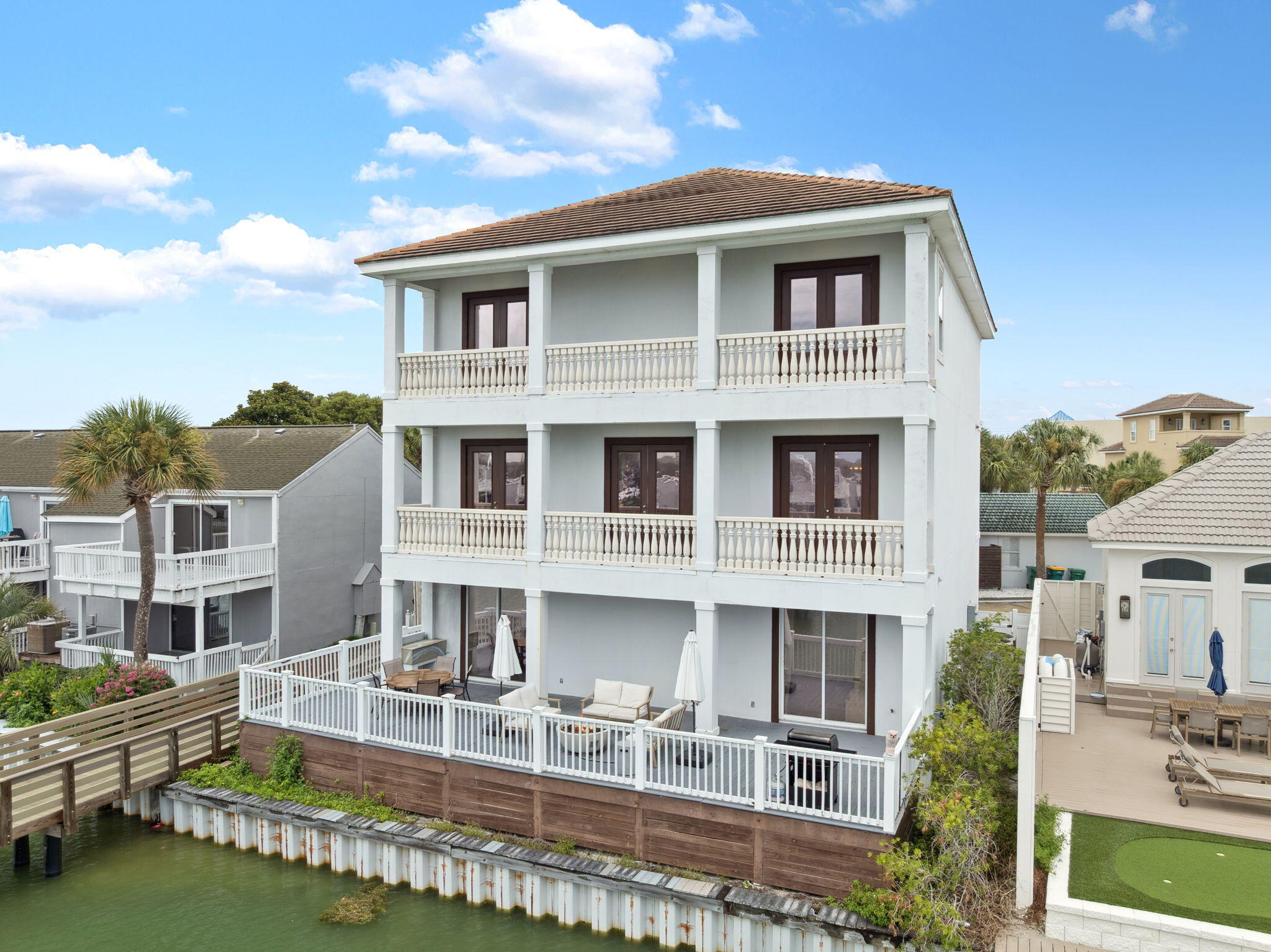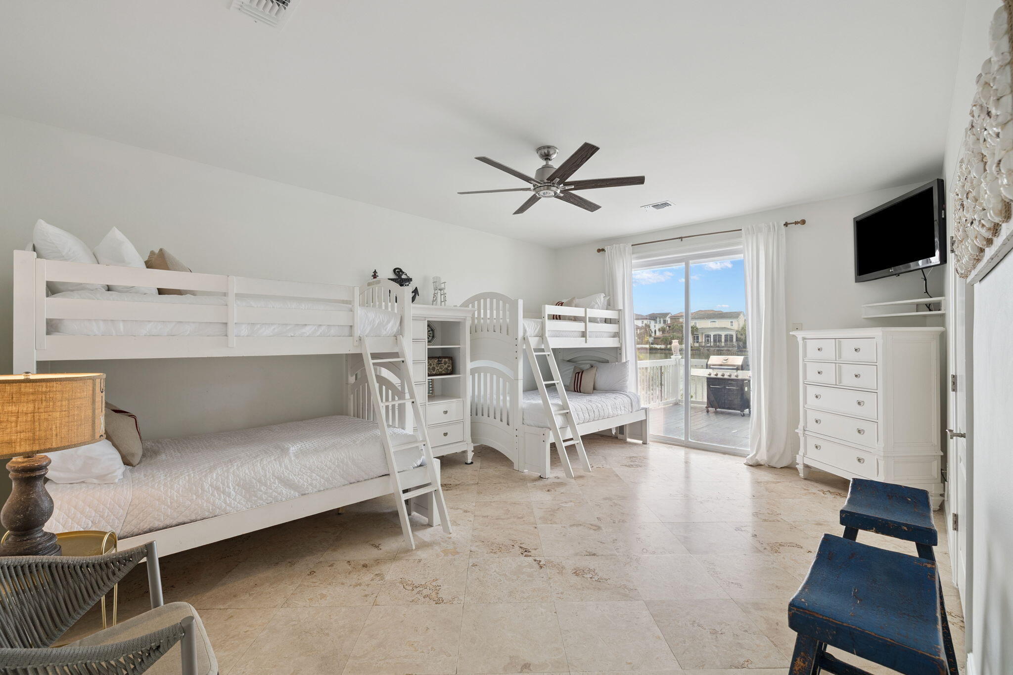A stunning lakefront estate in the heart of Destin, Florida, this eight-bedroom, six-bathroom retreat offers a rare combination of privacy, elegance, and walkable beach access. Located within a secure gated community and just minutes from the Gulf, this residence embodies coastal luxury at every turn.Spanning three thoughtfully designed levels, the home offers exceptional comfort and functionality. Recently updated with fresh paint, furnishings, and decor. On the first floor, a two-car garage provides ample storage, while a spacious recreation and workout room with a full bathroom including a stand-up shower creates the perfect space for active living. A large bunk room comfortably sleeps 6 to 8 guests, making it ideal for hosting extended family or vacation renters. The second floor serves as the main gathering level, where two generous bedrooms each with large walk-in closets complement the expansive living area. The open-concept kitchen is fully appointed with quartz countertops, upgraded appliances, and picturesque views of the lake. An oversized kitchen island with seating for eight offers a central hub for entertaining and casual dining. The spacious living room features ample seating, a built-in entertainment center, and access to one of the home's multiple outdoor decks. Two full bathrooms and a fully equipped laundry room complete this level.