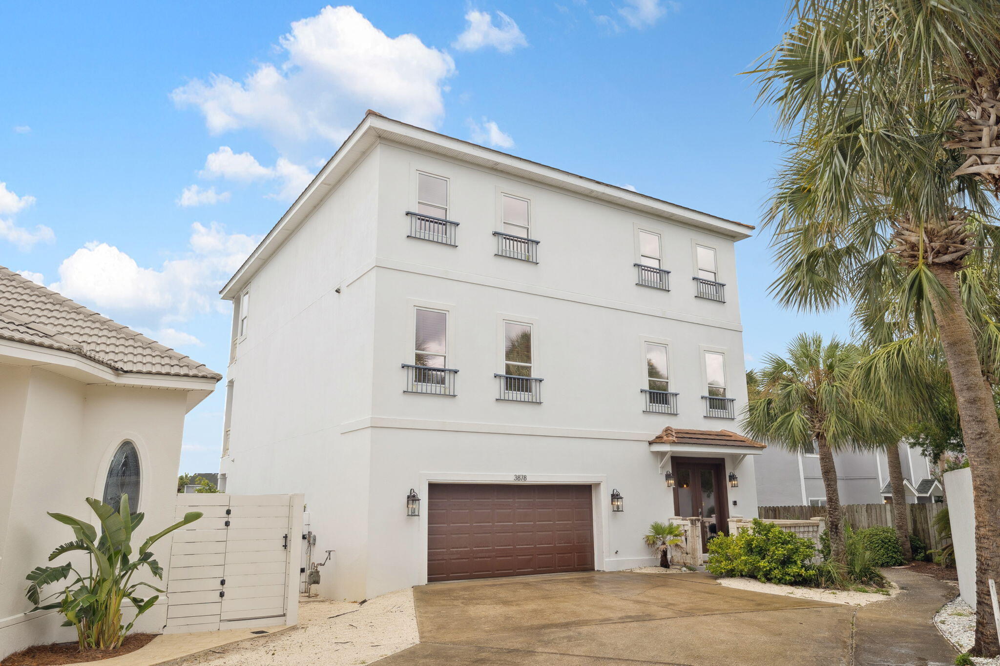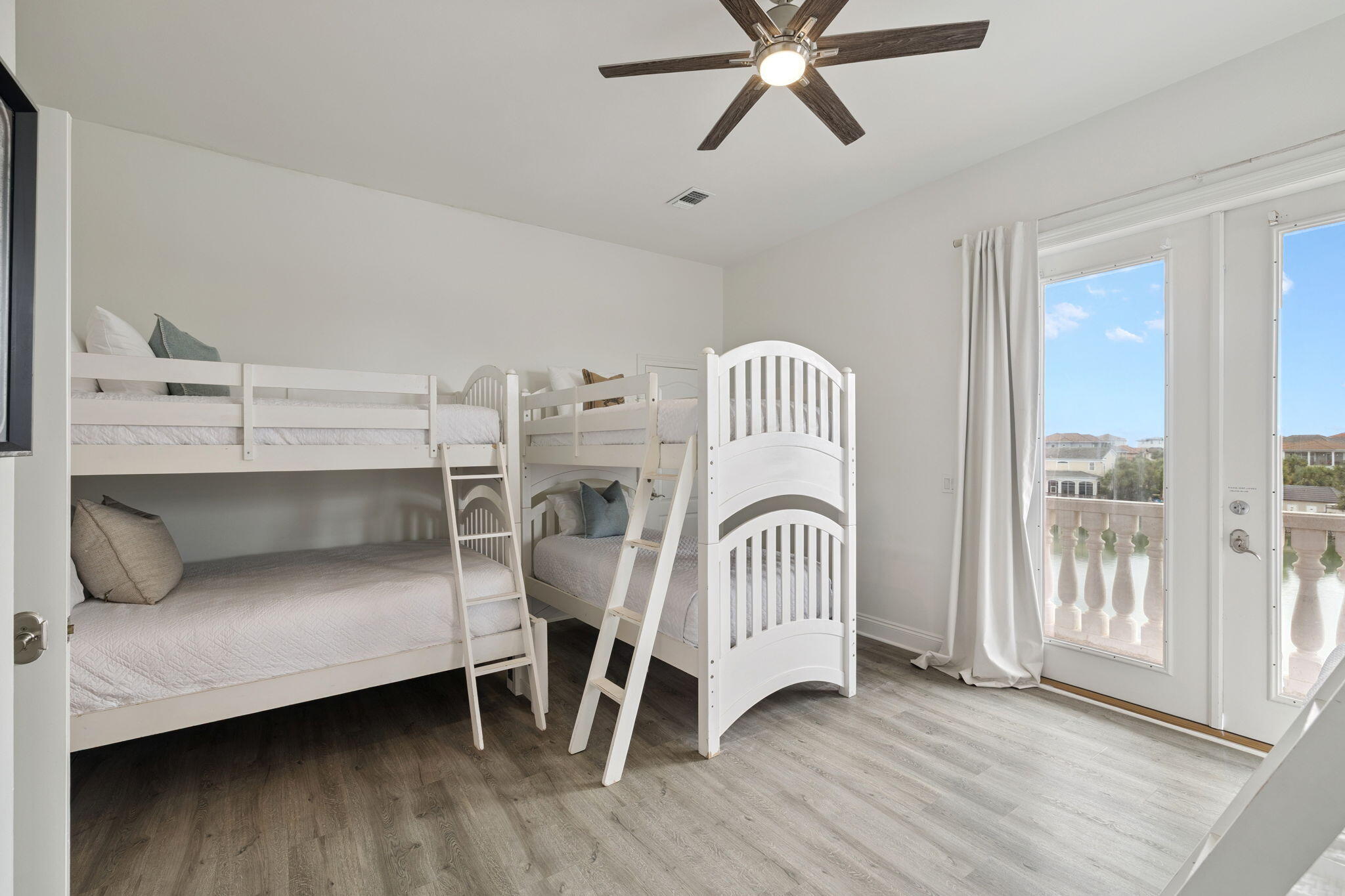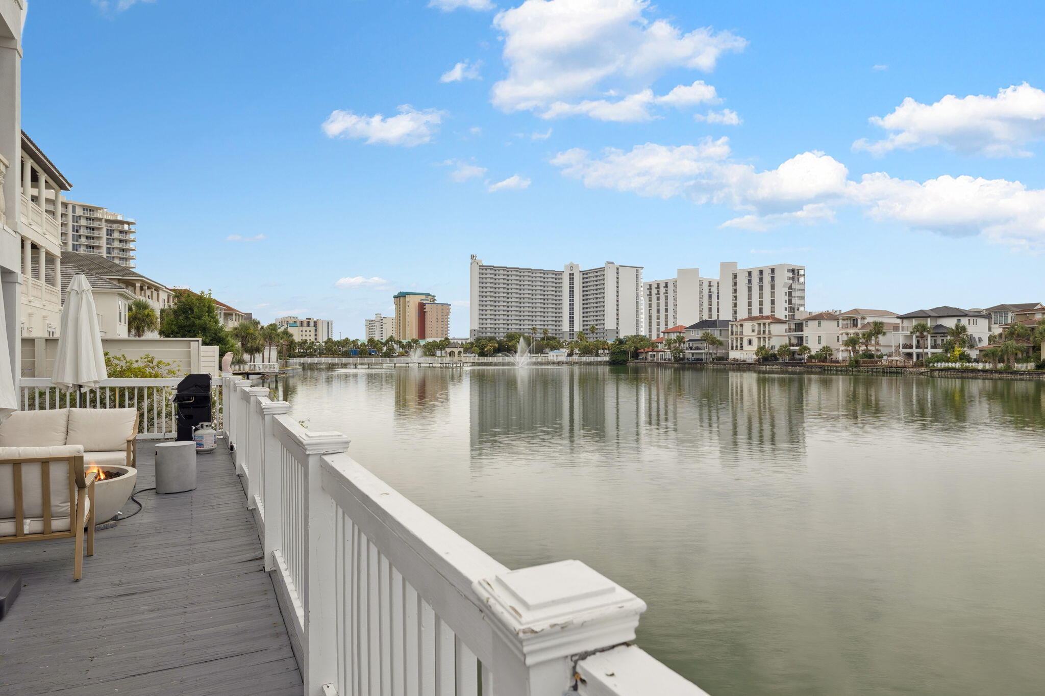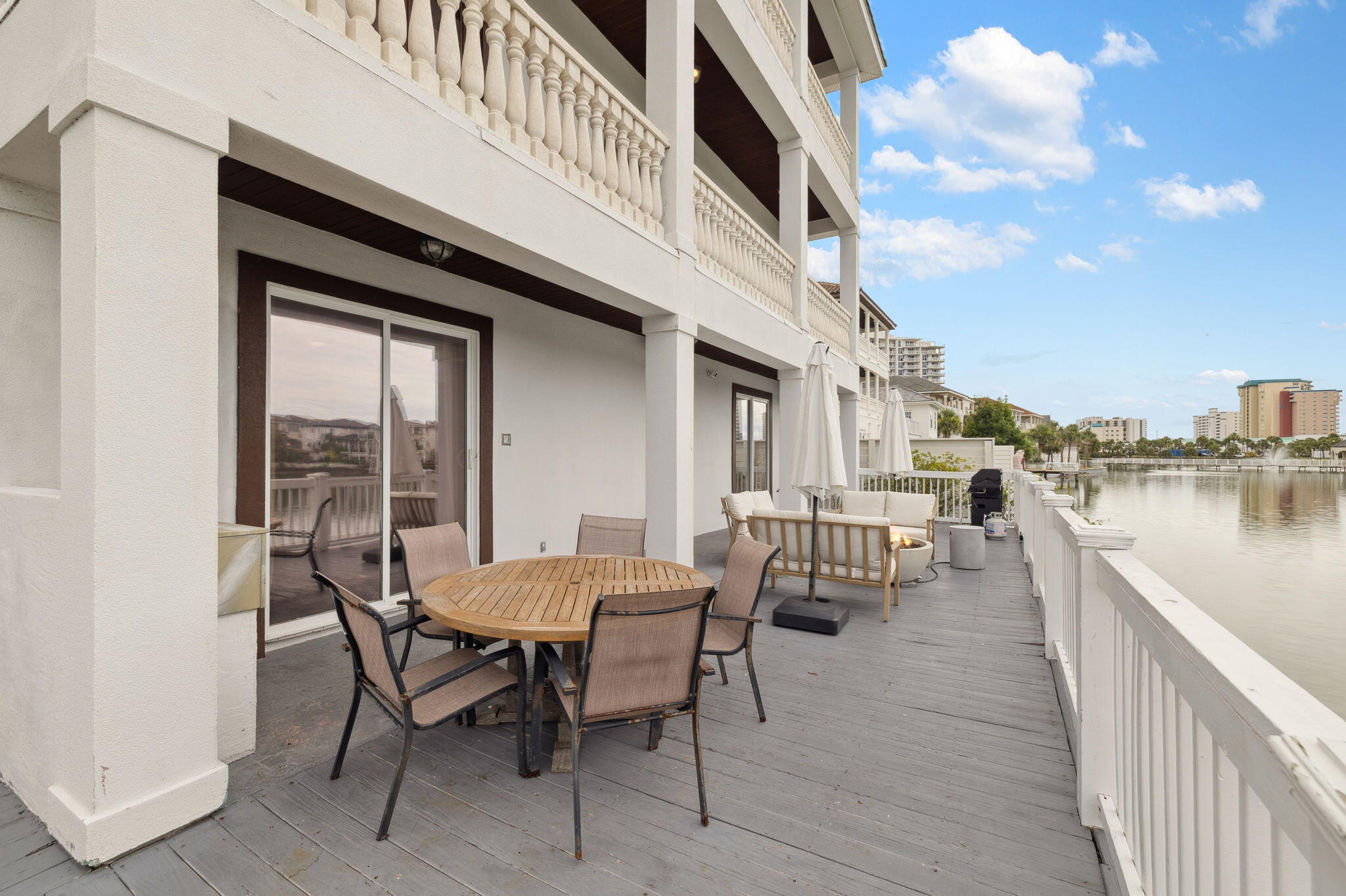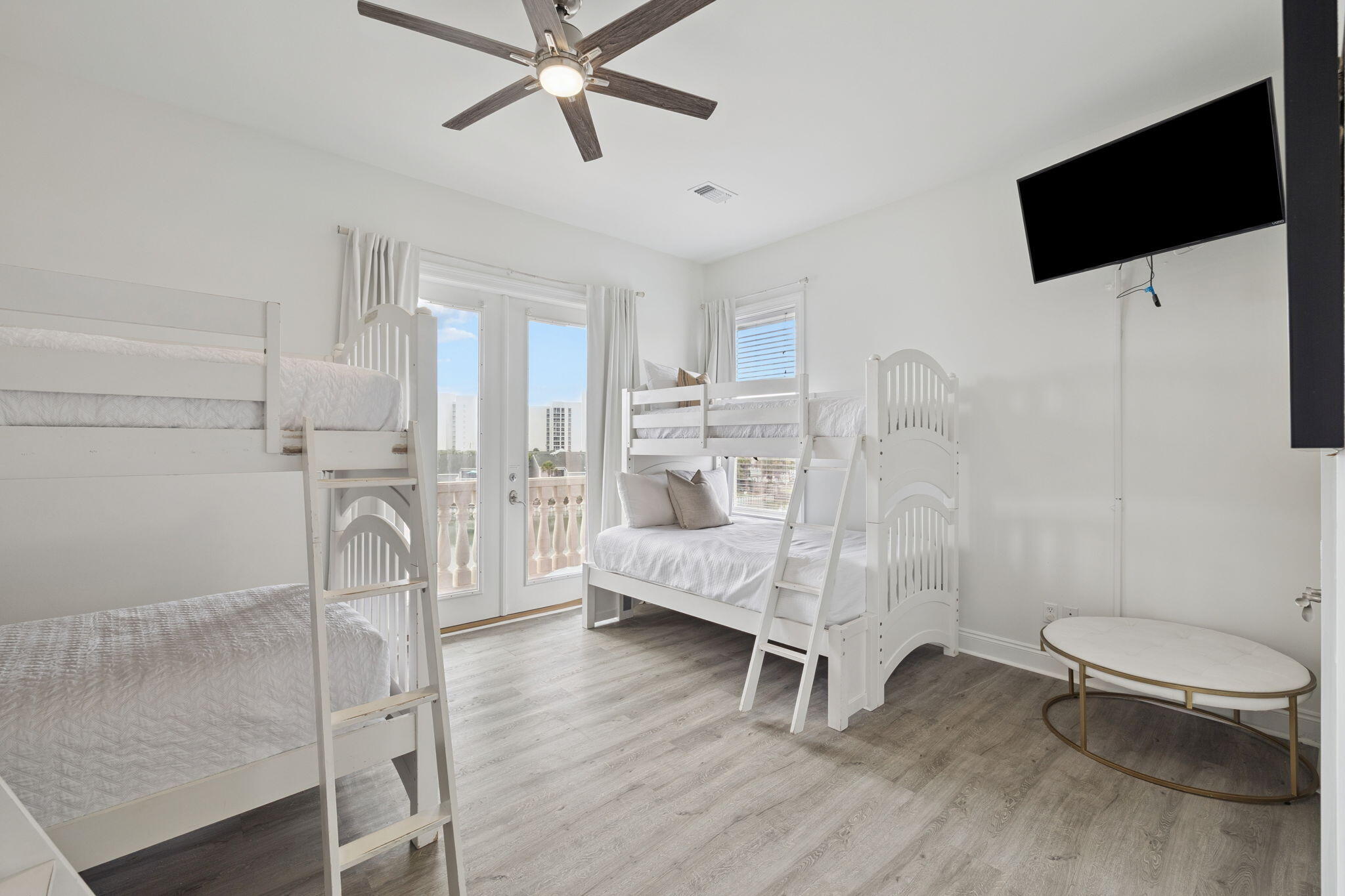 A stunning lakefront estate in the heart of Destin, Florida, this eight-bedroom, six-bathroom retreat offers a rare combination of privacy, elegance, and walkable beach access. Located within a secure gated community and just minutes from the Gulf, this residence embodies coastal luxury at every turn.Spanning three thoughtfully designed levels, the home offers exceptional comfort and functionality. Recently updated with fresh paint, furnishings, and decor. On the first floor, a two-car garage provides ample storage, while a spacious recreation and workout room with a full bathroom including a stand-up shower creates the perfect space for active living. A large bunk room comfortably sleeps 6 to 8 guests, making it ideal for hosting extended family or vacation renters. The second floor serves as the main gathering level, where two generous bedrooms each with large walk-in closets complement the expansive living area. The open-concept kitchen is fully appointed with quartz countertops, upgraded appliances, and picturesque views of the lake. An oversized kitchen island with seating for eight offers a central hub for entertaining and casual dining. The spacious living room features ample seating, a built-in entertainment center, and access to one of the home's multiple outdoor decks. Two full bathrooms and a fully equipped laundry room complete this level.