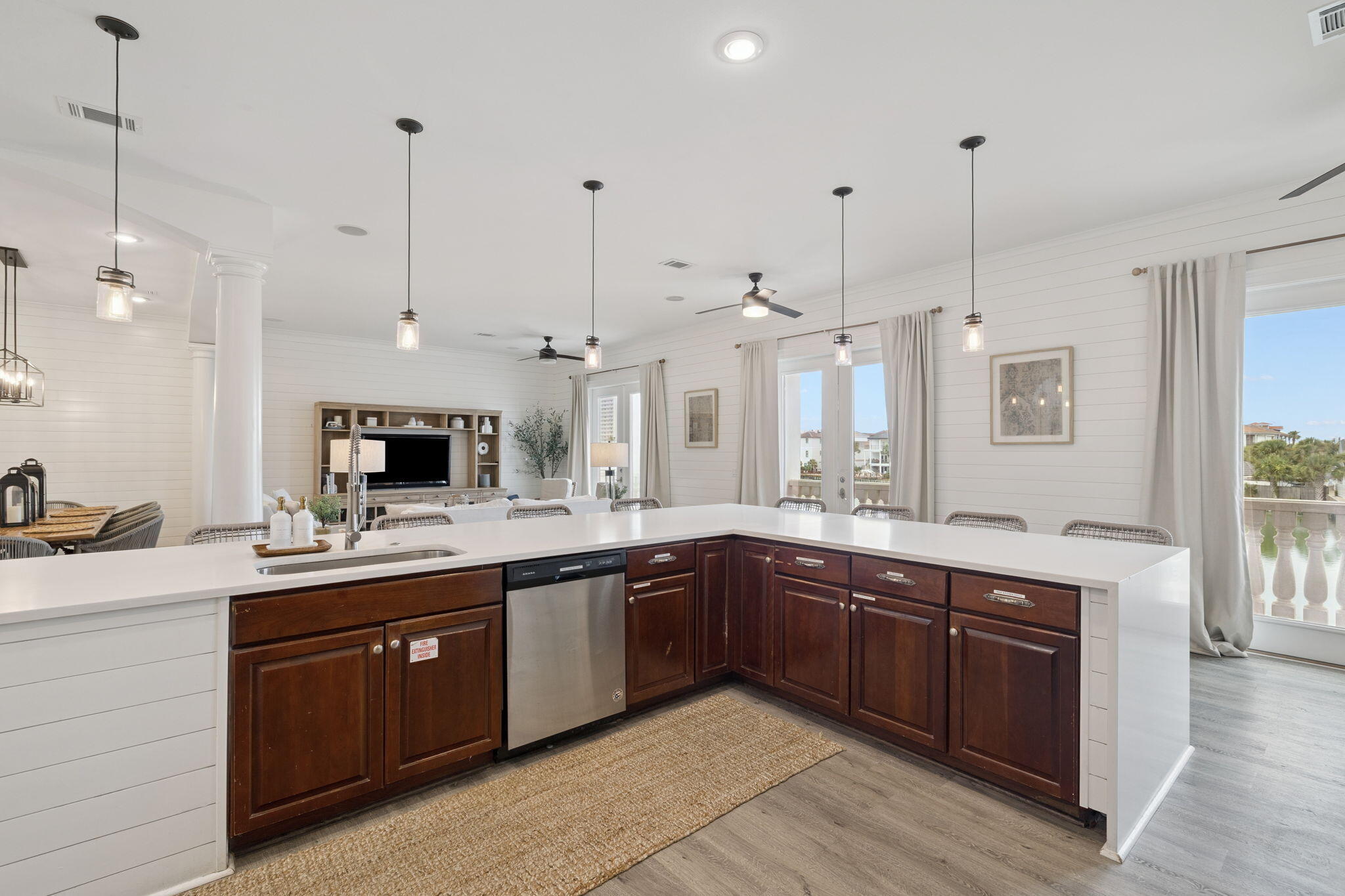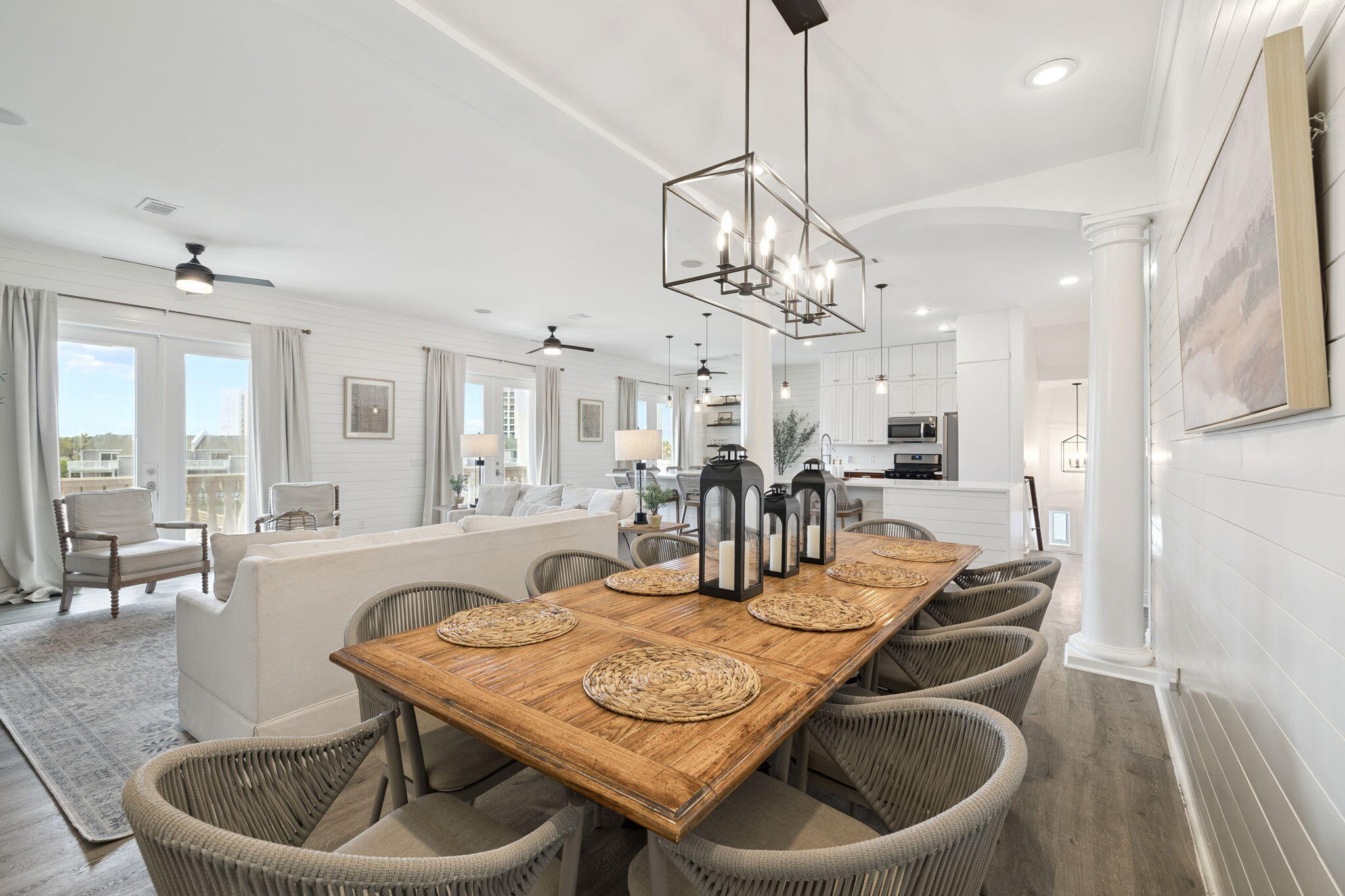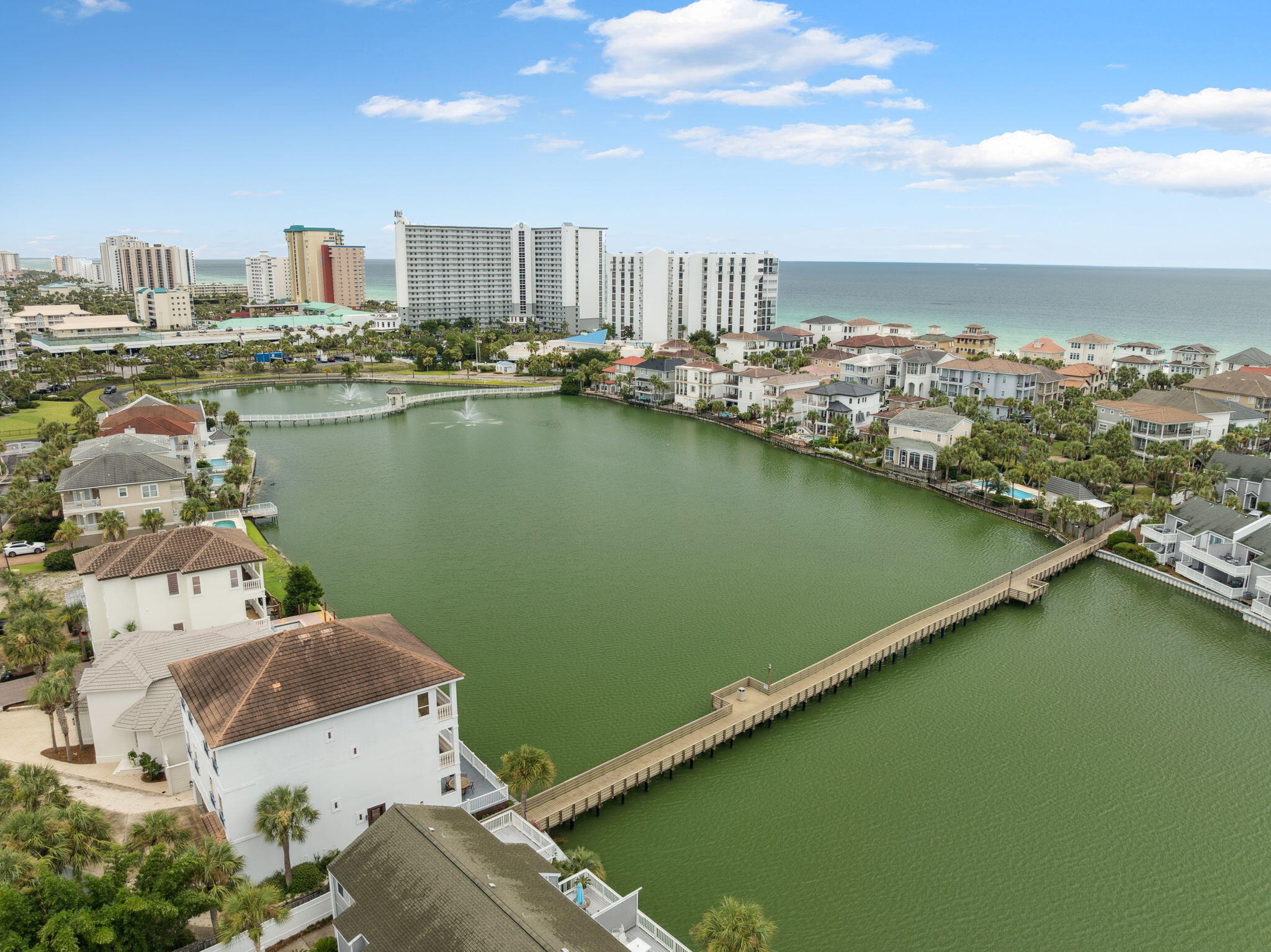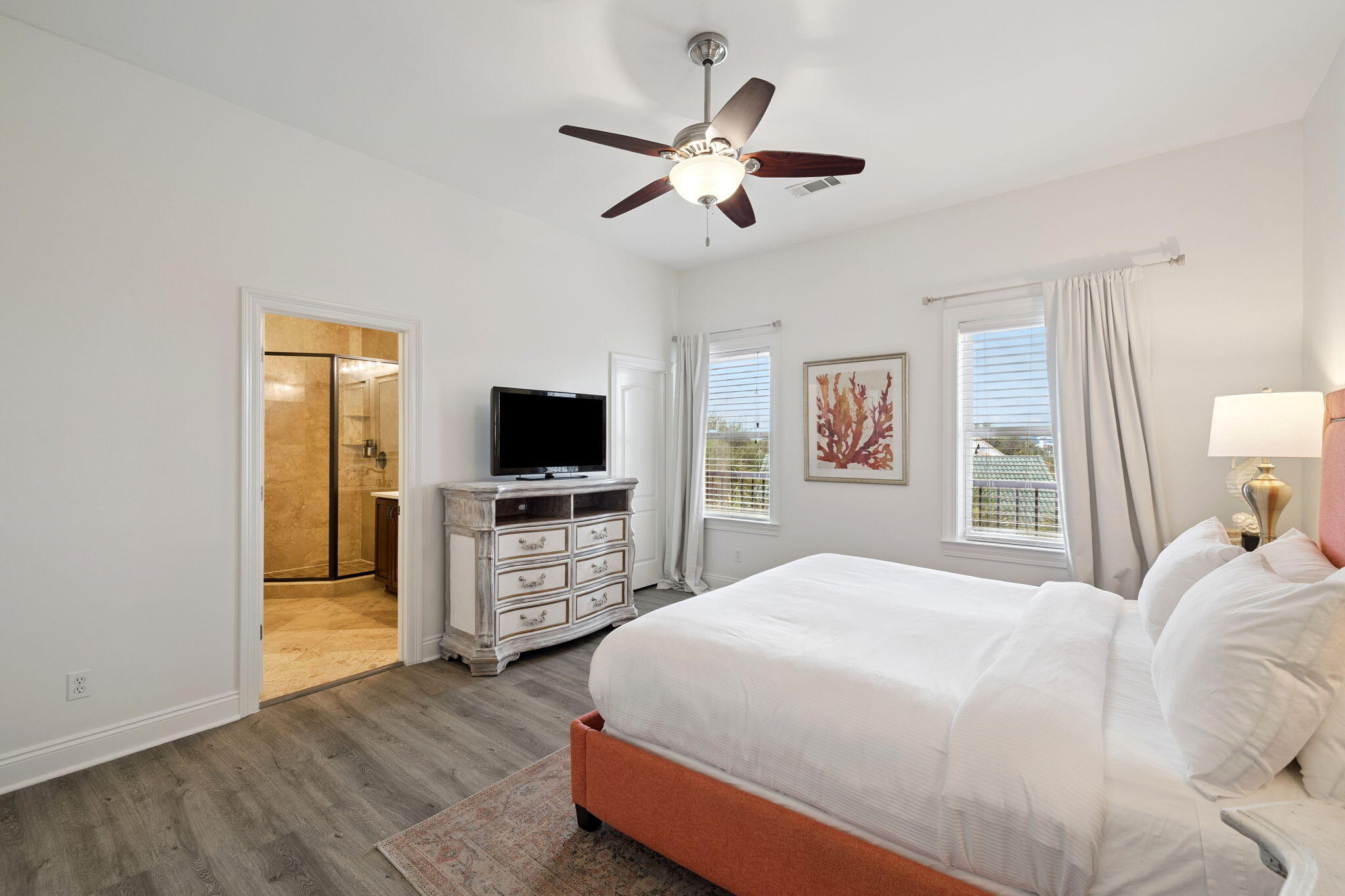 A stunning lakefront estate in the heart of Destin, Florida, this eight-bedroom, six-bathroom retreat offers a rare combination of privacy, elegance, and walkable beach access. Located within a secure gated community and just minutes from the Gulf, this residence embodies coastal luxury at every turn.Spanning three thoughtfully designed levels, the home offers exceptional comfort and functionality. Recently updated with fresh paint, furnishings, and decor. On the first floor, a two-car garage provides ample storage, while a spacious recreation and workout room with a full bathroom including a stand-up shower creates the perfect space for active living. A large bunk room comfortably sleeps 6 to 8 guests, making it ideal for hosting extended family or vacation renters. The second floor serves as the main gathering level, where two generous bedrooms each with large walk-in closets complement the expansive living area. The open-concept kitchen is fully appointed with quartz countertops, upgraded appliances, and picturesque views of the lake. An oversized kitchen island with seating for eight offers a central hub for entertaining and casual dining. The spacious living room features ample seating, a built-in entertainment center, and access to one of the home's multiple outdoor decks. Two full bathrooms and a fully equipped laundry room complete this level.