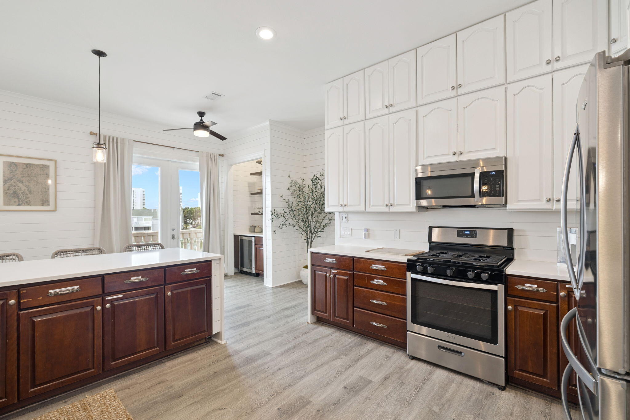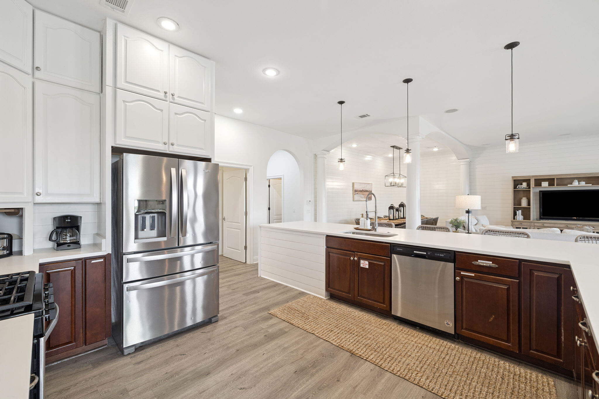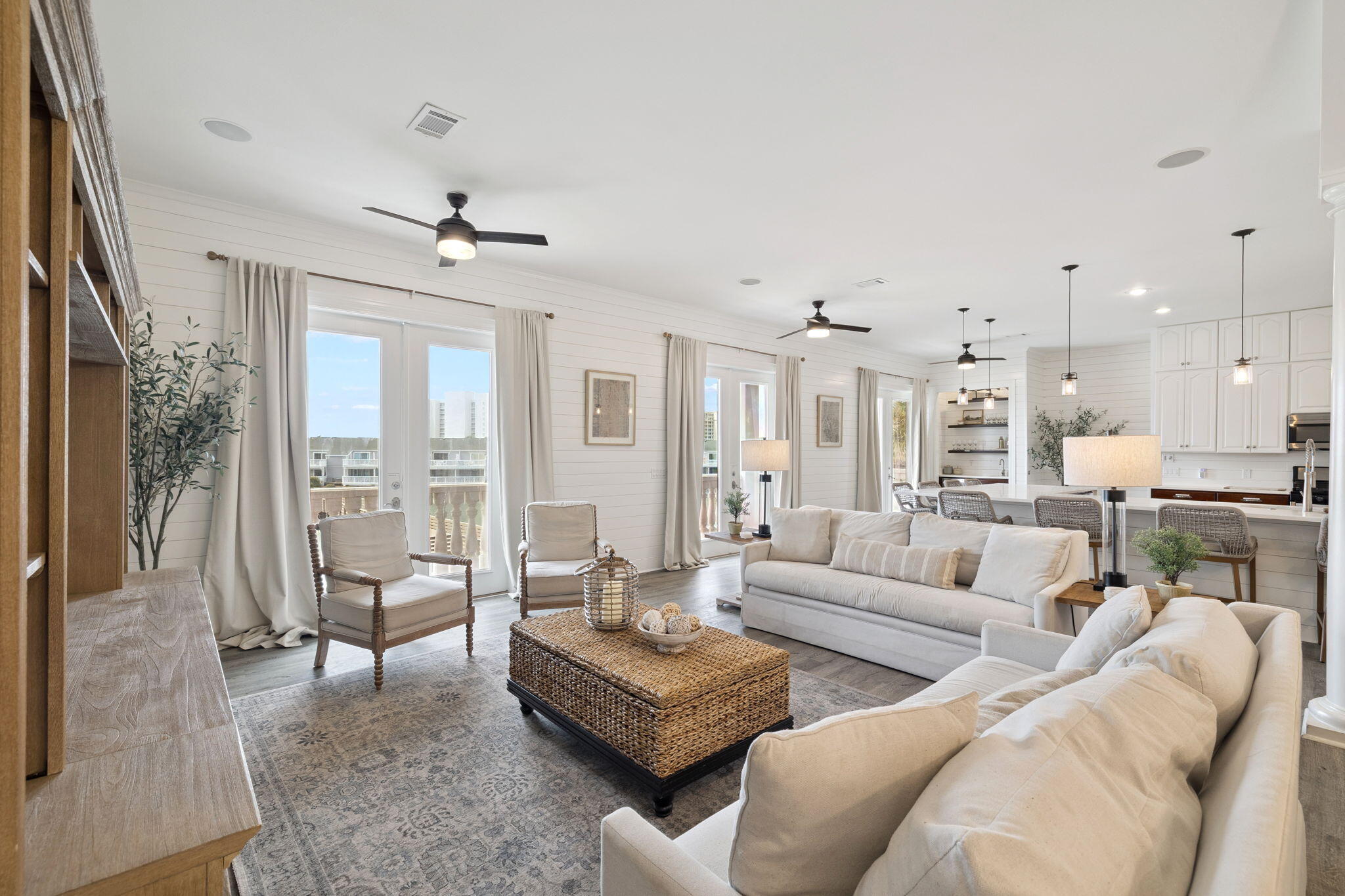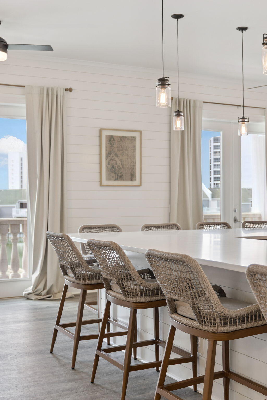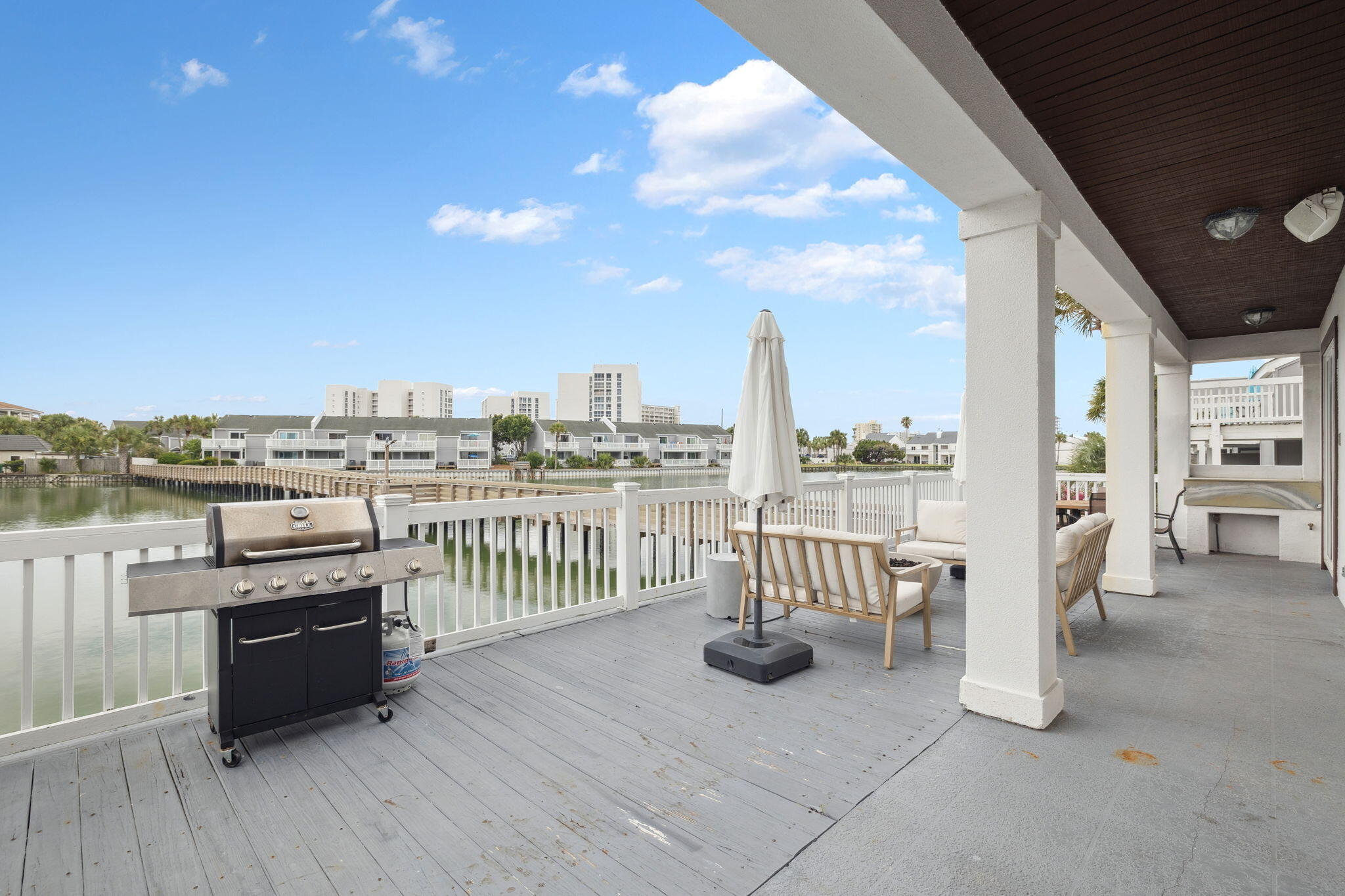A stunning lakefront estate in the heart of Destin, Florida, this eight-bedroom, six-bathroom retreat offers a rare combination of privacy, elegance, and walkable beach access. Located within a secure gated community and just minutes from the Gulf, this residence embodies coastal luxury at every turn.Spanning three thoughtfully designed levels, the home offers exceptional comfort and functionality. Recently updated with fresh paint, furnishings, and decor. On the first floor, a two-car garage provides ample storage, while a spacious recreation and workout room with a full bathroom including a stand-up shower creates the perfect space for active living. A large bunk room comfortably sleeps 6 to 8 guests, making it ideal for hosting extended family or vacation renters. The second floor serves as the main gathering level, where two generous bedrooms each with large walk-in closets complement the expansive living area. The open-concept kitchen is fully appointed with quartz countertops, upgraded appliances, and picturesque views of the lake. An oversized kitchen island with seating for eight offers a central hub for entertaining and casual dining. The spacious living room features ample seating, a built-in entertainment center, and access to one of the home's multiple outdoor decks. Two full bathrooms and a fully equipped laundry room complete this level.
