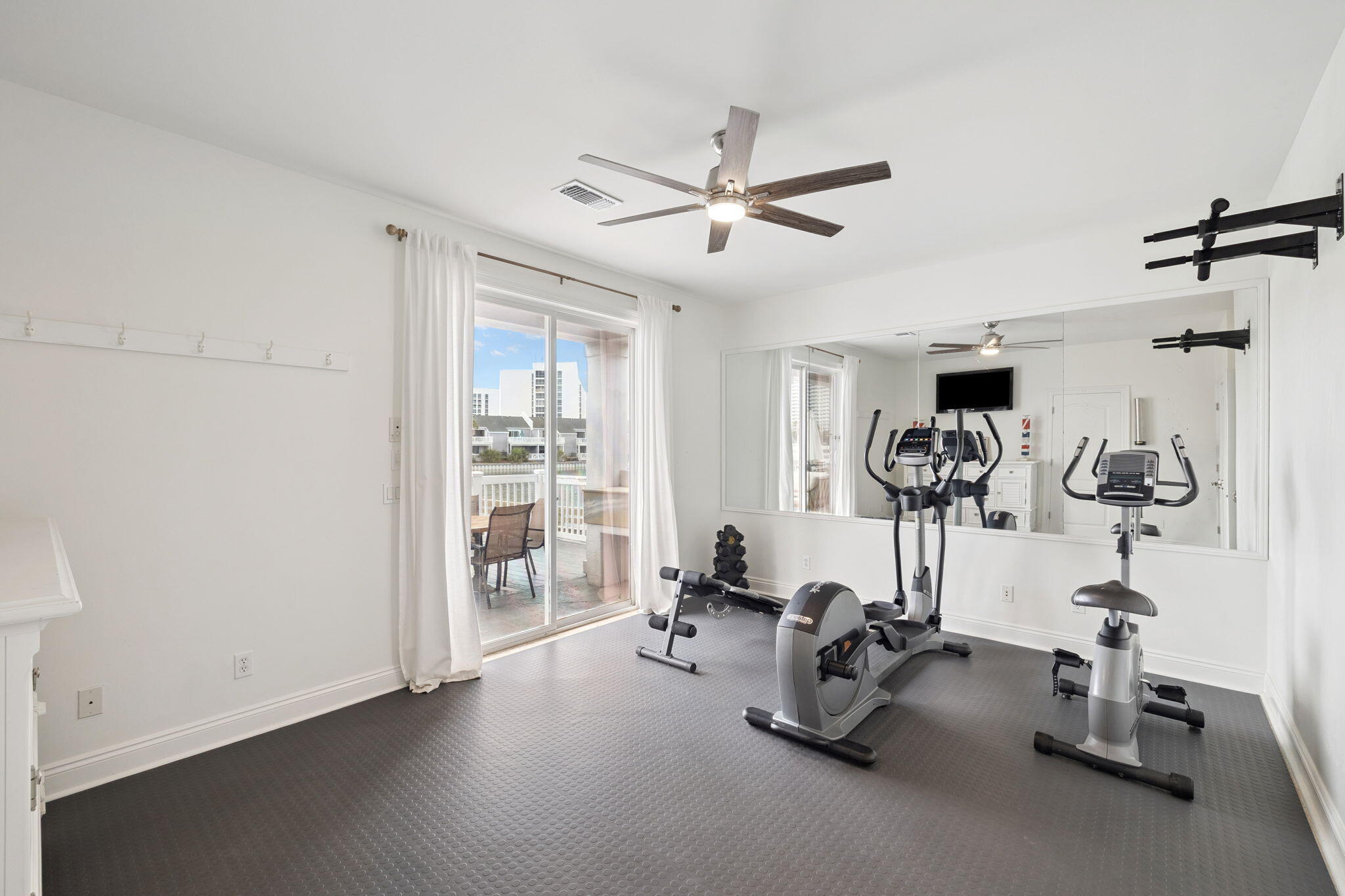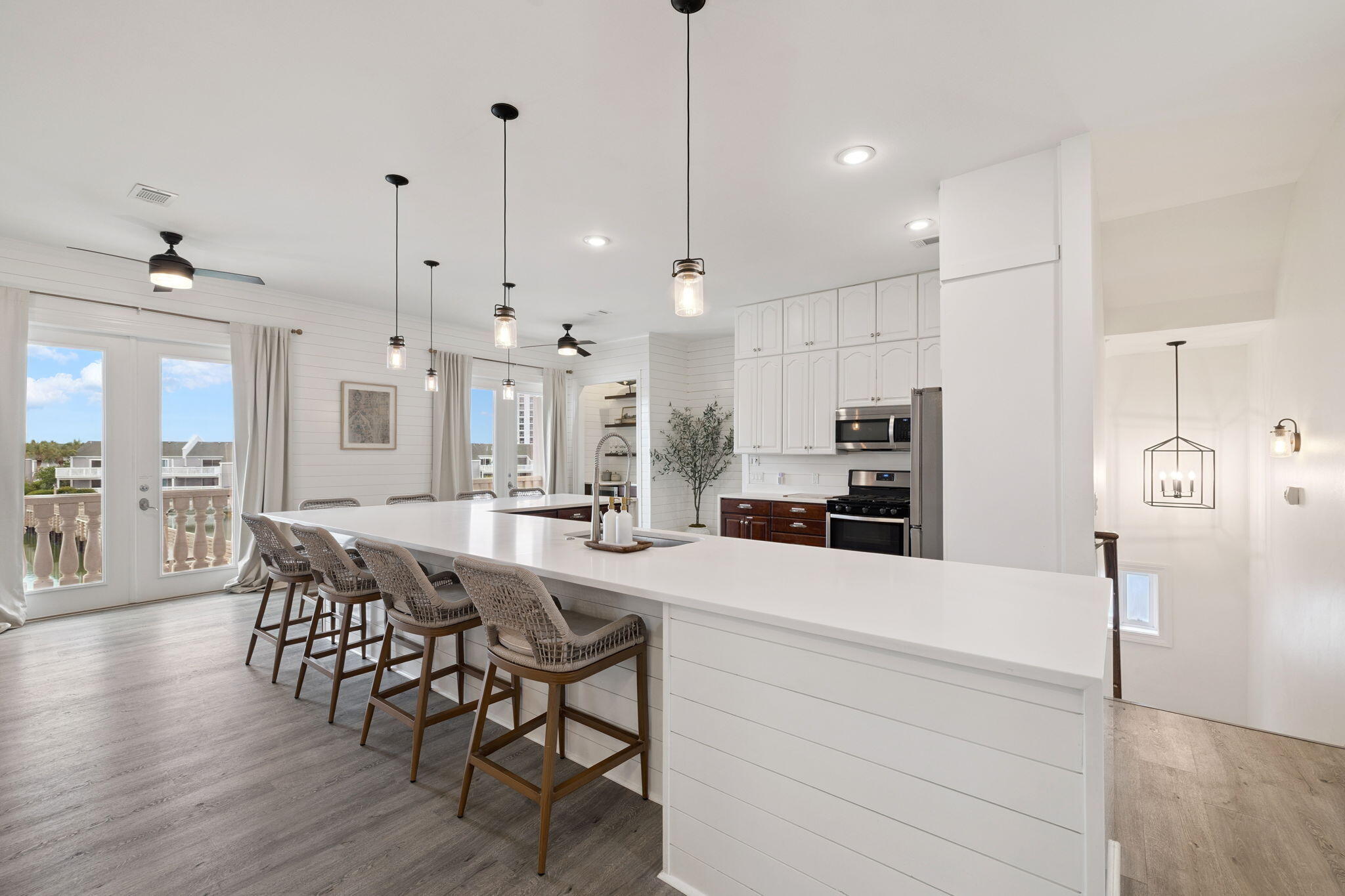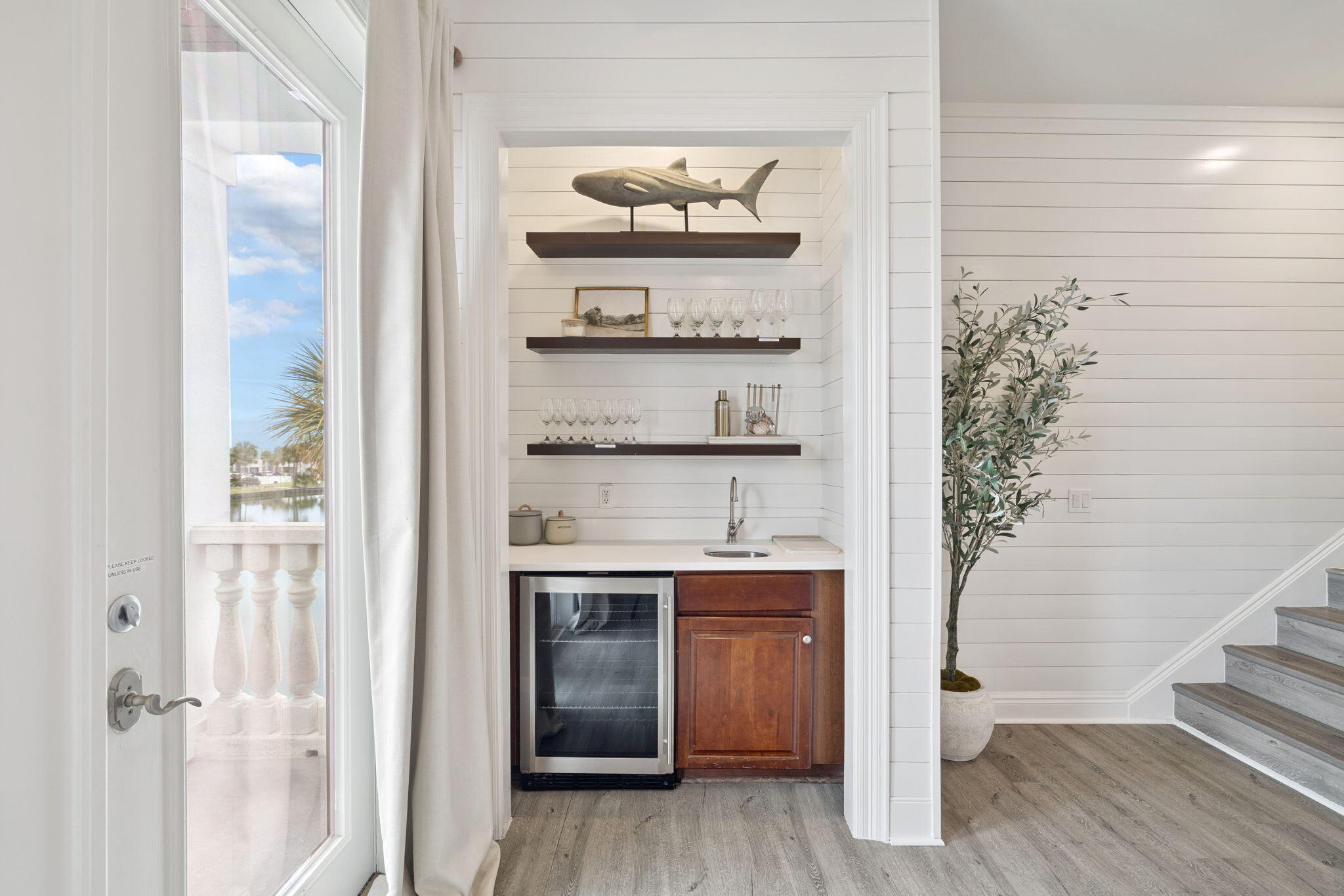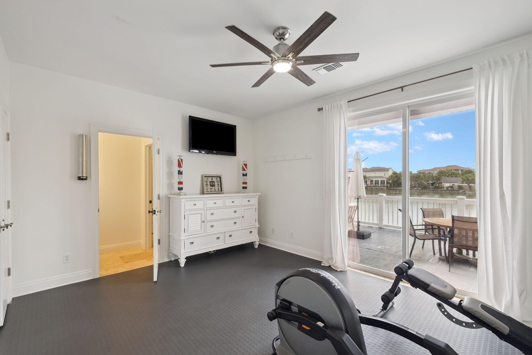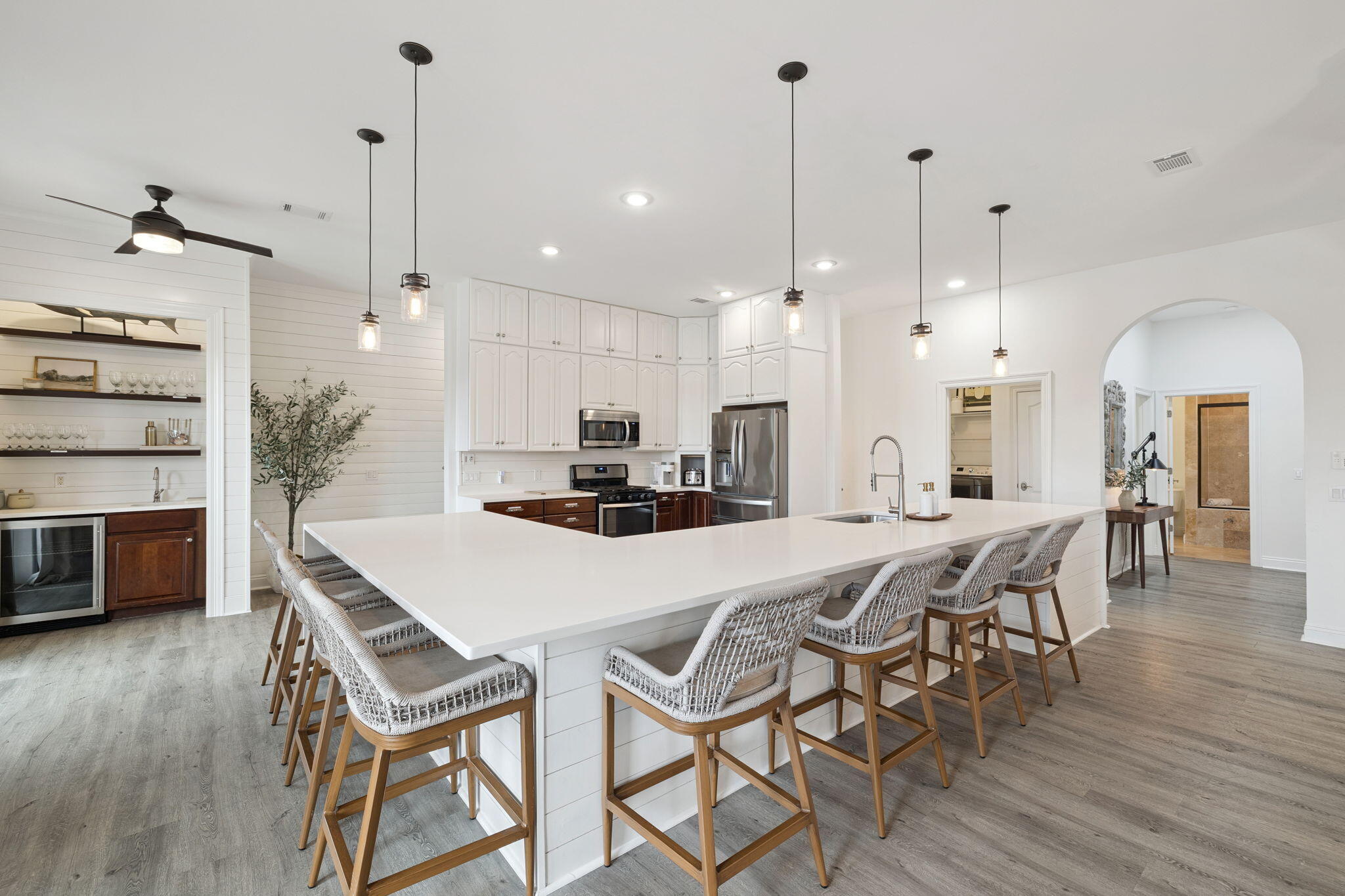 A stunning lakefront estate in the heart of Destin, Florida, this eight-bedroom, six-bathroom retreat offers a rare combination of privacy, elegance, and walkable beach access. Located within a secure gated community and just minutes from the Gulf, this residence embodies coastal luxury at every turn.Spanning three thoughtfully designed levels, the home offers exceptional comfort and functionality. Recently updated with fresh paint, furnishings, and decor. On the first floor, a two-car garage provides ample storage, while a spacious recreation and workout room with a full bathroom including a stand-up shower creates the perfect space for active living. A large bunk room comfortably sleeps 6 to 8 guests, making it ideal for hosting extended family or vacation renters. The second floor serves as the main gathering level, where two generous bedrooms each with large walk-in closets complement the expansive living area. The open-concept kitchen is fully appointed with quartz countertops, upgraded appliances, and picturesque views of the lake. An oversized kitchen island with seating for eight offers a central hub for entertaining and casual dining. The spacious living room features ample seating, a built-in entertainment center, and access to one of the home's multiple outdoor decks. Two full bathrooms and a fully equipped laundry room complete this level.