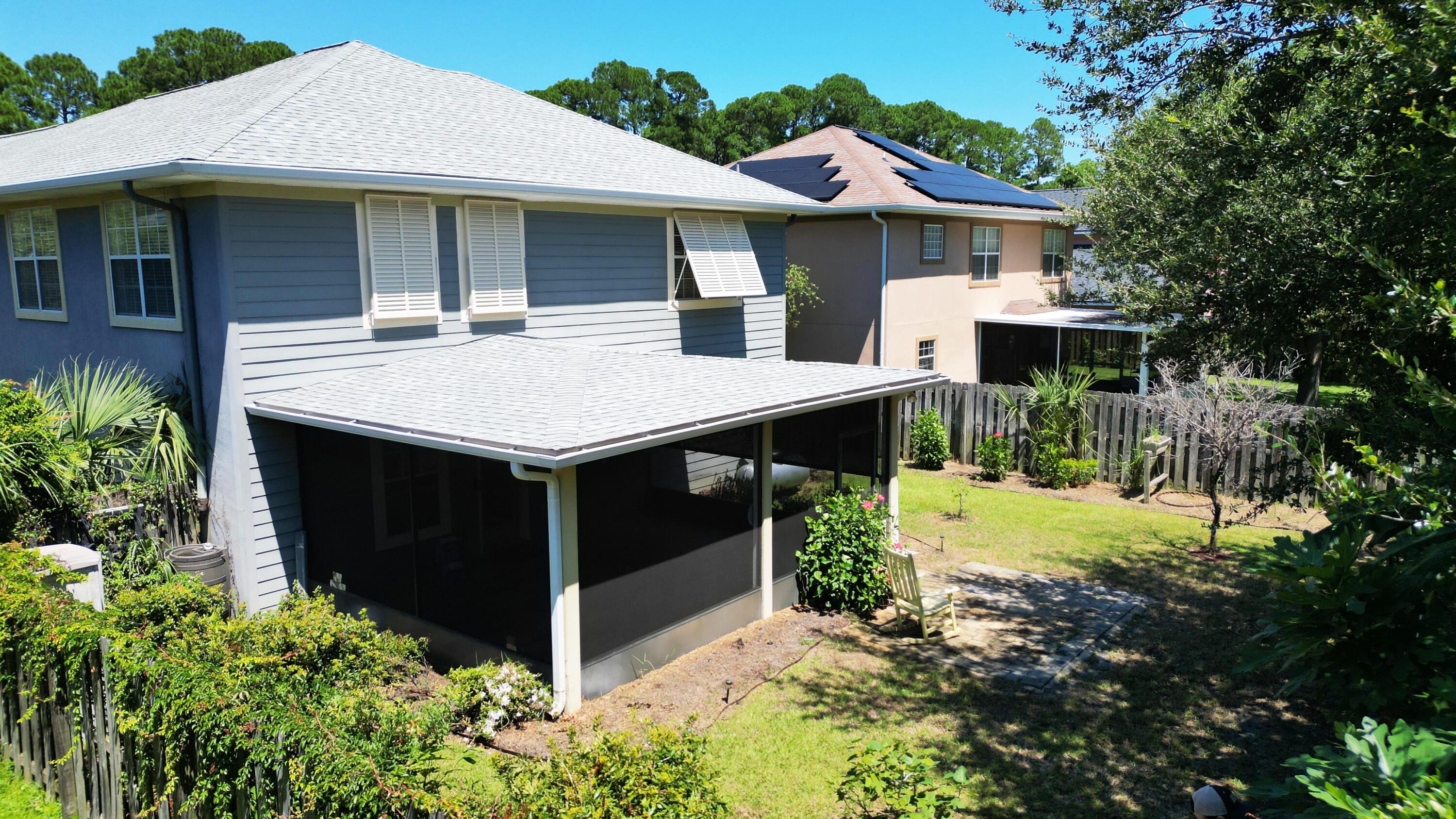 Welcome to Driftwood Estates, one of the area's most sought-after communities known for its charm, mature landscaping, and strong sense of neighborhood pride. As you arrive, you'll notice the widened driveway with elegant paver accents and manicured landscaping that sets the tone for this beautifully updated two-story stucco home. Featuring 4 bedrooms and 3 bathrooms, the home has been freshly repainted inside and out, and a brand-new roof was installed in June 2025. Inside, an open-concept layout welcomes you with abundant natural light pouring in through multi-level windows, connecting the spacious living and dining areas. The updated kitchen features quartz countertops, a tile backsplash, stainless steel appliances, and a gas stove powered by an above-ground tank. A Culligan water softener and a walk-in laundry room add to the convenience. The fourth bedroom and a full bath are located on the main floor, ideal for guests or a home office. A stair chair provides access to the second floor, where one bathroom includes a stand-up tub for those with limited mobility. Two bedrooms and a full bath are positioned at one end of the upstairs, while the spacious master suite offers a renovated bath with a glass shower, private water closet, and a hidden second washer/dryer. Step out back to a fully screened-in porch with ceramic tile, lighting, and an automatic screen. The beautifully landscaped yard is a gardener's dream, filled with lush greenery and vibrant blooms.