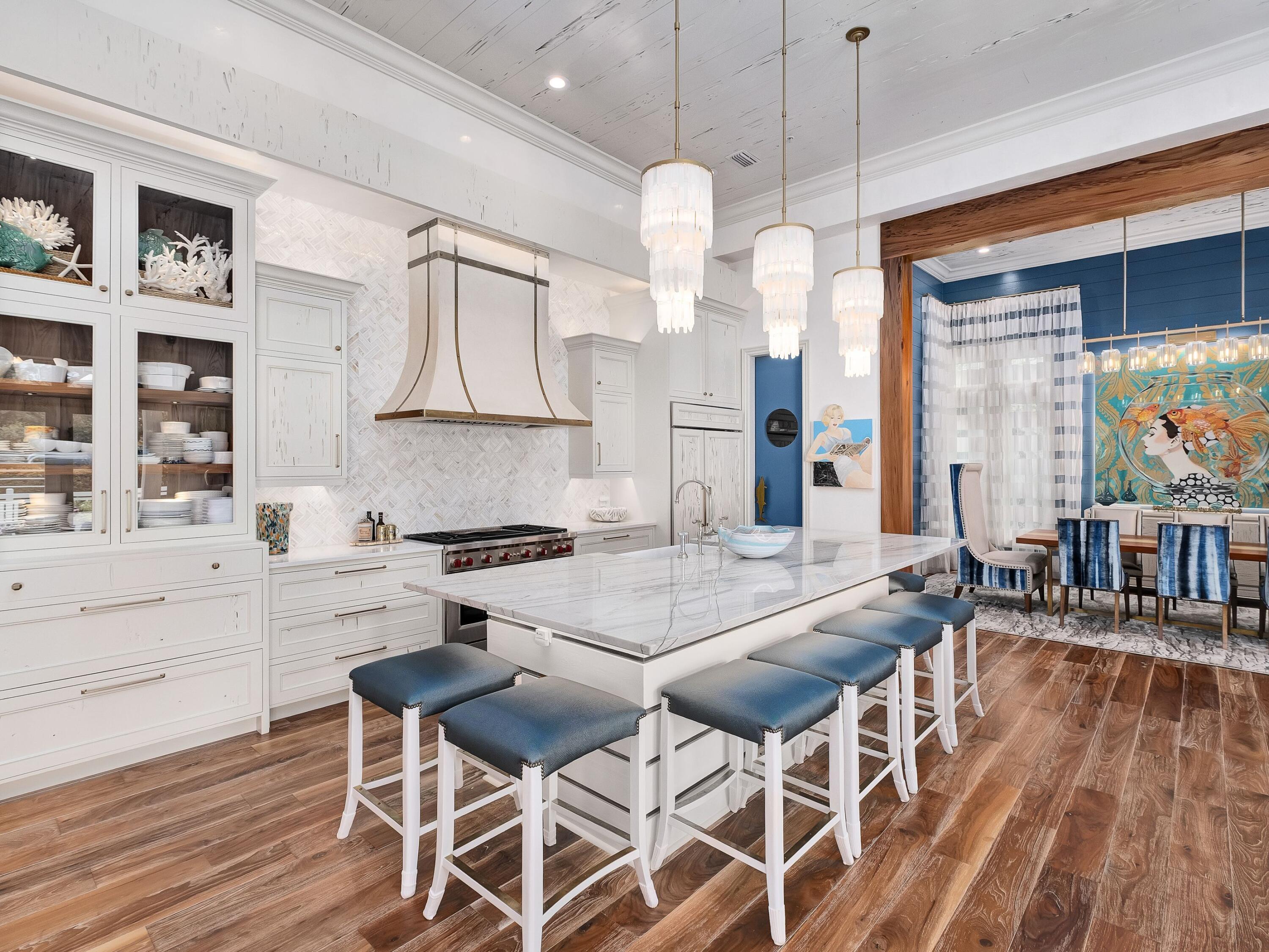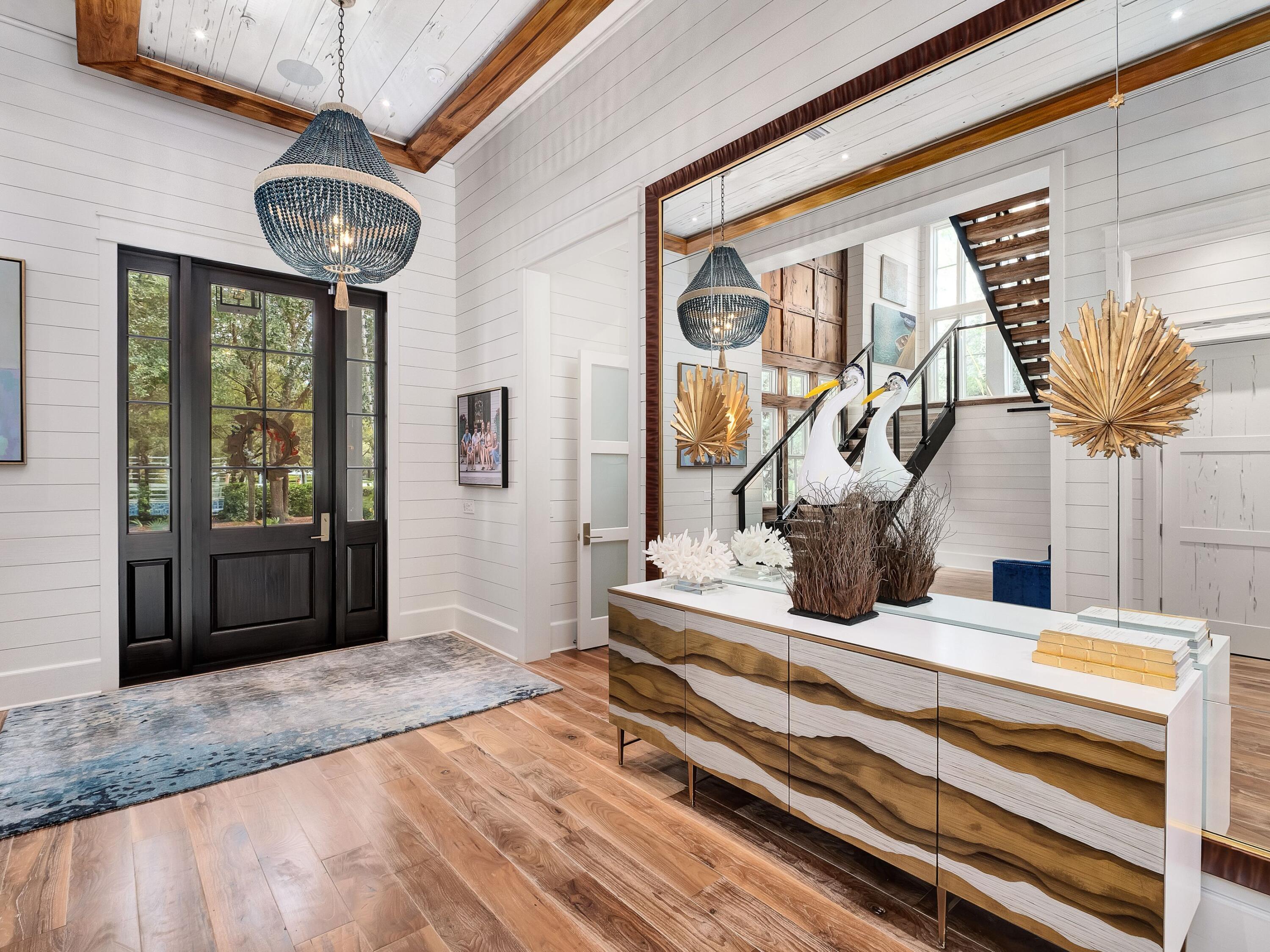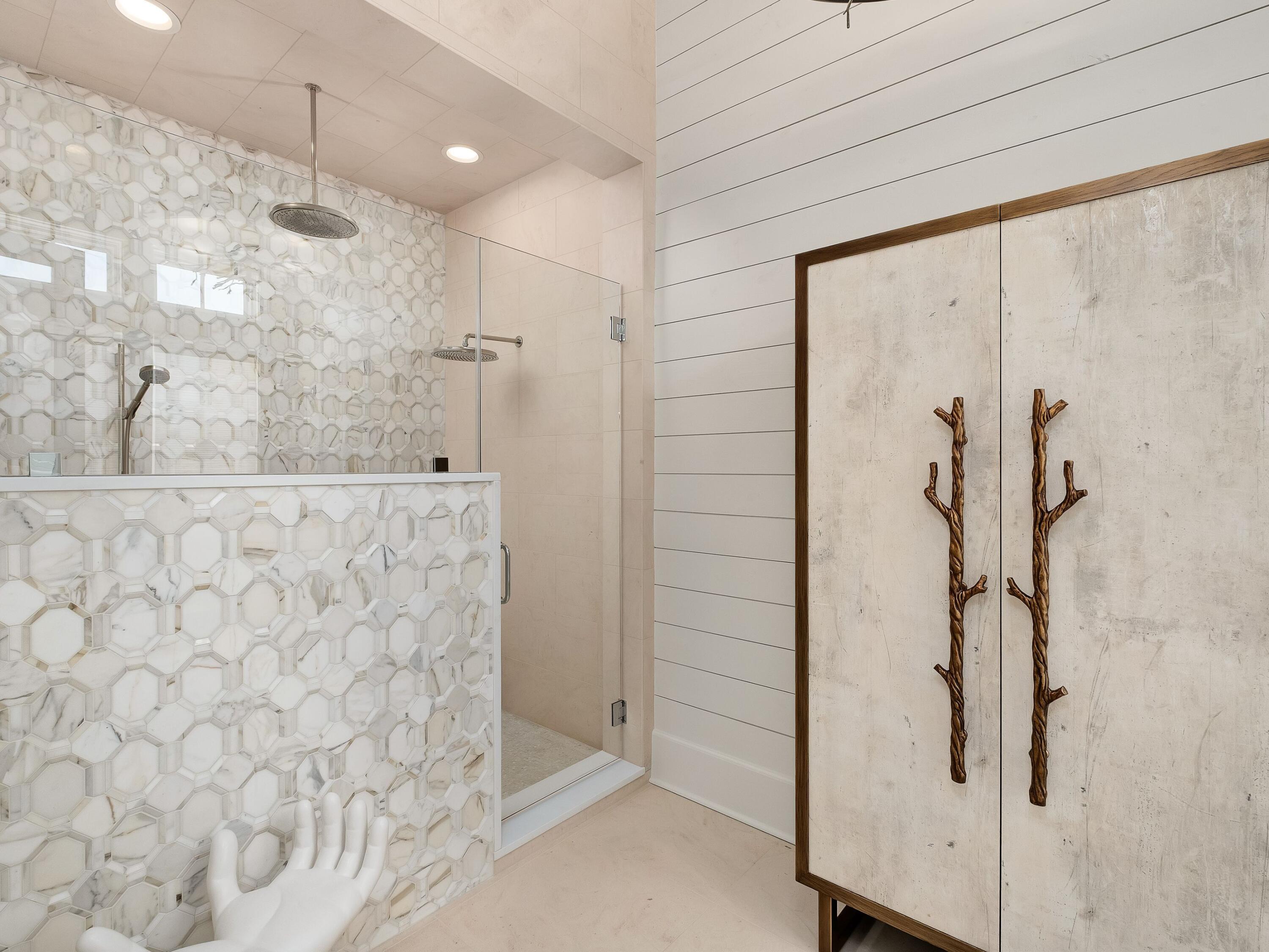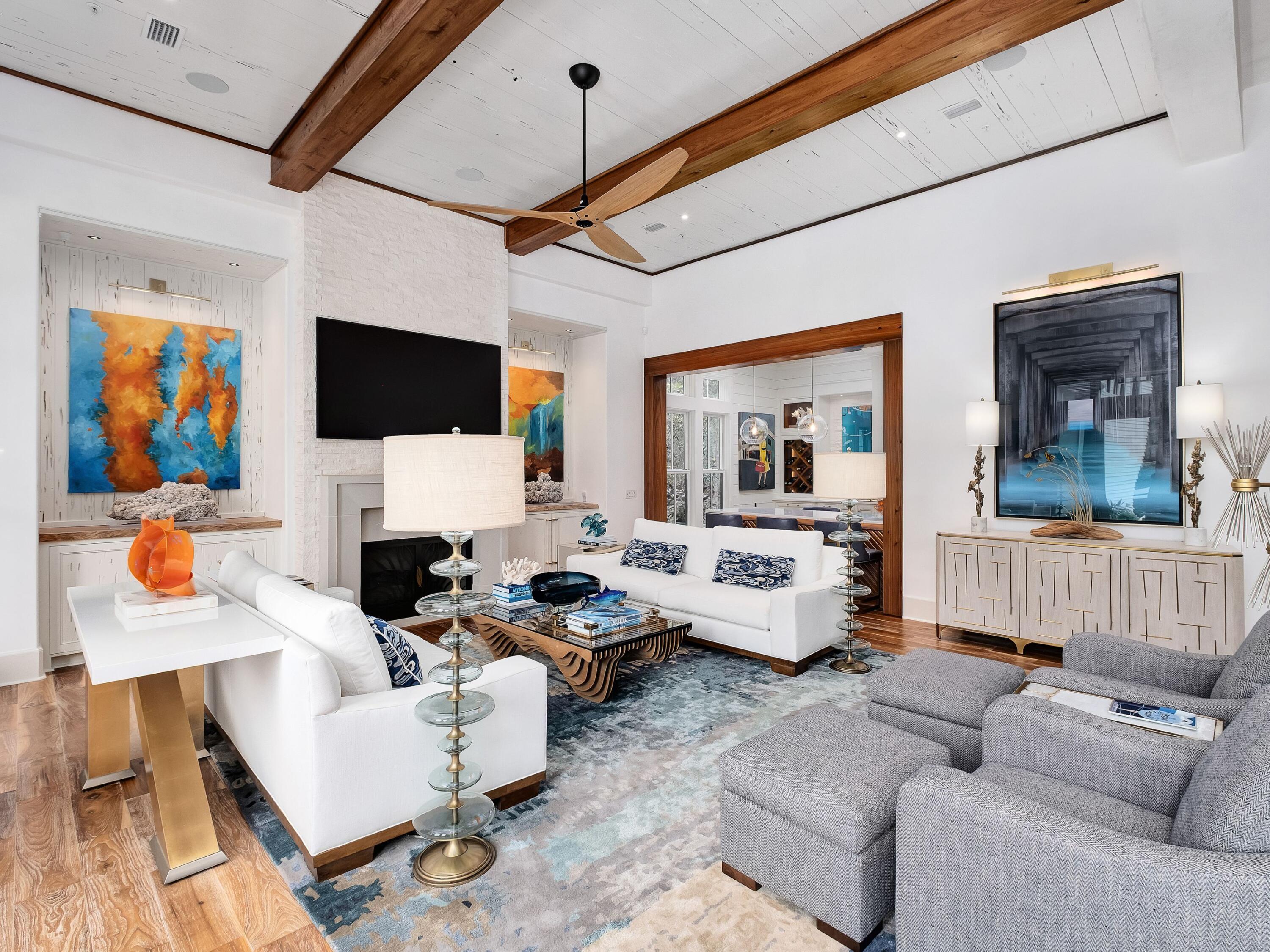 Positioned on one of the largest - if not the largest - homesites in all of WaterColor and thoughtfully brought to life through a collaboration between renowned architect Geoff Chick, the homeowner, and Cara Richardson of award-winning Lovelace Interiors, 191 Sand Hill Circle is a residence defined by intentional elegance, architectural integrity, and elevated livability. Framed by a peaceful pocket park in front and the preserved beauty of the state forest behind, this 8,314-square-foot estate stands as one of the community's true masterpieces. Every detail of this seven-bedroom, seven-and-a-half-bath home has been artfully curated, from Venetian plaster walls to a whole-home Control4 system that manages lighting, sound, climate, and security. Custom artisan lighting, curated furnishings, and dramatic accents, such as original works by award-winning artist Mary Hong, create a home that is both visually striking and deeply livable. Each bedroom features an ensuite bath with dual vanities, custom tile from Q-Tile, and high-end, bespoke bedding.