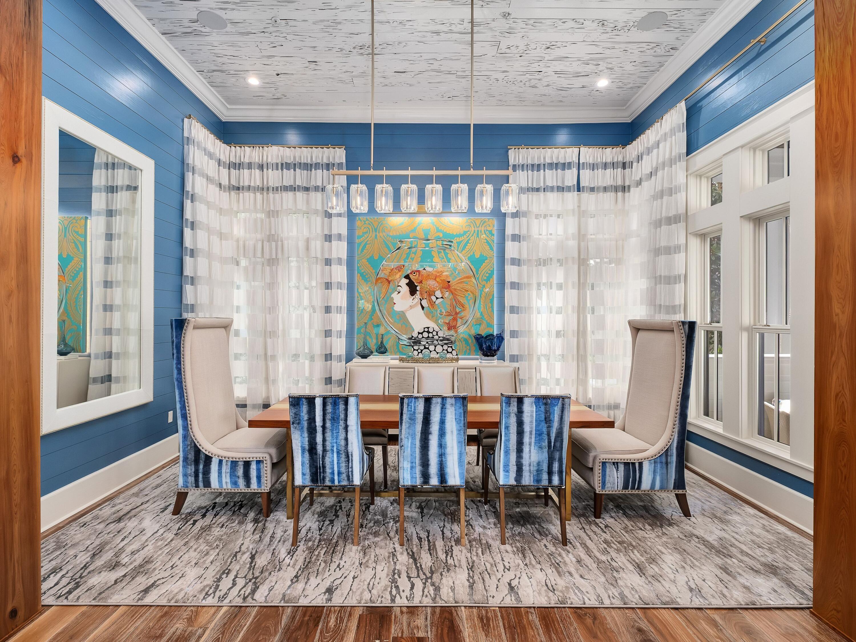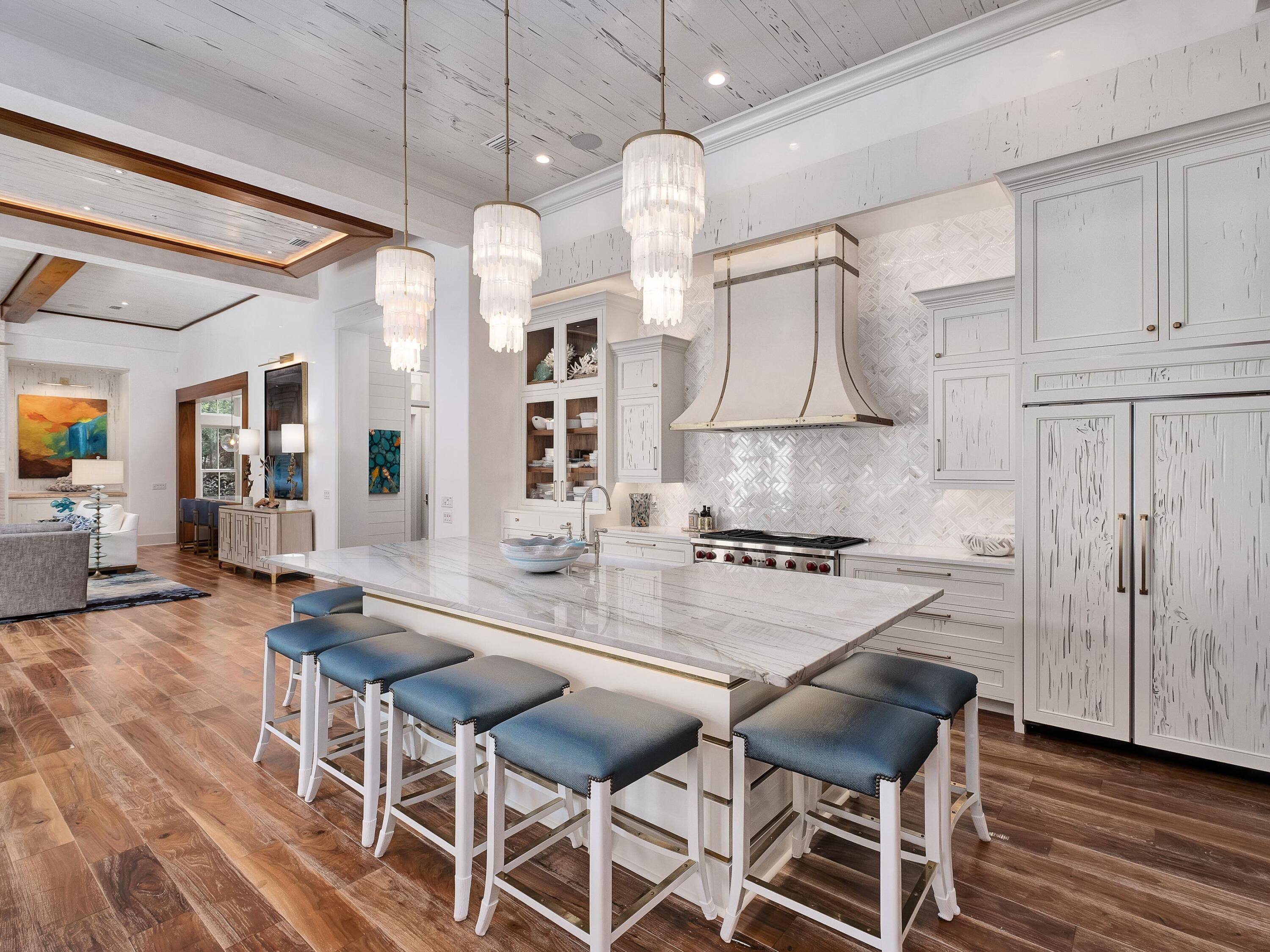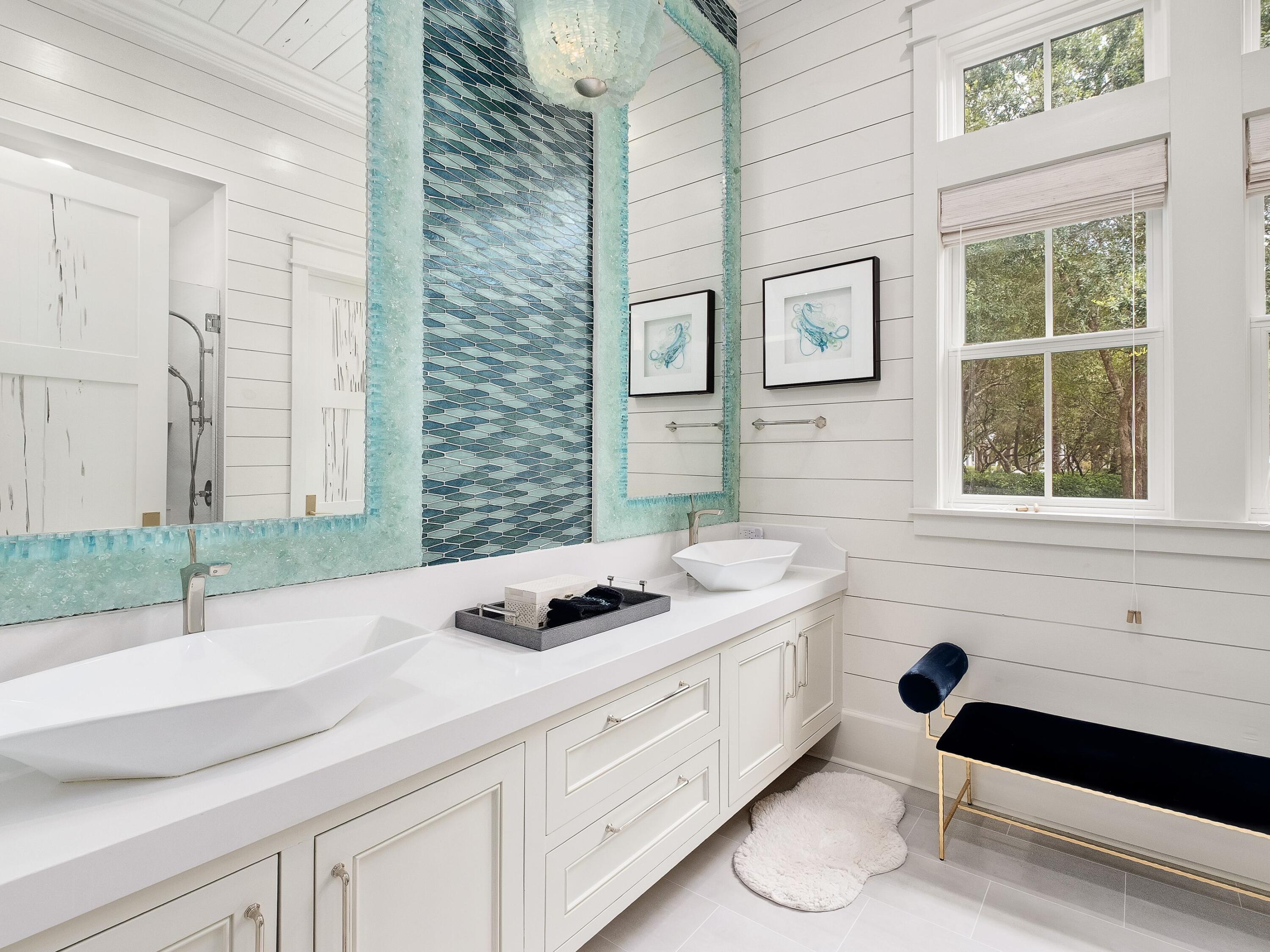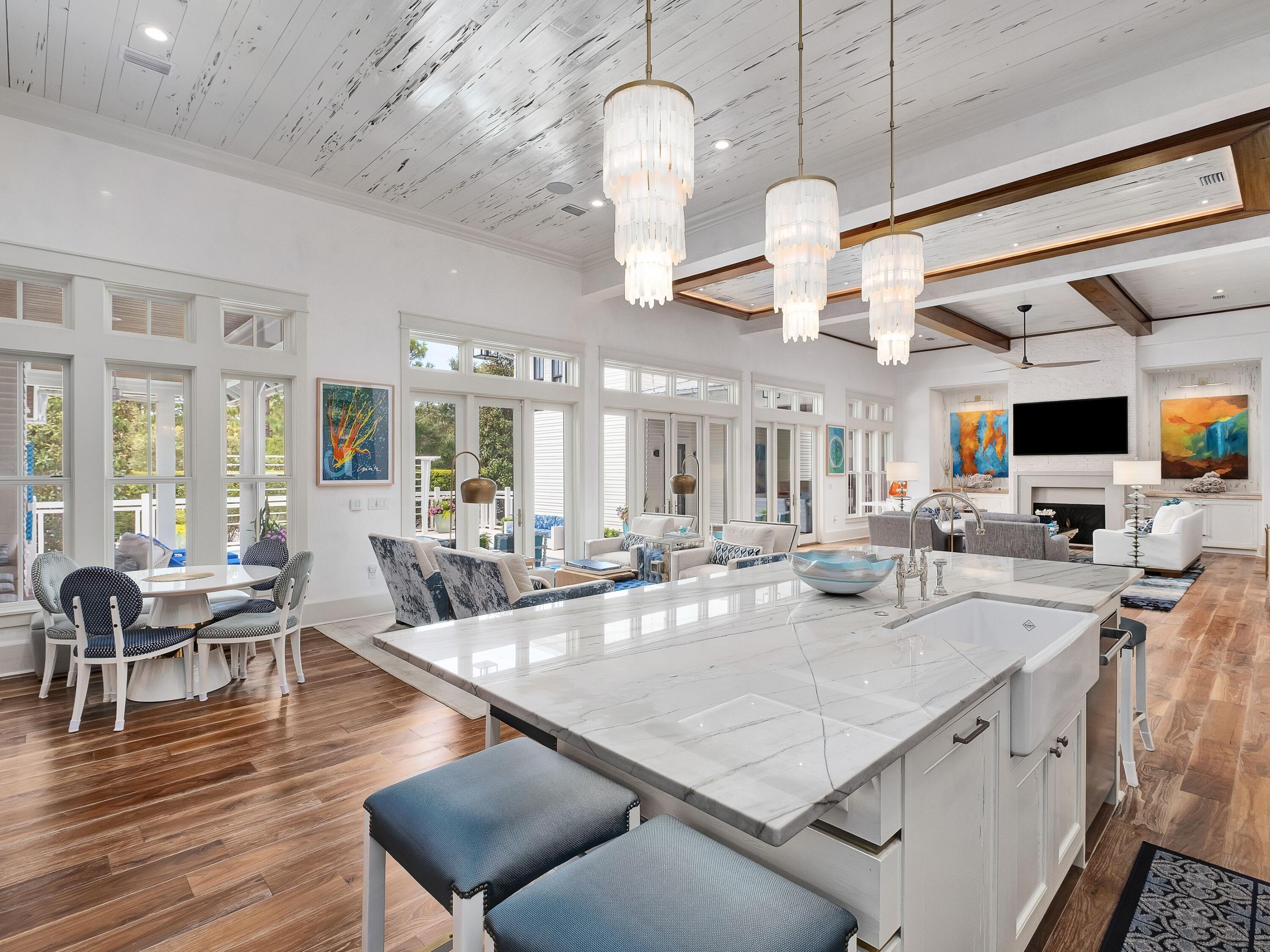 Positioned on one of the largest - if not the largest - homesites in all of WaterColor and thoughtfully brought to life through a collaboration between renowned architect Geoff Chick, the homeowner, and Cara Richardson of award-winning Lovelace Interiors, 191 Sand Hill Circle is a residence defined by intentional elegance, architectural integrity, and elevated livability. Framed by a peaceful pocket park in front and the preserved beauty of the state forest behind, this 8,314-square-foot estate stands as one of the community's true masterpieces. Every detail of this seven-bedroom, seven-and-a-half-bath home has been artfully curated, from Venetian plaster walls to a whole-home Control4 system that manages lighting, sound, climate, and security. Custom artisan lighting, curated furnishings, and dramatic accents, such as original works by award-winning artist Mary Hong, create a home that is both visually striking and deeply livable. Each bedroom features an ensuite bath with dual vanities, custom tile from Q-Tile, and high-end, bespoke bedding.