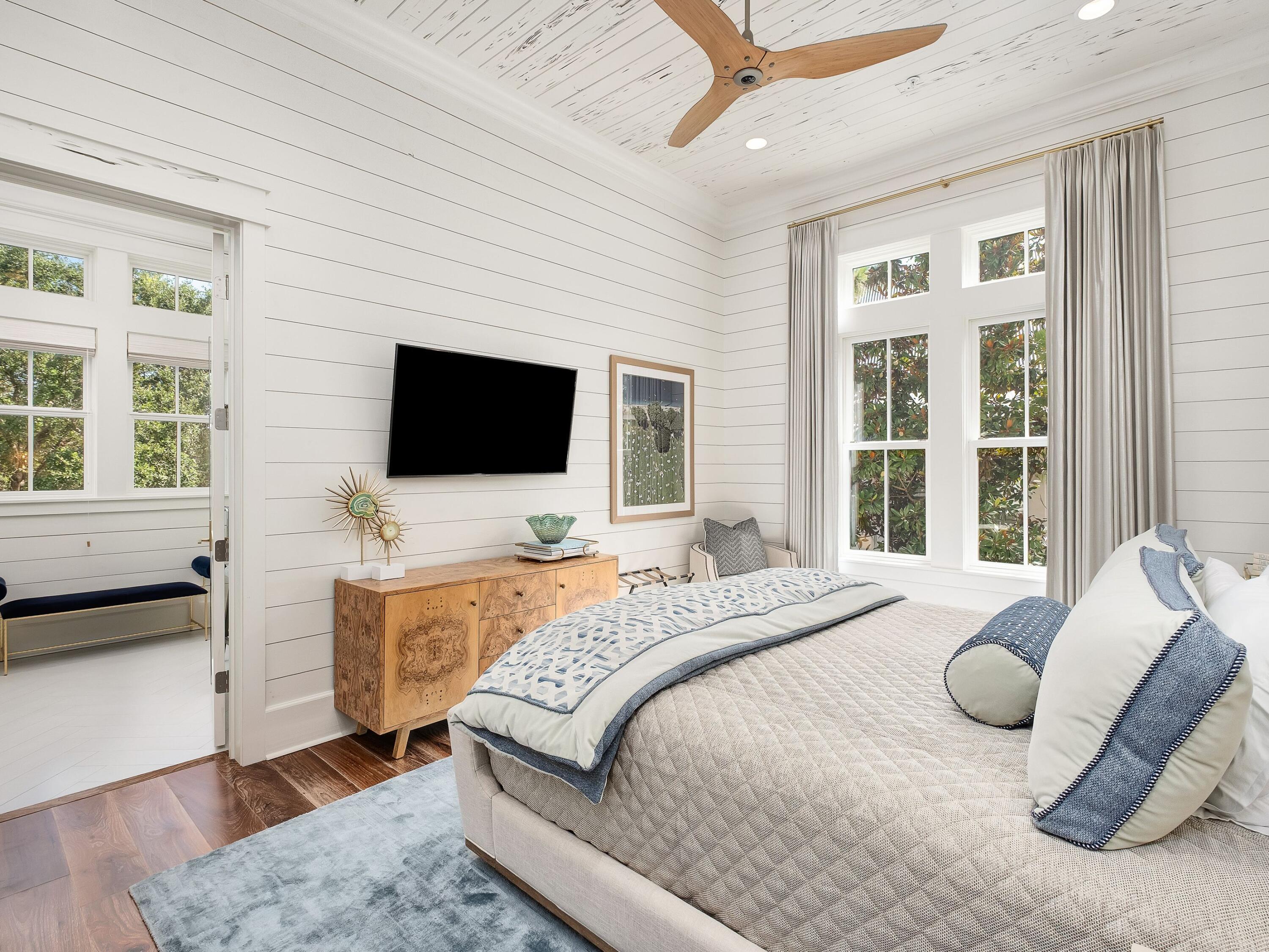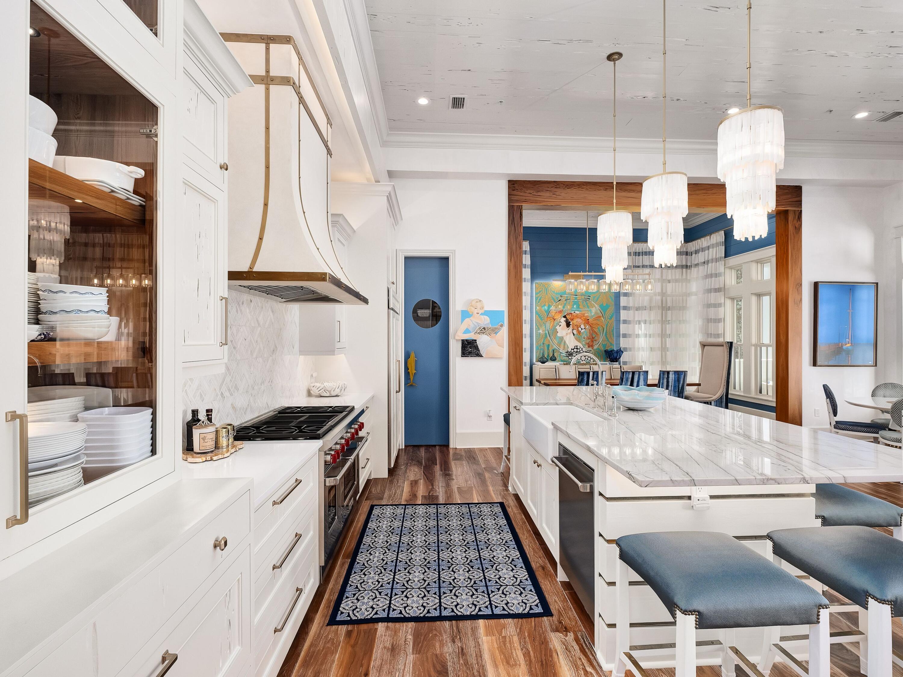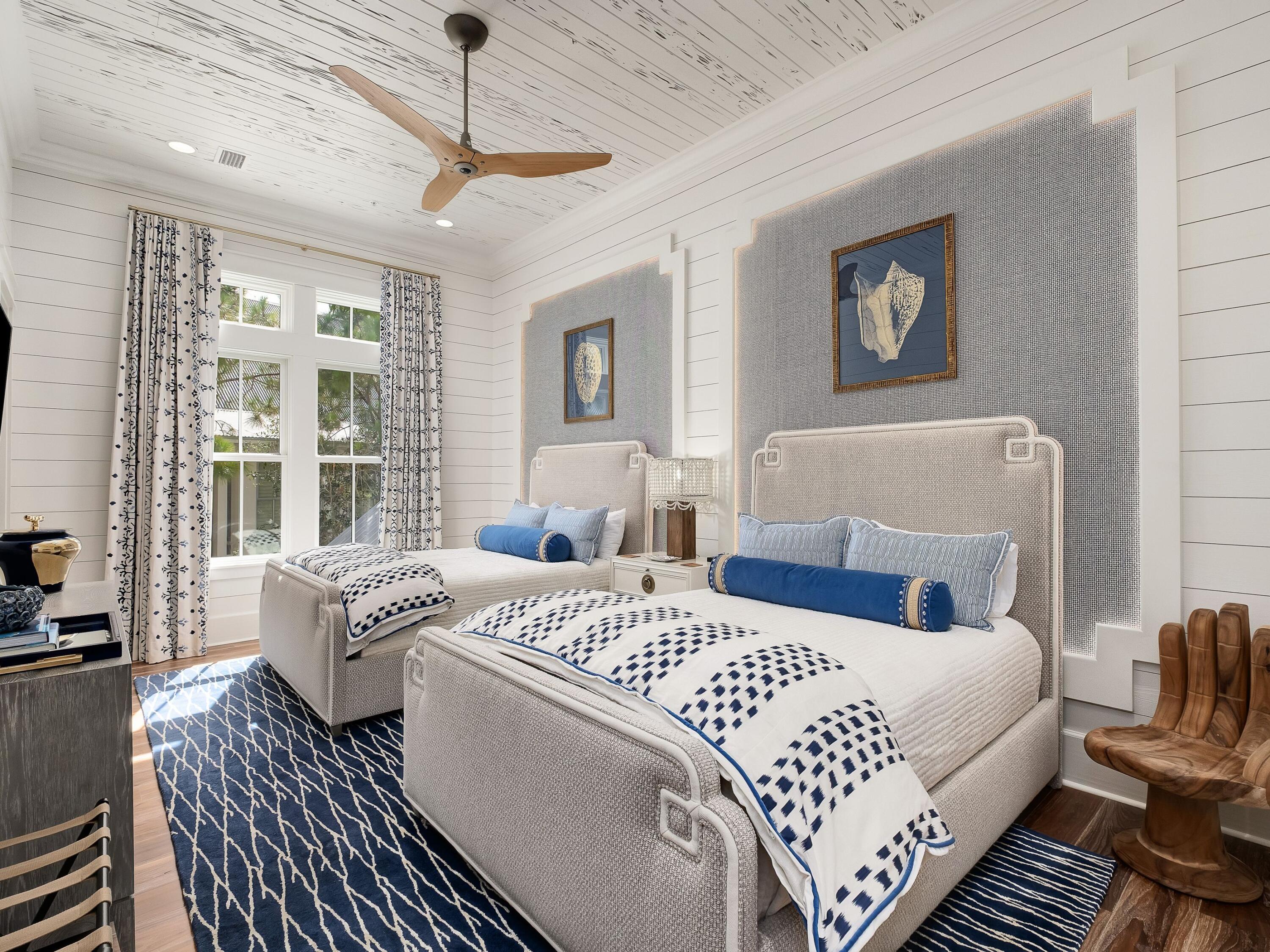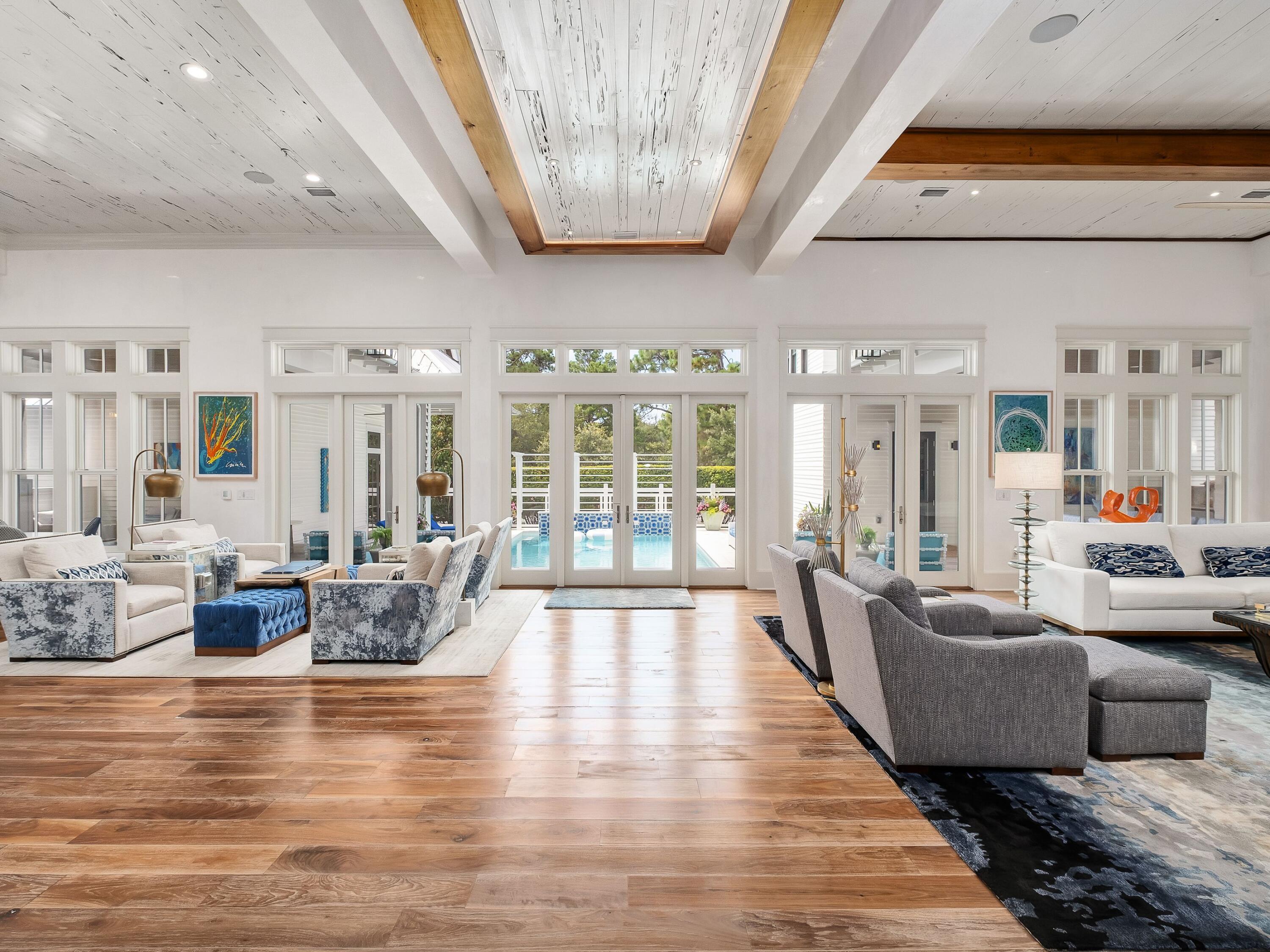 Positioned on one of the largest - if not the largest - homesites in all of WaterColor and thoughtfully brought to life through a collaboration between renowned architect Geoff Chick, the homeowner, and Cara Richardson of award-winning Lovelace Interiors, 191 Sand Hill Circle is a residence defined by intentional elegance, architectural integrity, and elevated livability. Framed by a peaceful pocket park in front and the preserved beauty of the state forest behind, this 8,314-square-foot estate stands as one of the community's true masterpieces. Every detail of this seven-bedroom, seven-and-a-half-bath home has been artfully curated, from Venetian plaster walls to a whole-home Control4 system that manages lighting, sound, climate, and security. Custom artisan lighting, curated furnishings, and dramatic accents, such as original works by award-winning artist Mary Hong, create a home that is both visually striking and deeply livable. Each bedroom features an ensuite bath with dual vanities, custom tile from Q-Tile, and high-end, bespoke bedding.
