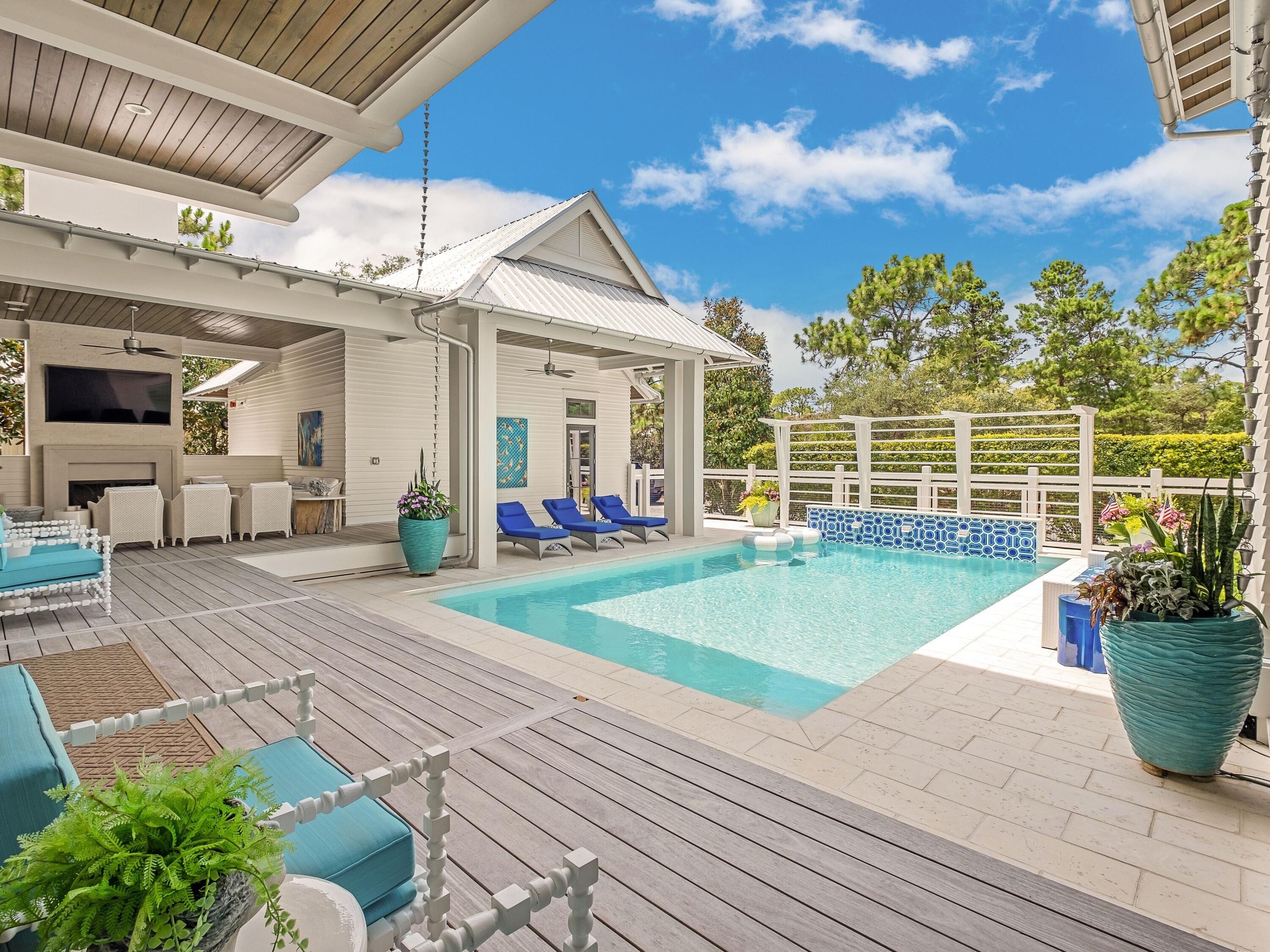 Head south on County Hwy 395 toward 30A. Turn right on West Lake Forest Drive; at the Stop sign, turn right to stay on West Lake Forest Drive. Turn right onto Sand Hill Circle and the home will be on the right across from the WaterColor Sandhill Pool.