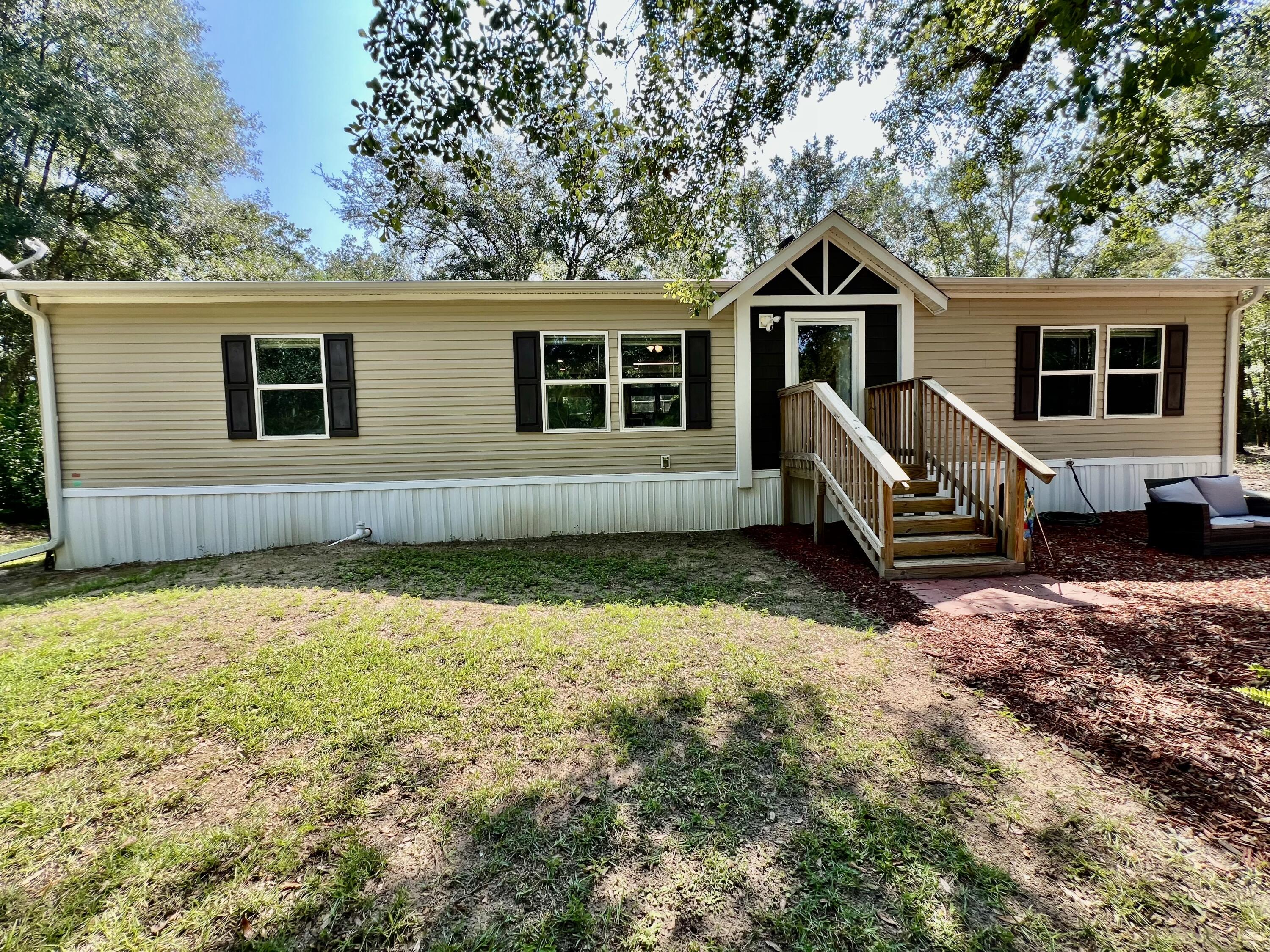 Tucked away on just over 4 secluded acres, this beautifully maintained 3-bedroom, 2-bath home offers peace, privacy, and plenty of extras. A circle driveway welcomes you to the property, which features lush landscaping, a covered carport, RV parking, and multiple outbuildings--including a yard building with power and water. Inside, you'll find a spacious, open layout with vinyl flooring throughout. The kitchen is a standout with a large island--perfect for cooking or serving guests. All bedrooms are generously sized, and the primary suite feels like your own private oasis with a double vanity, large soaking tub, and separate shower. This move-in-ready home is like new and waiting for you to enjoy the quiet life with space to spread out.