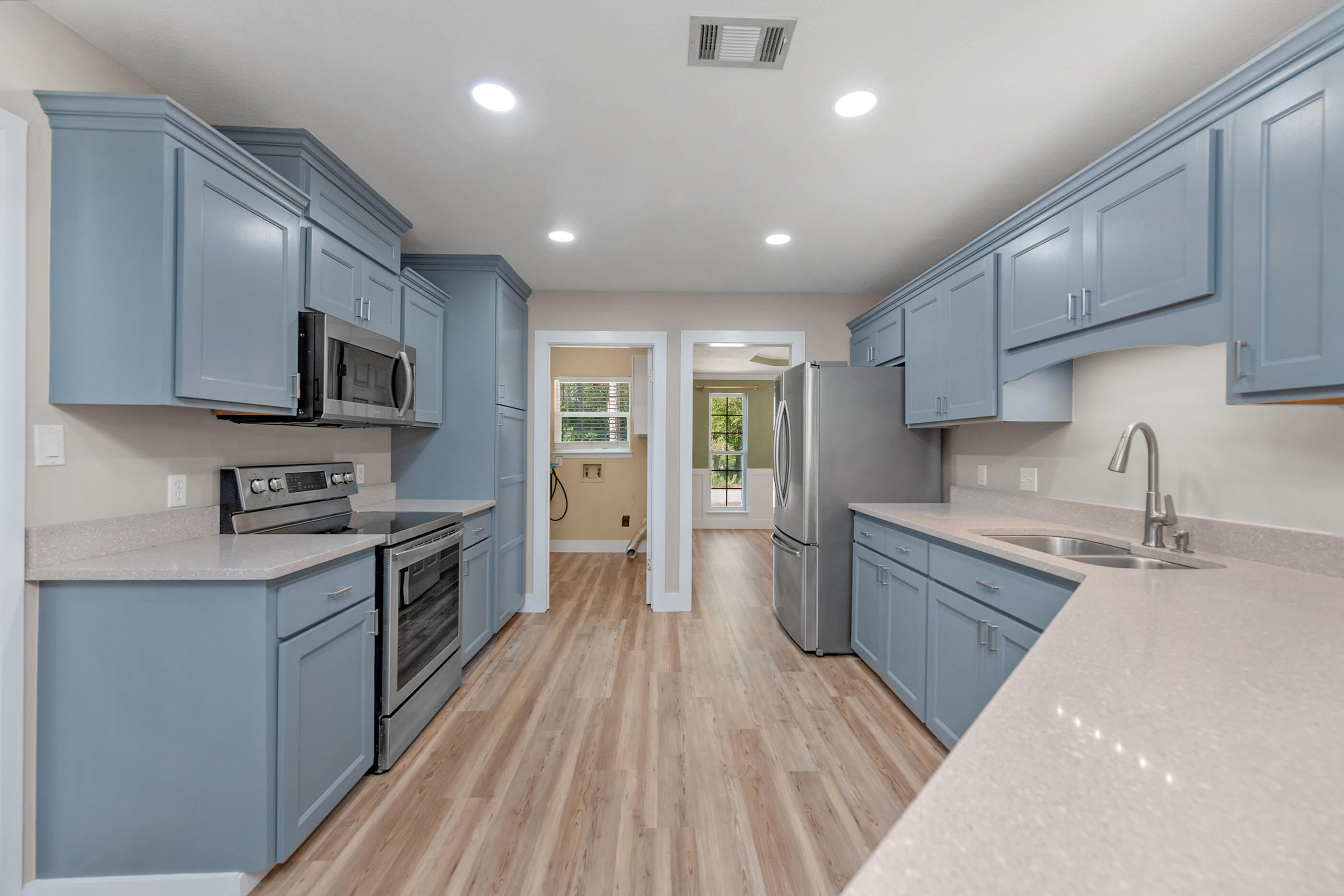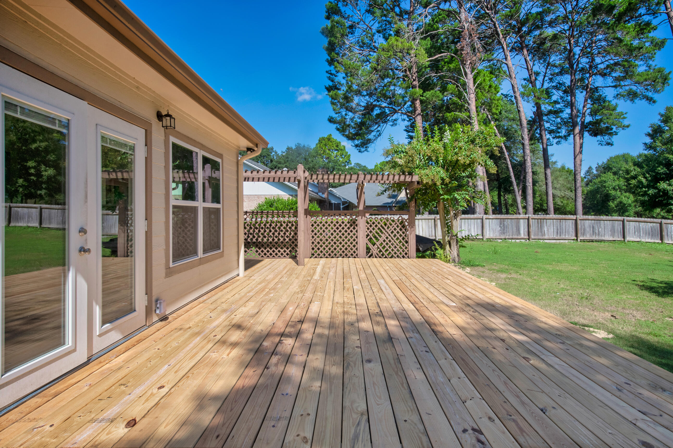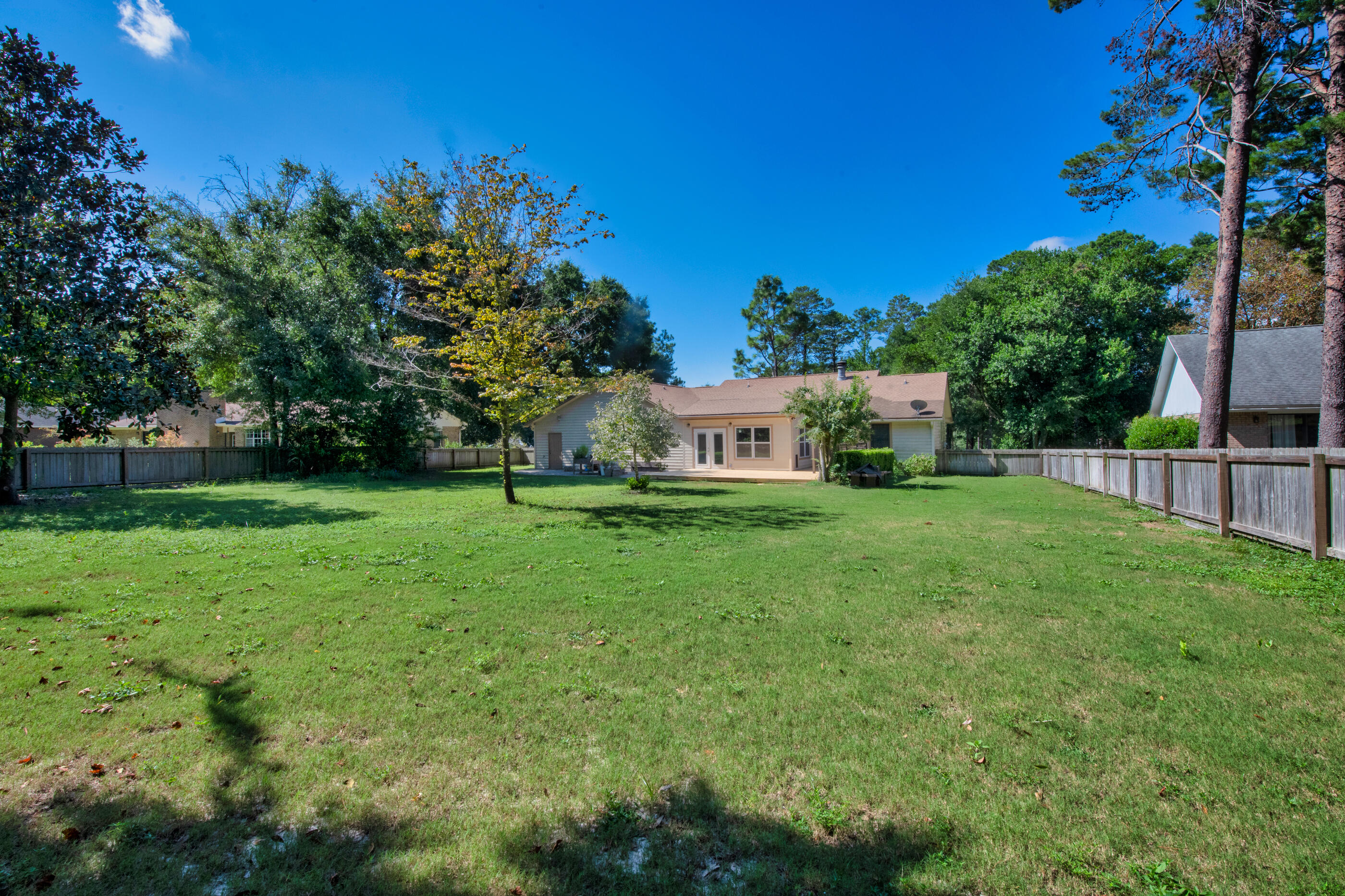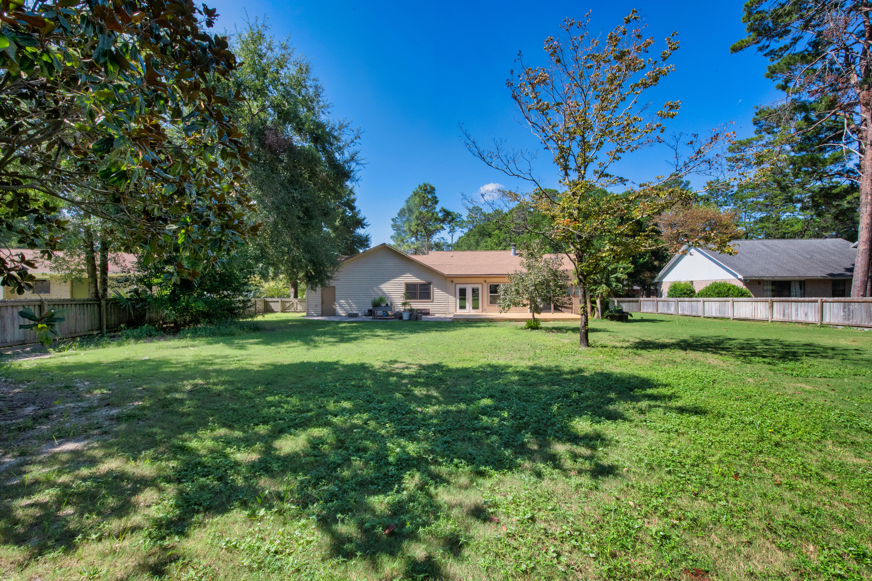 Enjoy the perfect blend of comfort, style, and Florida charm in this beautifully updated three bedroom, two and a half bath home overlooking the 13th hole of Rocky Bayou Country Club.Inside, you'll find an inviting open living area with custom built-ins, a coffee bar, and a cozy wood burning fireplace that creates the perfect atmosphere for gatherings or quiet evenings at home. A formal dining room and a versatile flex space offer endless possibilities for work, hobbies, or entertaining.The kitchen features new appliances, modern finishes, and recessed lighting, while the nearby laundry room adds everyday convenience. Luxury vinyl plank flooring flows through the main living spaces and brand new carpet adds comfort in the bedrooms. The spacious primary suite includes a walk-in closet, double vanity, jetted tub, and tiled shower. Two guest bedrooms share a Jack and Jill bathroom with beautiful tile flooring.