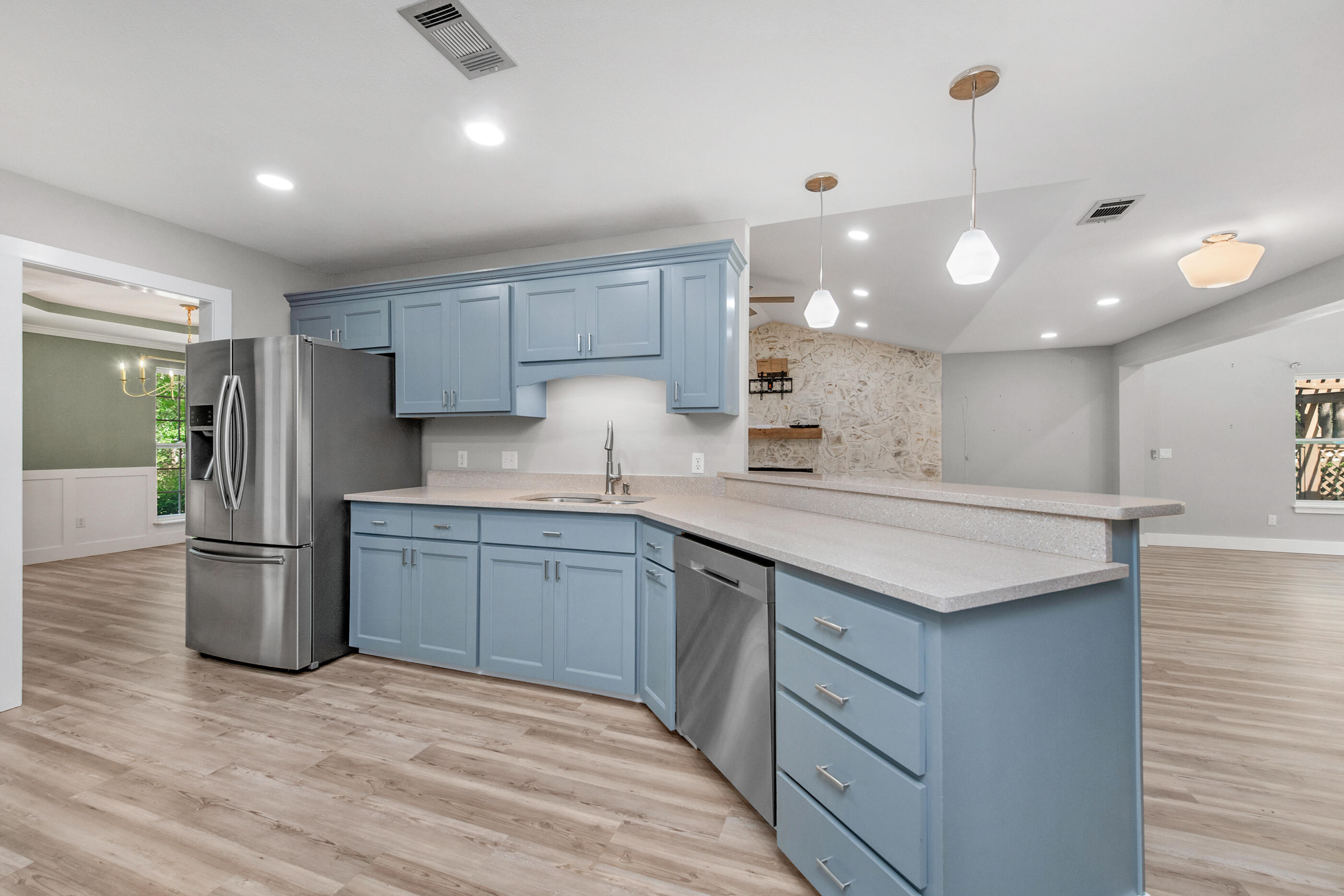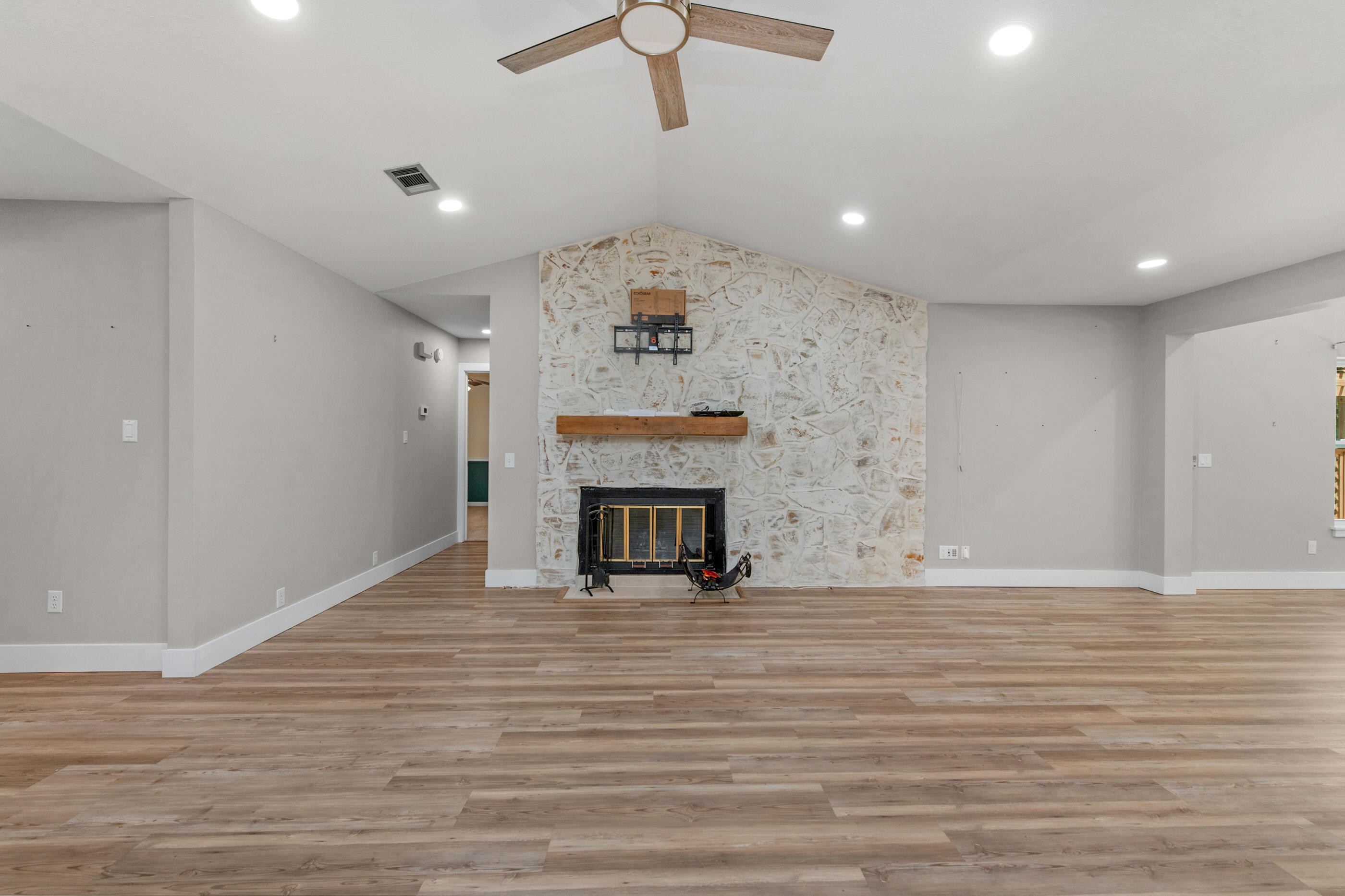 | INTERIOR | Breakfast Bar,Fireplace,Floor Tile,Floor Vinyl,Lighting Recessed,Newly Painted,Renovated,Split Bedroom |
