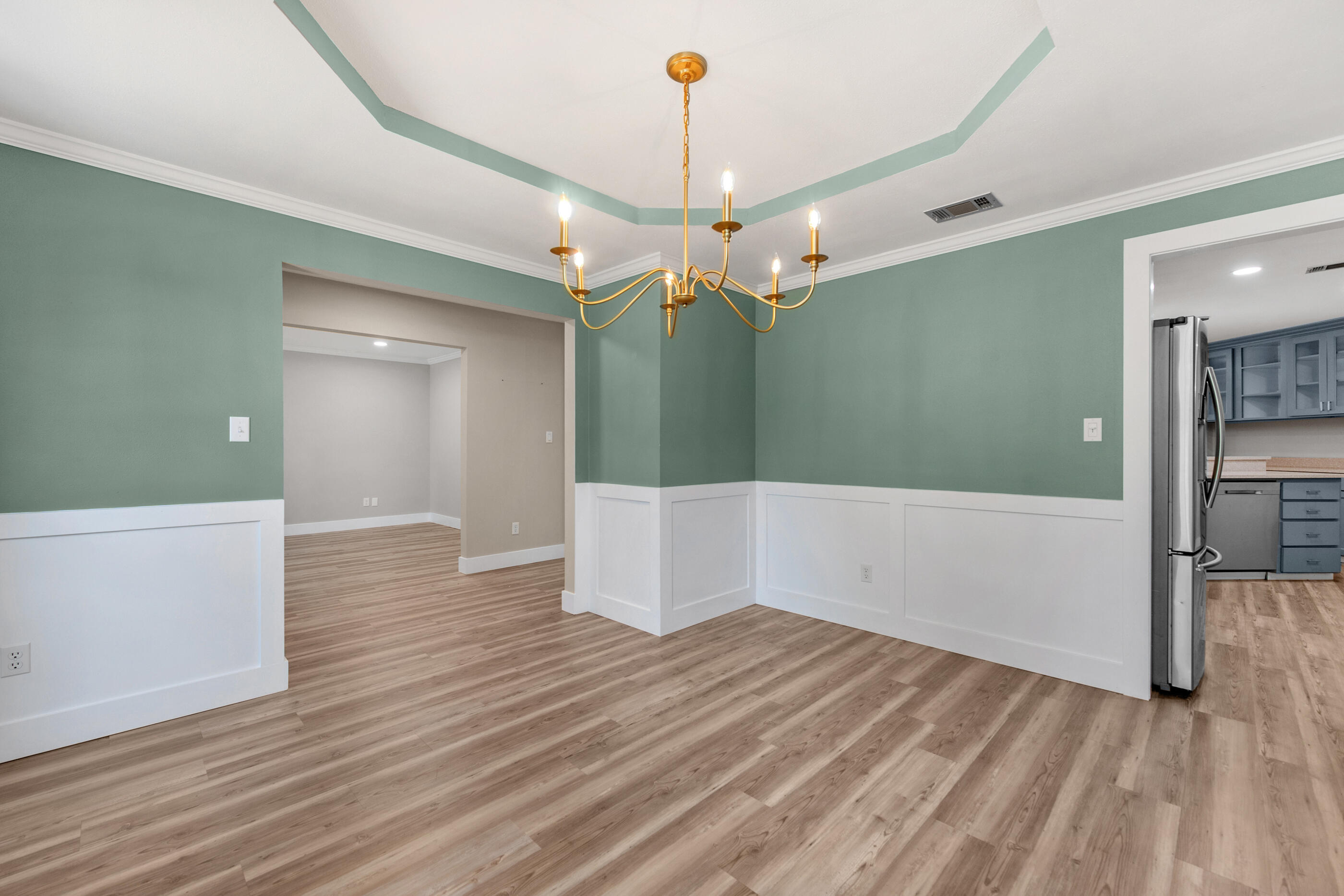 Step outside to a redesigned back deck that overlooks the large fenced backyard and scenic fairway views. It is the perfect spot to enjoy your morning coffee or host an evening barbecue.