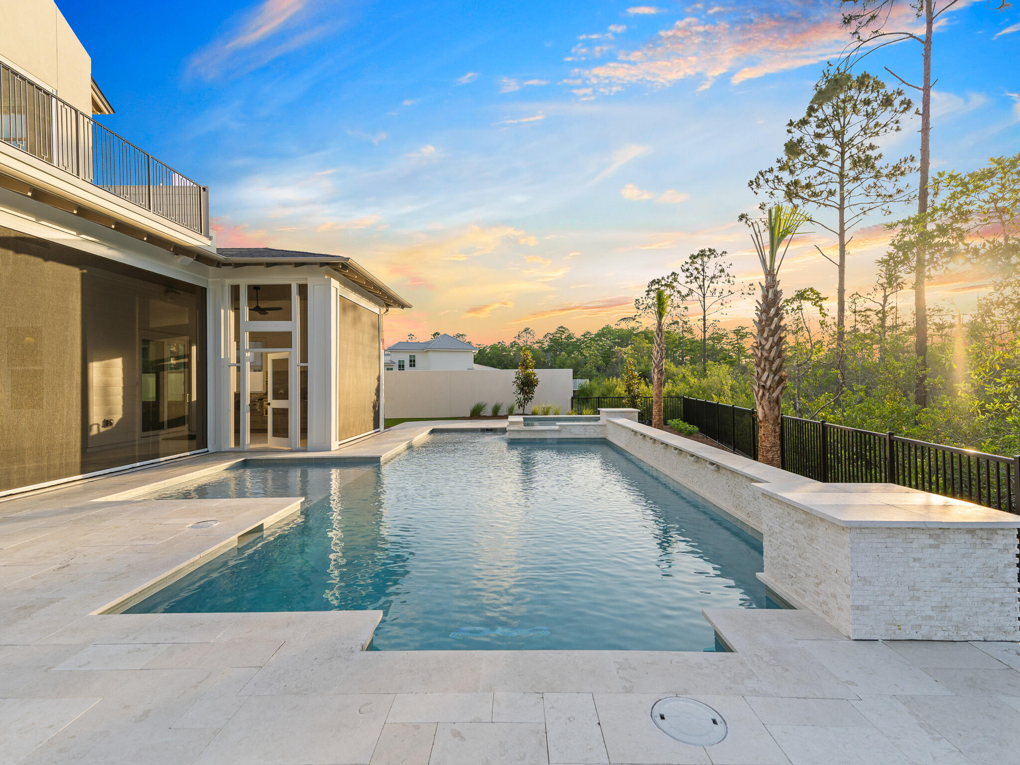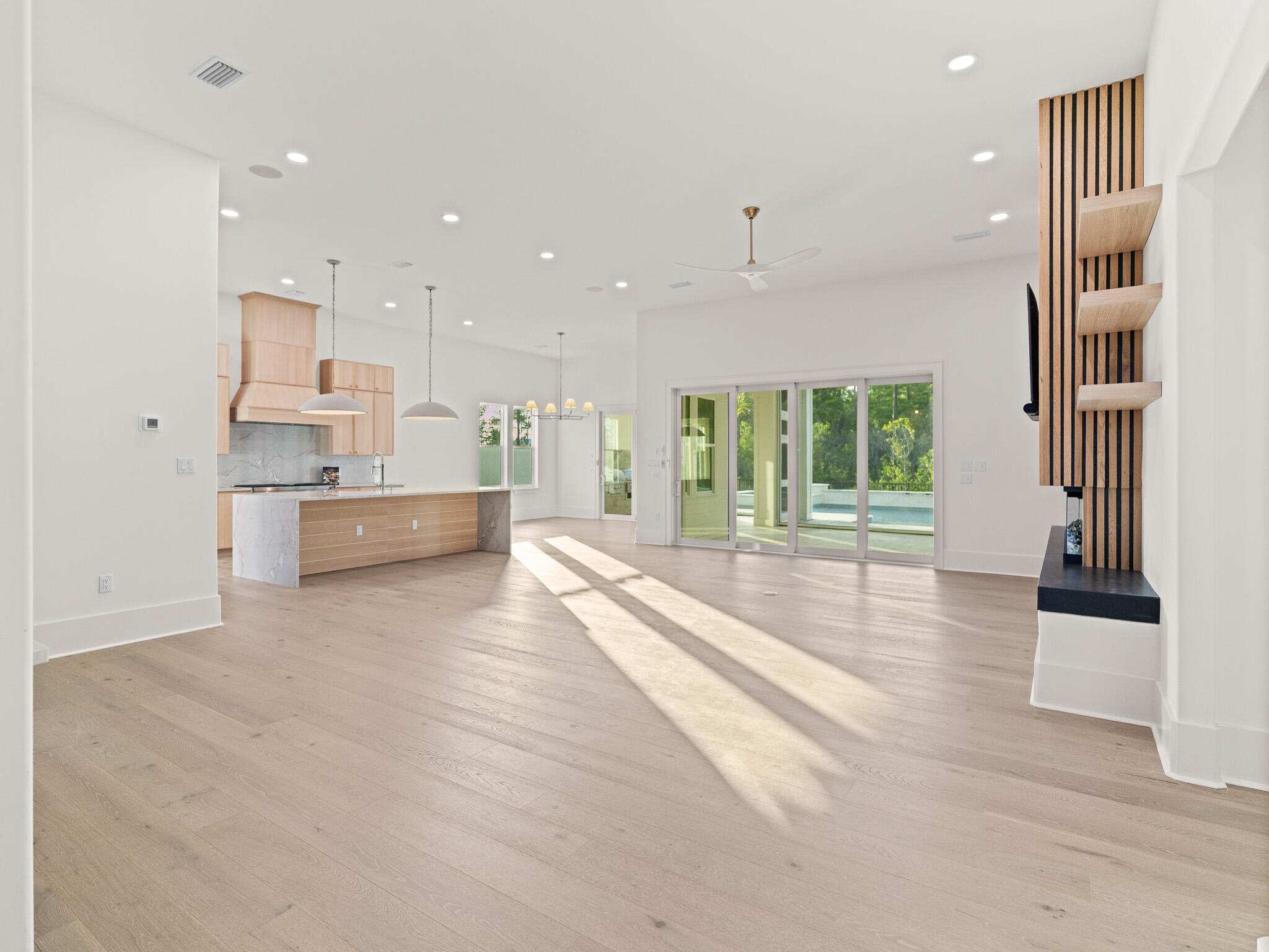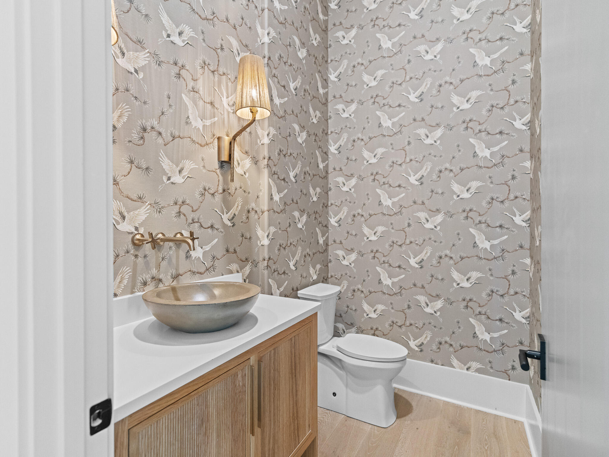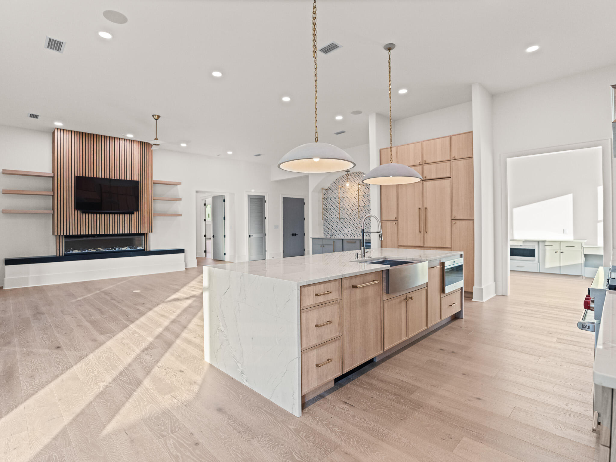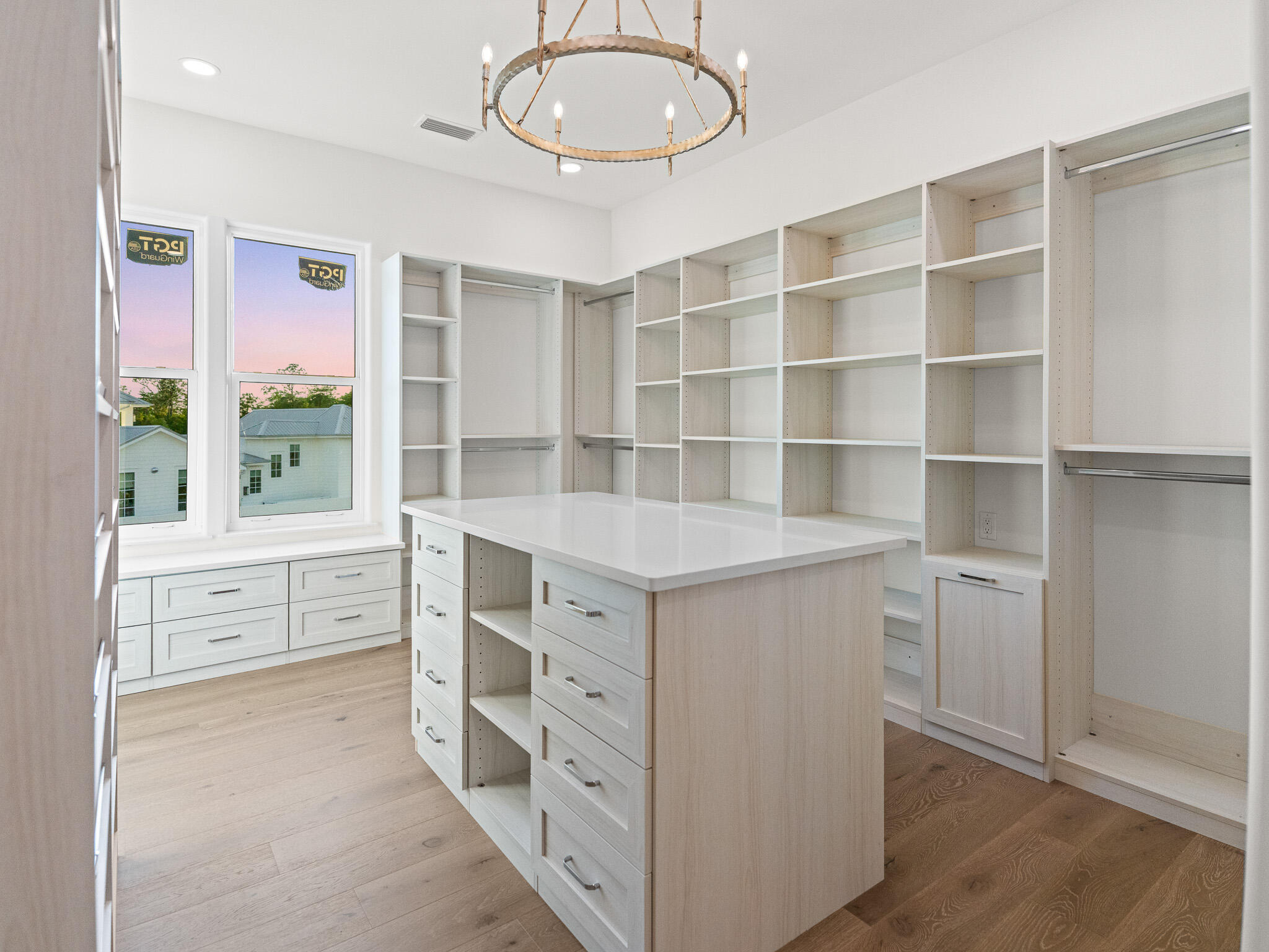 Designed by renowned architect John Williams, this elegant new construction nestled behind the private gates of Camp Creek features impressive craftsmanship with a tasteful coastal flair throughout. A chef's dream, the kitchen encompasses custom milled cabinetry, an oversized island, quartz countertops, and a luxury appliance package with gas range. The expansive living and dining areas are perfectly positioned off the kitchen with direct access to the covered porch with outdoor kitchen effectively blurring the lines between indoors and out while creating a true continuation of living and entertaining space.