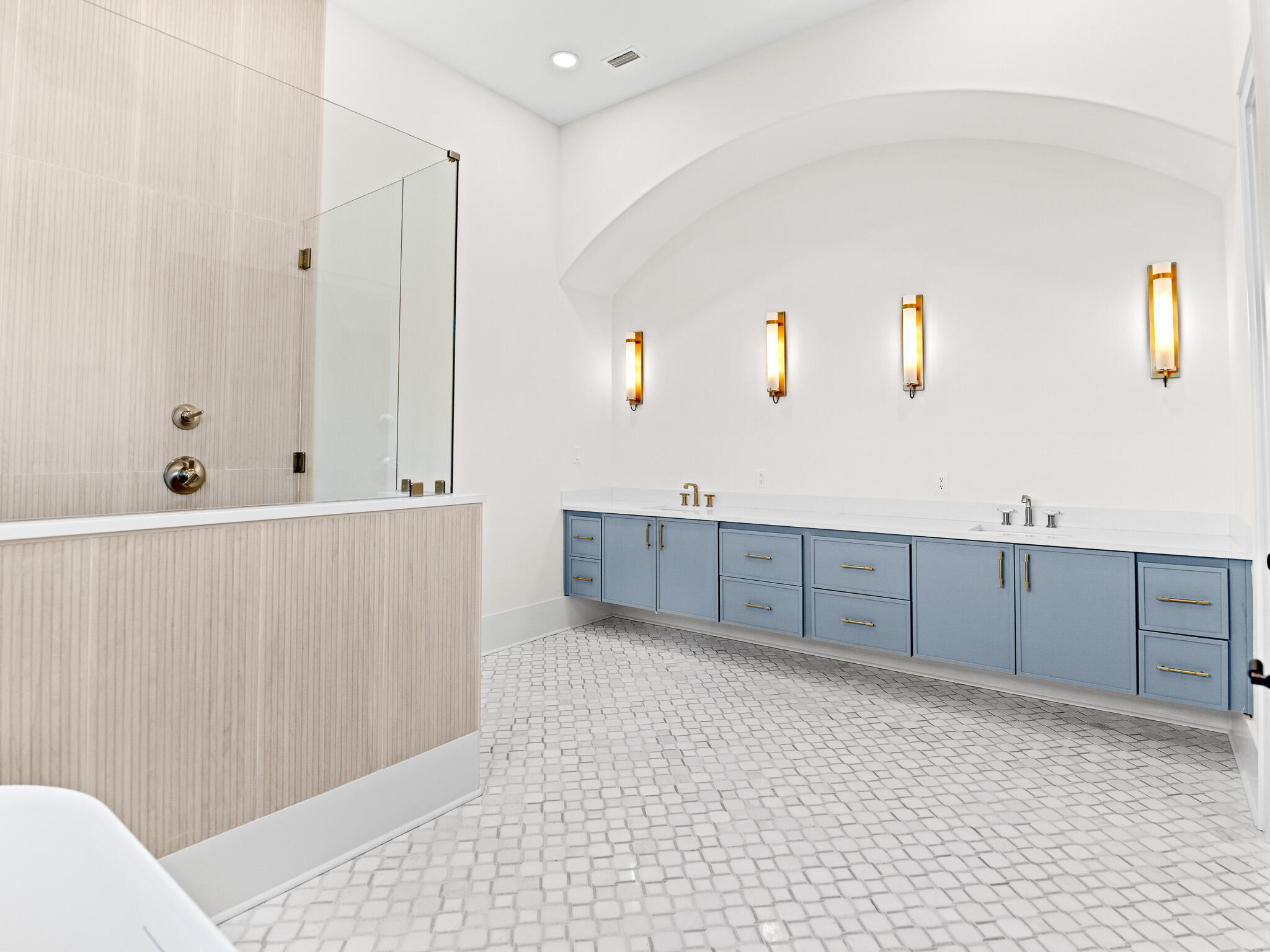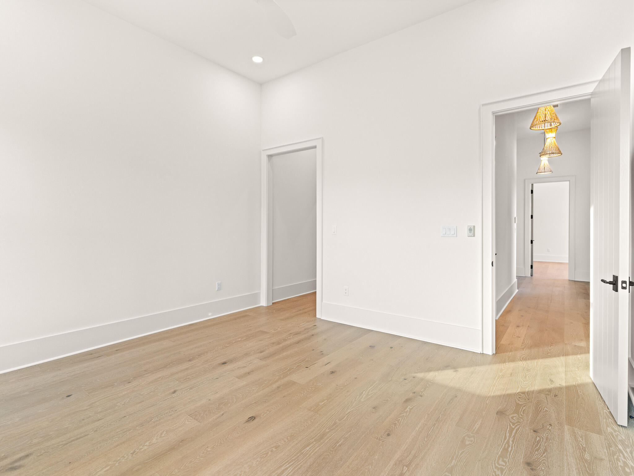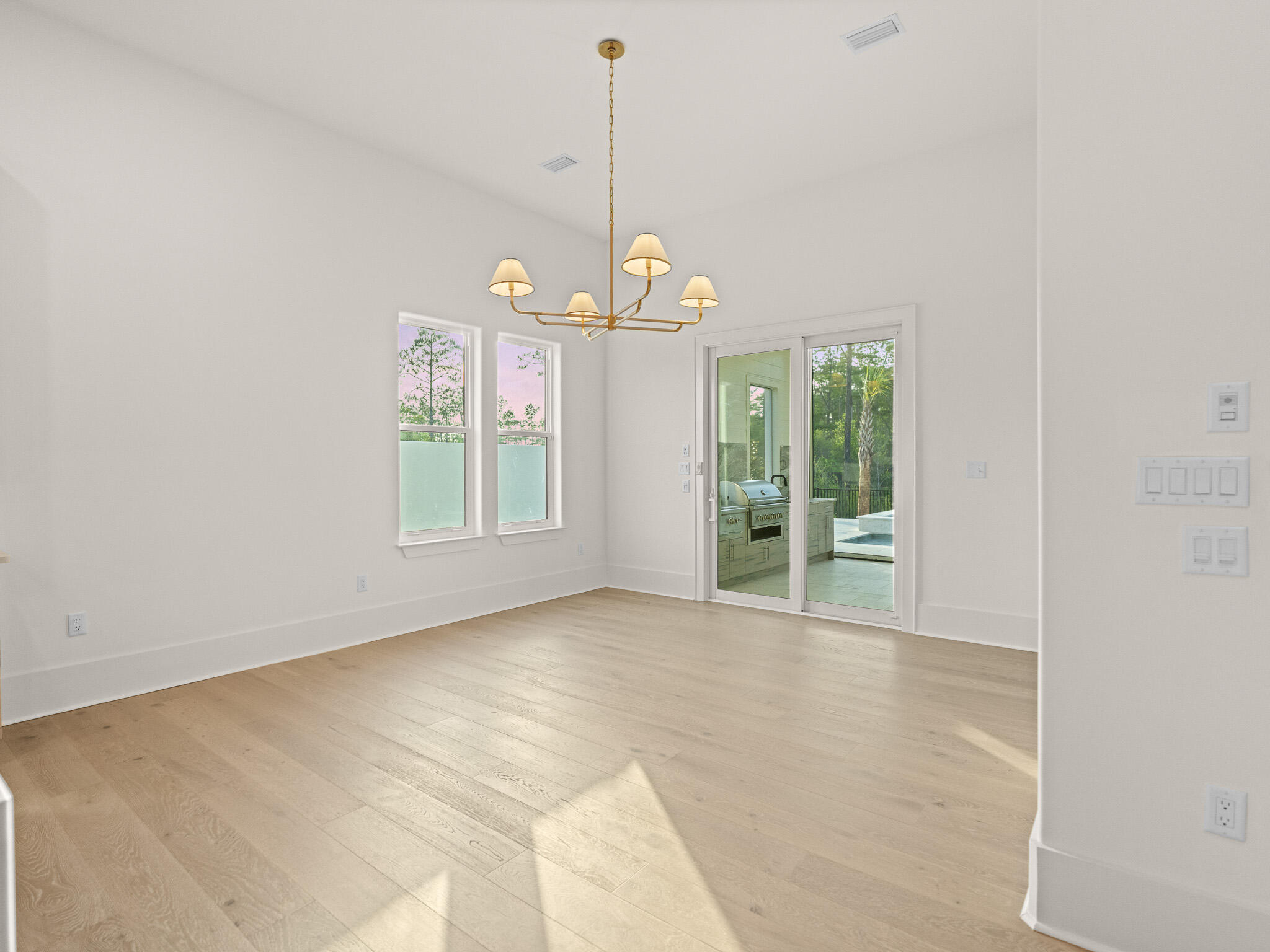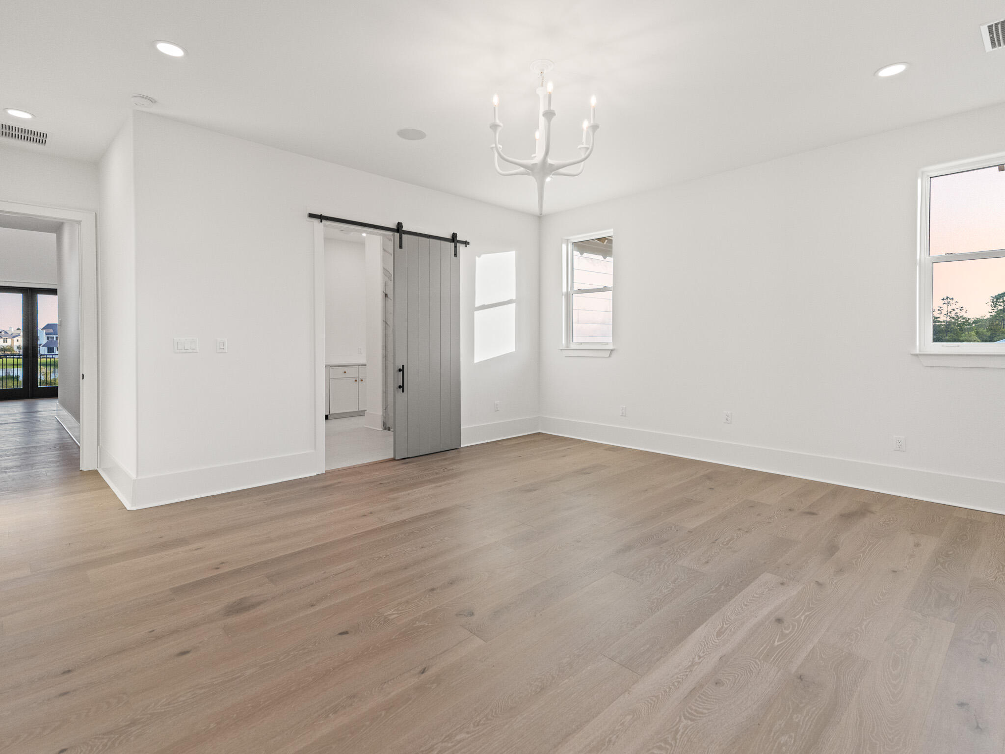 Designed by renowned architect John Williams, this elegant new construction nestled behind the private gates of Camp Creek features impressive craftsmanship with a tasteful coastal flair throughout. A chef's dream, the kitchen encompasses custom milled cabinetry, an oversized island, quartz countertops, and a luxury appliance package with gas range. The expansive living and dining areas are perfectly positioned off the kitchen with direct access to the covered porch with outdoor kitchen effectively blurring the lines between indoors and out while creating a true continuation of living and entertaining space.