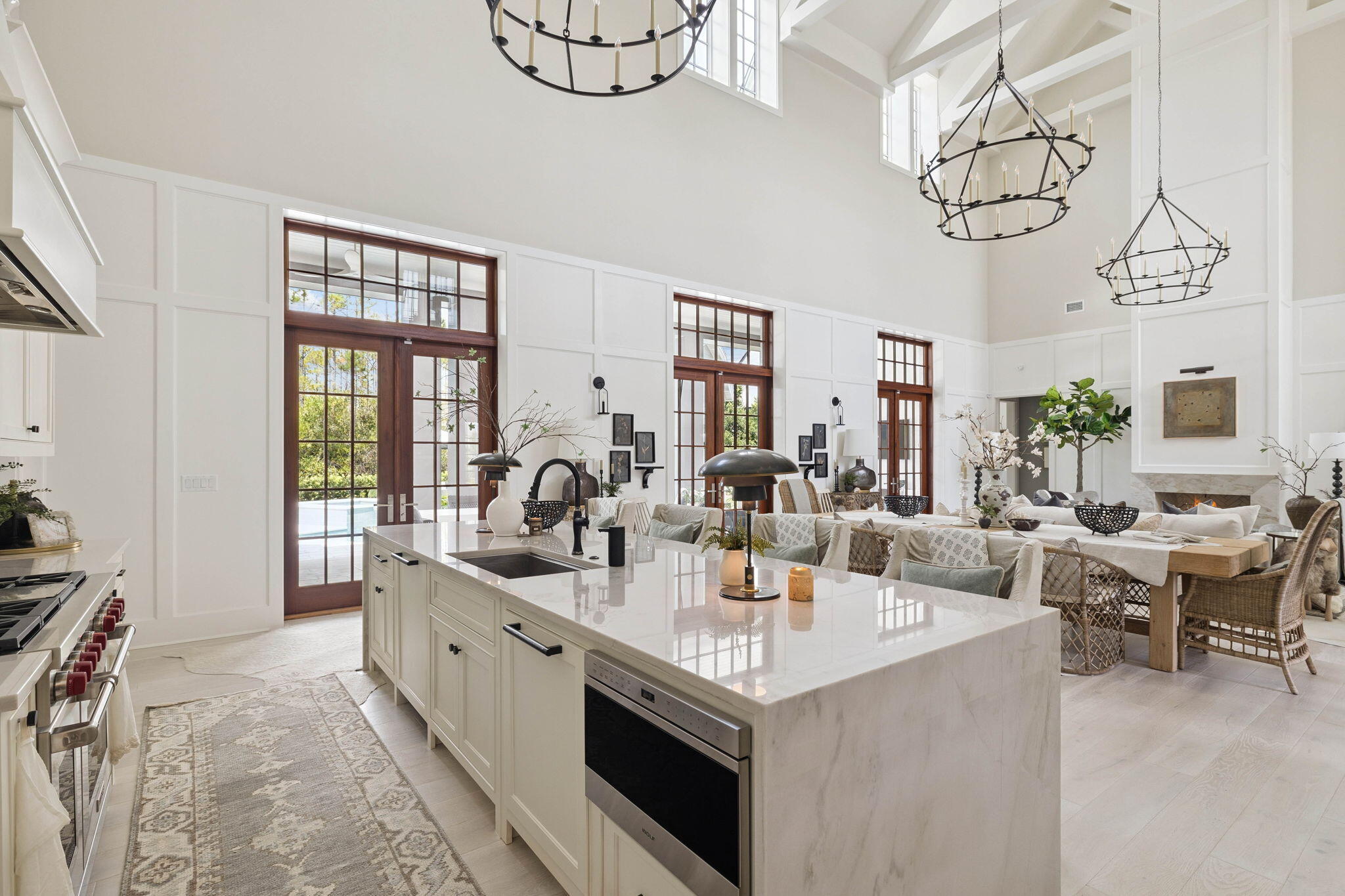 The outdoor spaces are equally remarkable, featuring a charming cabana complete with a cozy fireplace, perfect for gathering with friends and family after a day at the beach. The grilling porch offers a delightful outdoor dining experience surrounded by lush landscaping, complemented by tasteful landscape lighting that sets the mood for enchanting evenings.