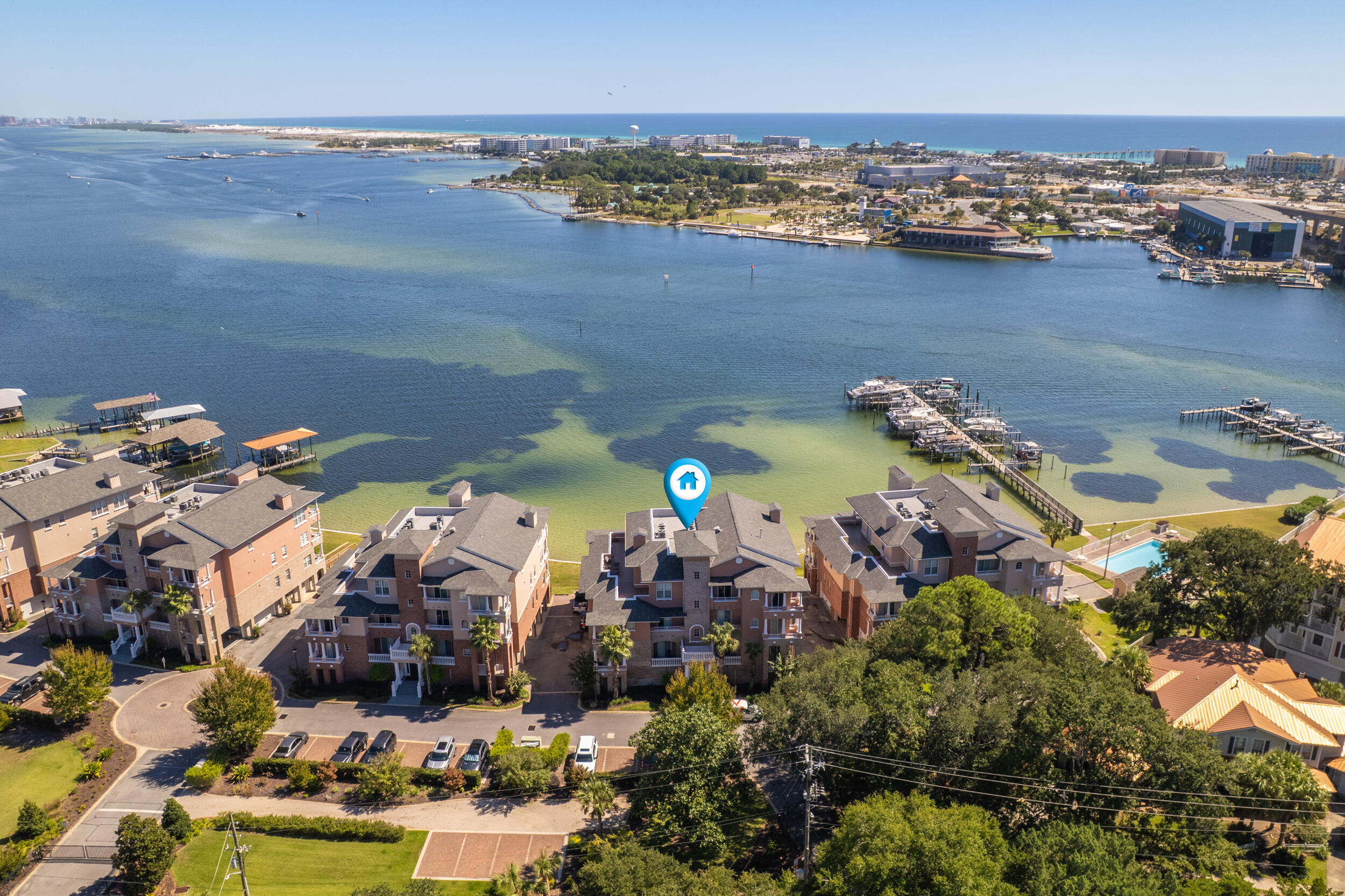 Price Reduced! This is a great 2nd floor unit in a 4 story building with boat slip #3 included and excellent views of the Choctawhatchee Bay and the Inter-coastal waterway. See the white sandy dunes all the way to the Destin Bridge, watch the fireworks on Wednesday evenings from your balcony between May and September. The gourmet kitchen is only one of the many upgrades. 9 foot ceilings, crown molding, a decorative mosaic Compass tile inlay in the entry, and a balcony off each bedroom. There is a whirlpool garden tub and separate shower in the master suite. There is a private enclosed 2 car private garage & an 11'x11' separate storage unit on the ground floor. The elevator makes for an easy '' lock and leave'' and ''one level'' lifestyle. New hot water heater and Garbage disposal in 2025.