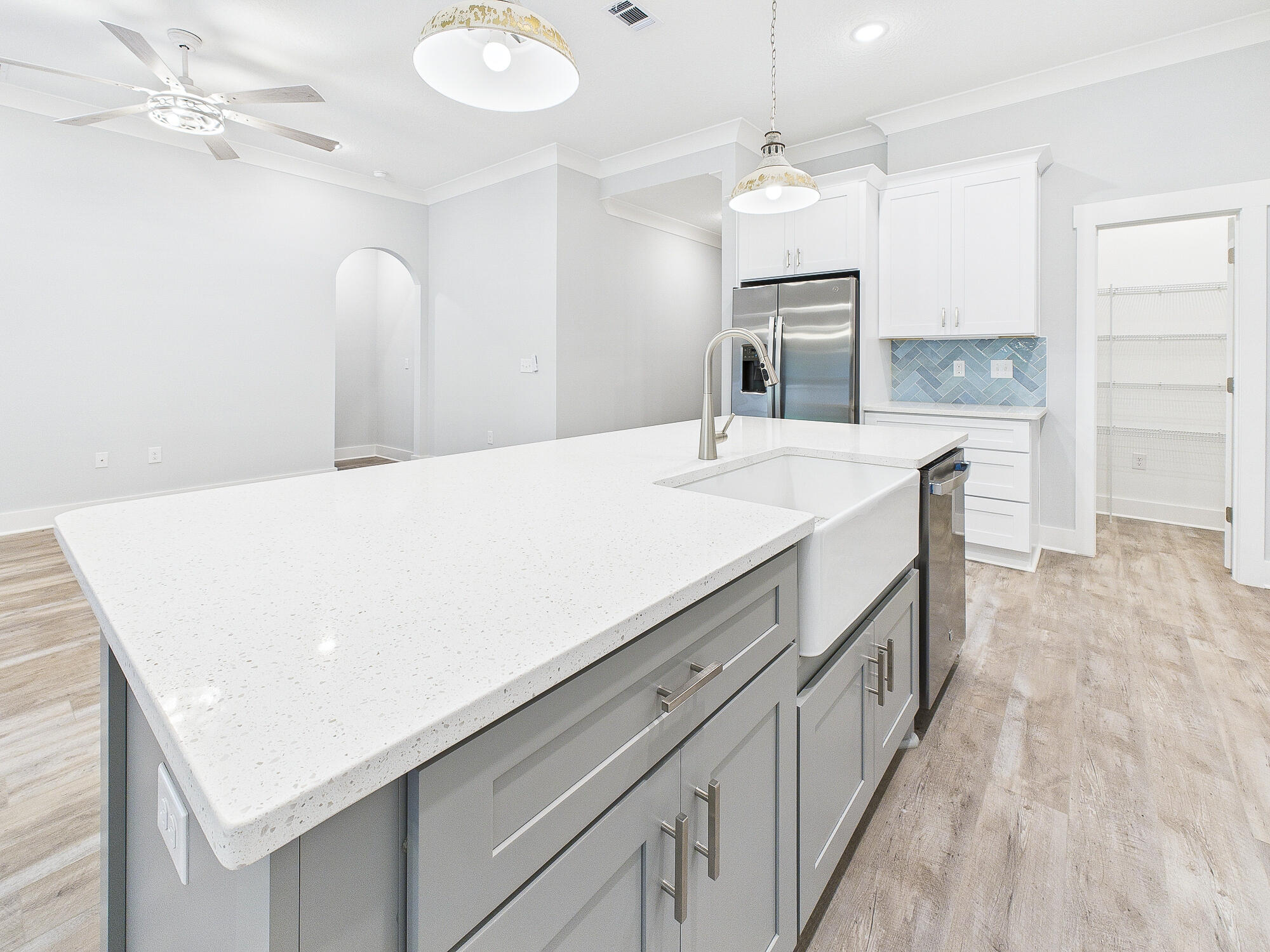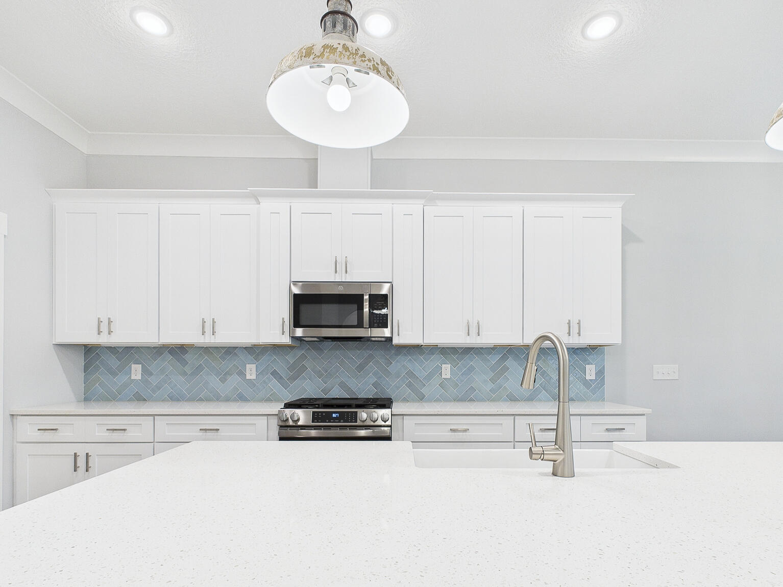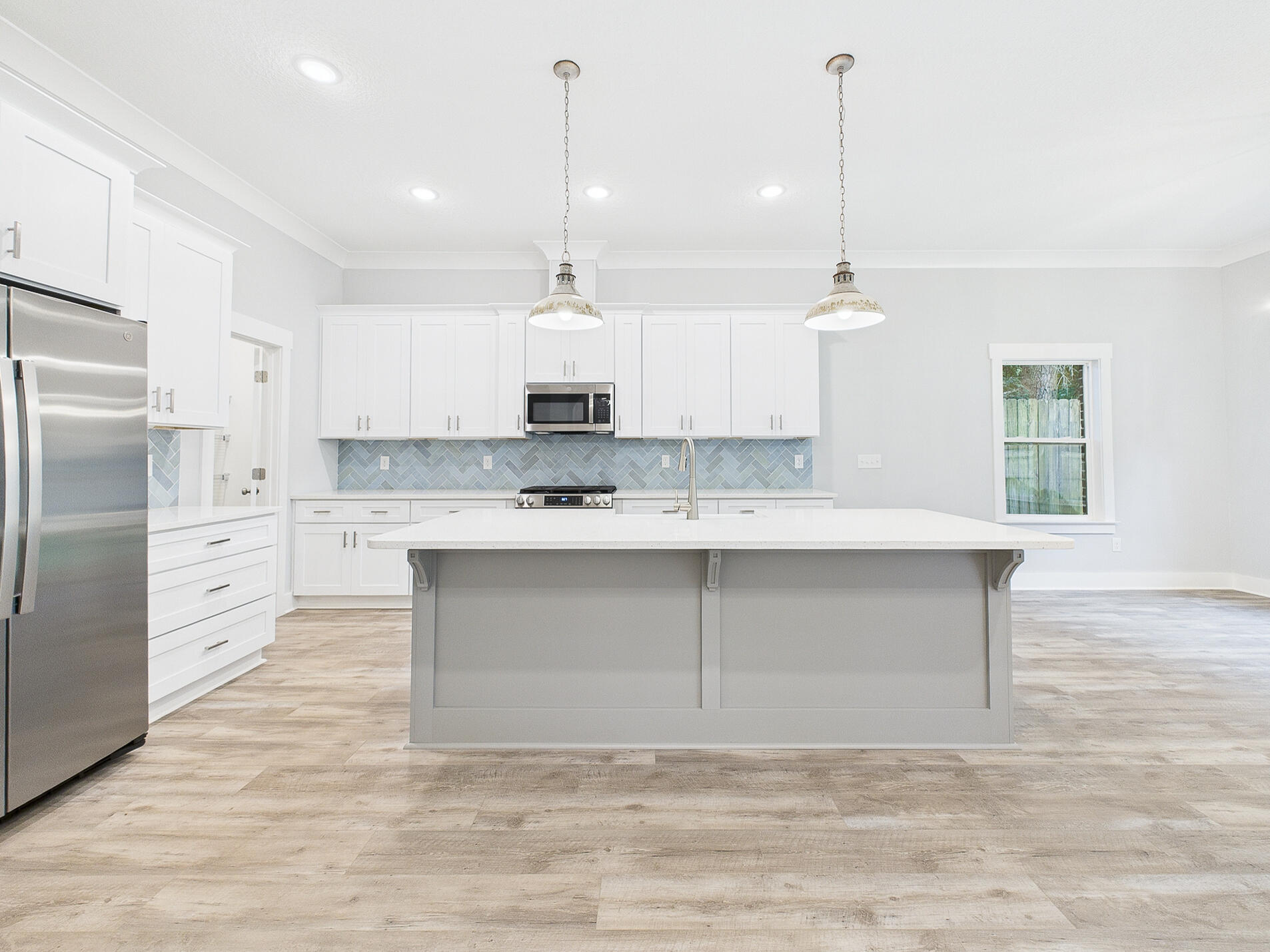 Kick off Football Season in this NEW HOME! The builder is offering $11,500 in ANY BUCKS and a Tailgate Party Pack including a Yeti Haul Cooler, Blackstone Grill, Cornhole boards, and a $100 gift card! Plus, the builder will pay doc stamps, title fees, and the final survey. A fence and refrigerator are also included, and buyers can choose from multiple blind options to customize their new home. Move into this stunning 5-bedroom, 3-bathroom new construction home with 2,318 sq. ft. of thoughtfully designed living space. Perfect for multi-generational living, this home blends modern comfort with timeless charm.The upgraded kitchen showcases quartz countertops, a tile backsplash, soft-close shaker cabinetry, pendant lighting over the island, and sleek stainless steel appliances. Luxury vinyl plank flooring flows throughout, including the bedrooms. This home is filled with custom features you won't typically find in other new construction homes: