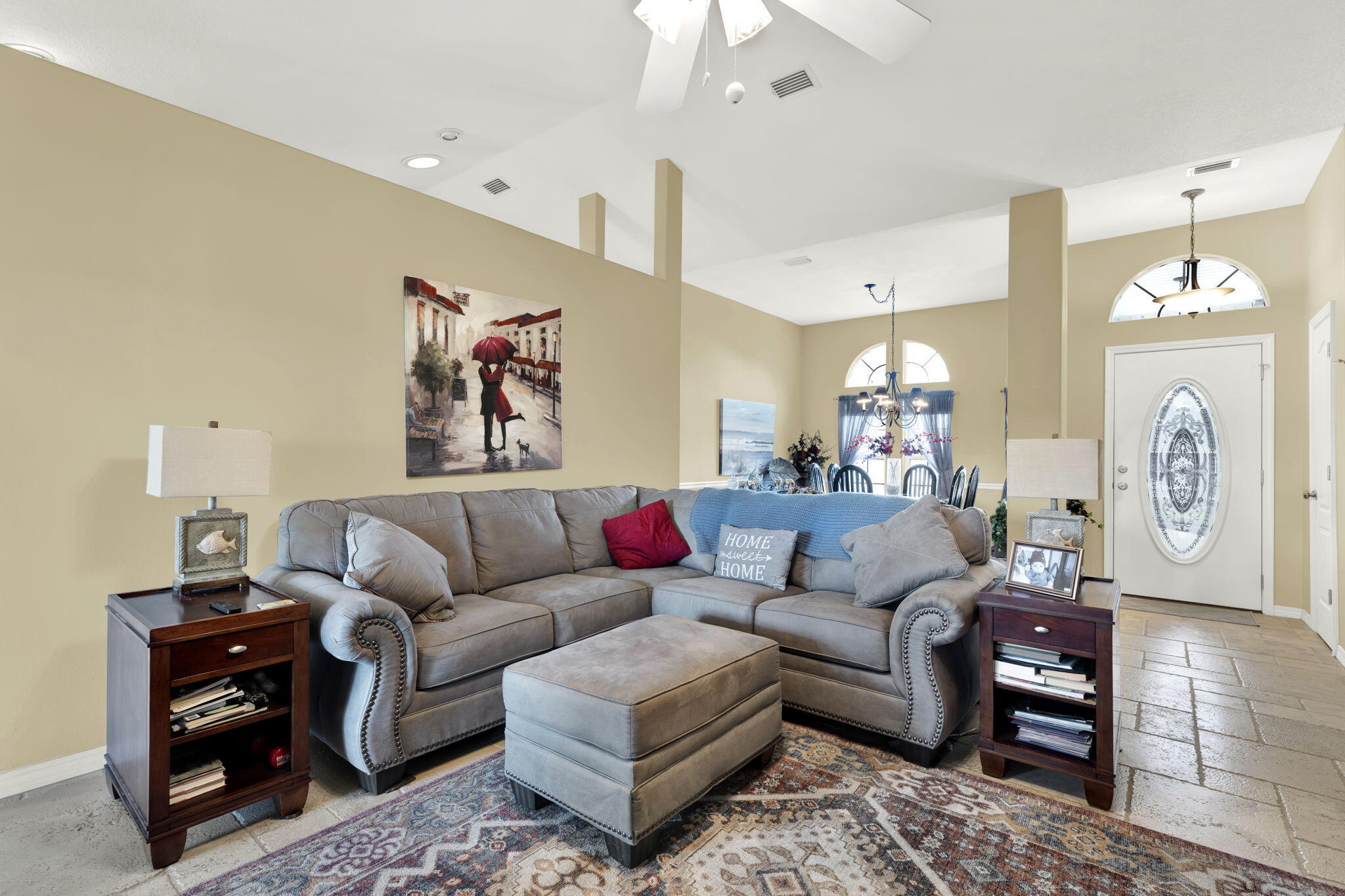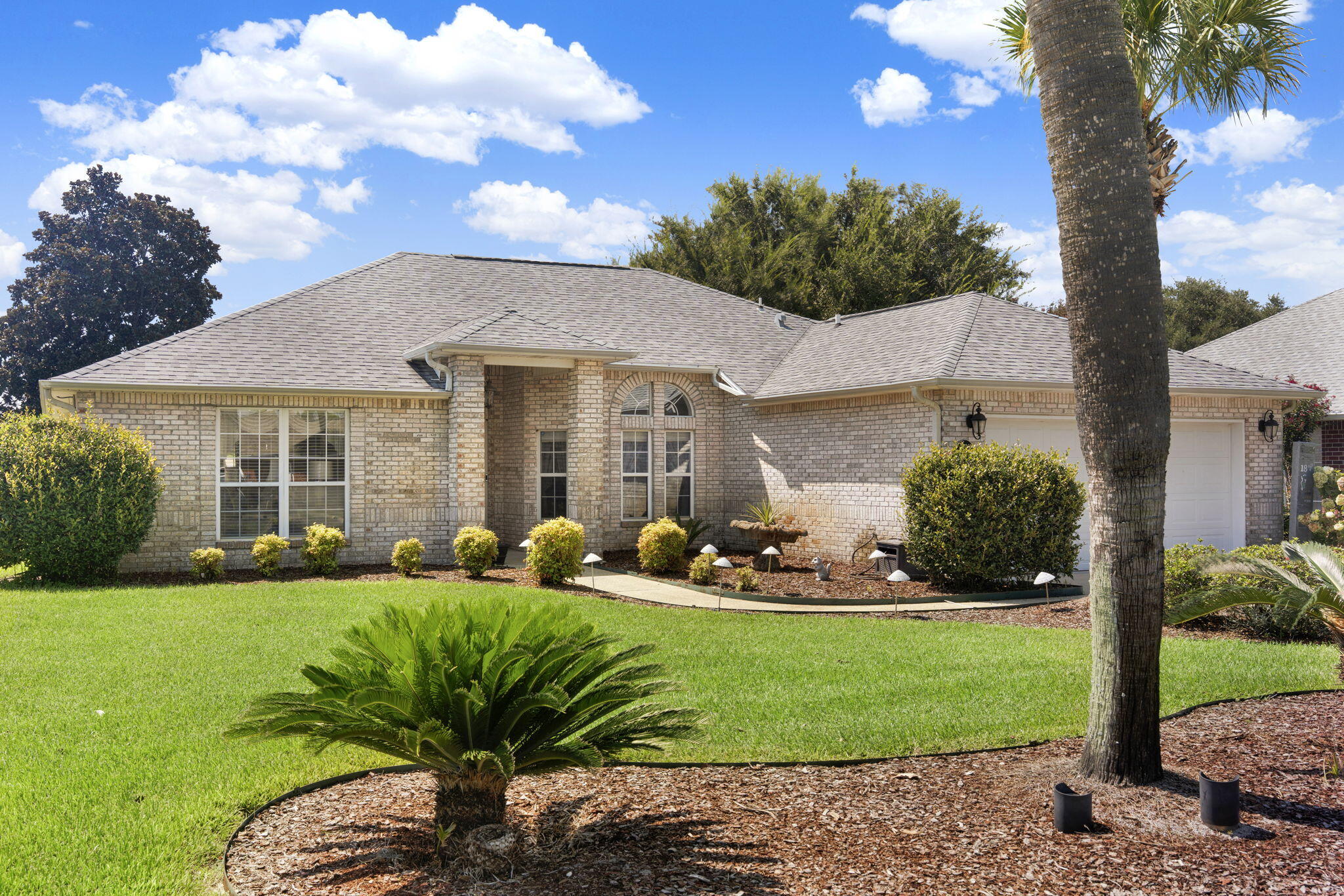 Welcome to this 1,876 sq. ft. all-brick home nestled along the Hidden Creek Golf Course in Navarre. Built in 1998, this well-maintained residence combines timeless design with thoughtful updates, offering both comfort and convenience.Step inside to a spacious living room highlighted by soaring cathedral ceilings and a cozy gas fireplace. The home also features a formal dining room and a separate breakfast nook, perfect for casual dining. The kitchen is beautifully updated with stainless steel appliances, granite countertops, and an extended backsplash.The master suite boasts a trey ceiling and serene golf course views. Its ensuite bathroom includes a double vanity, walk-in closet, separate shower, and relaxing tub. Three additional bedrooms provide plenty of..... space for family, guests, or a home office.