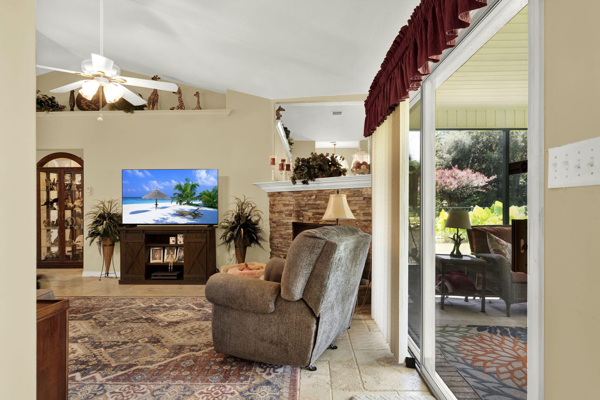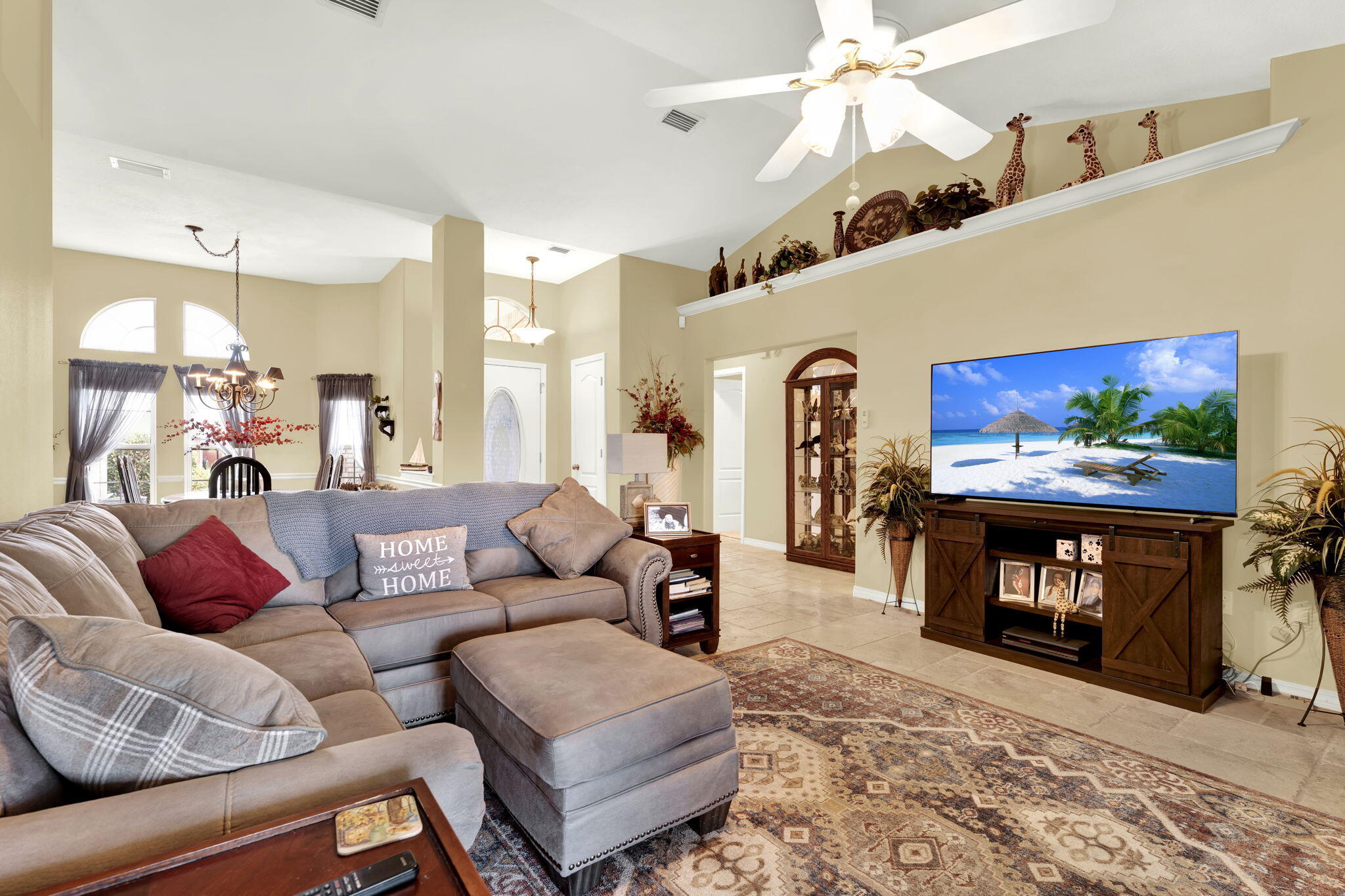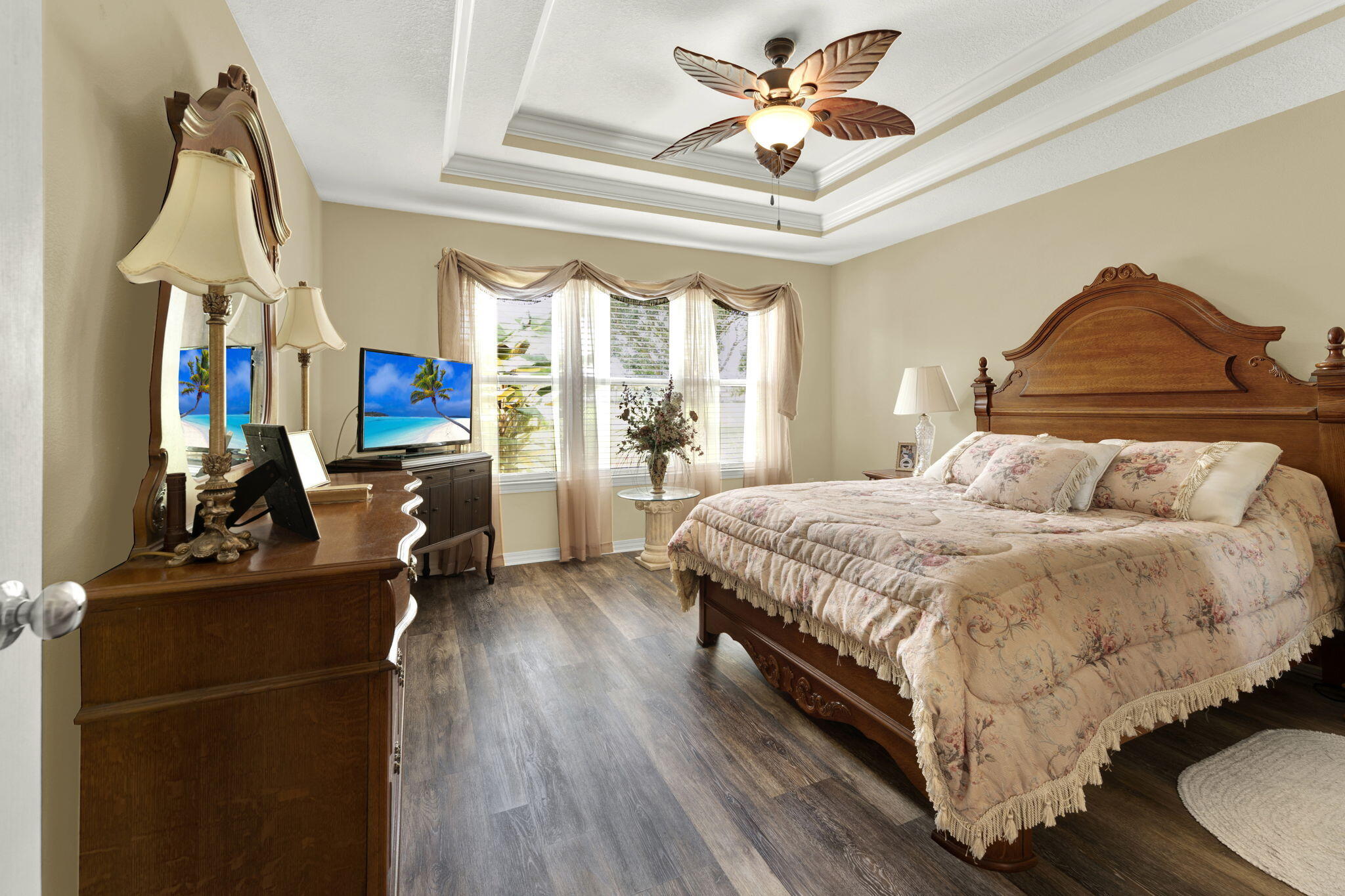 Enjoy the Florida lifestyle on the roomy screened-in back porch overlooking the golf coursean ideal retreat for morning coffee or evening relaxation. The garage includes epoxy floors and pull-down stairs for easy attic access.