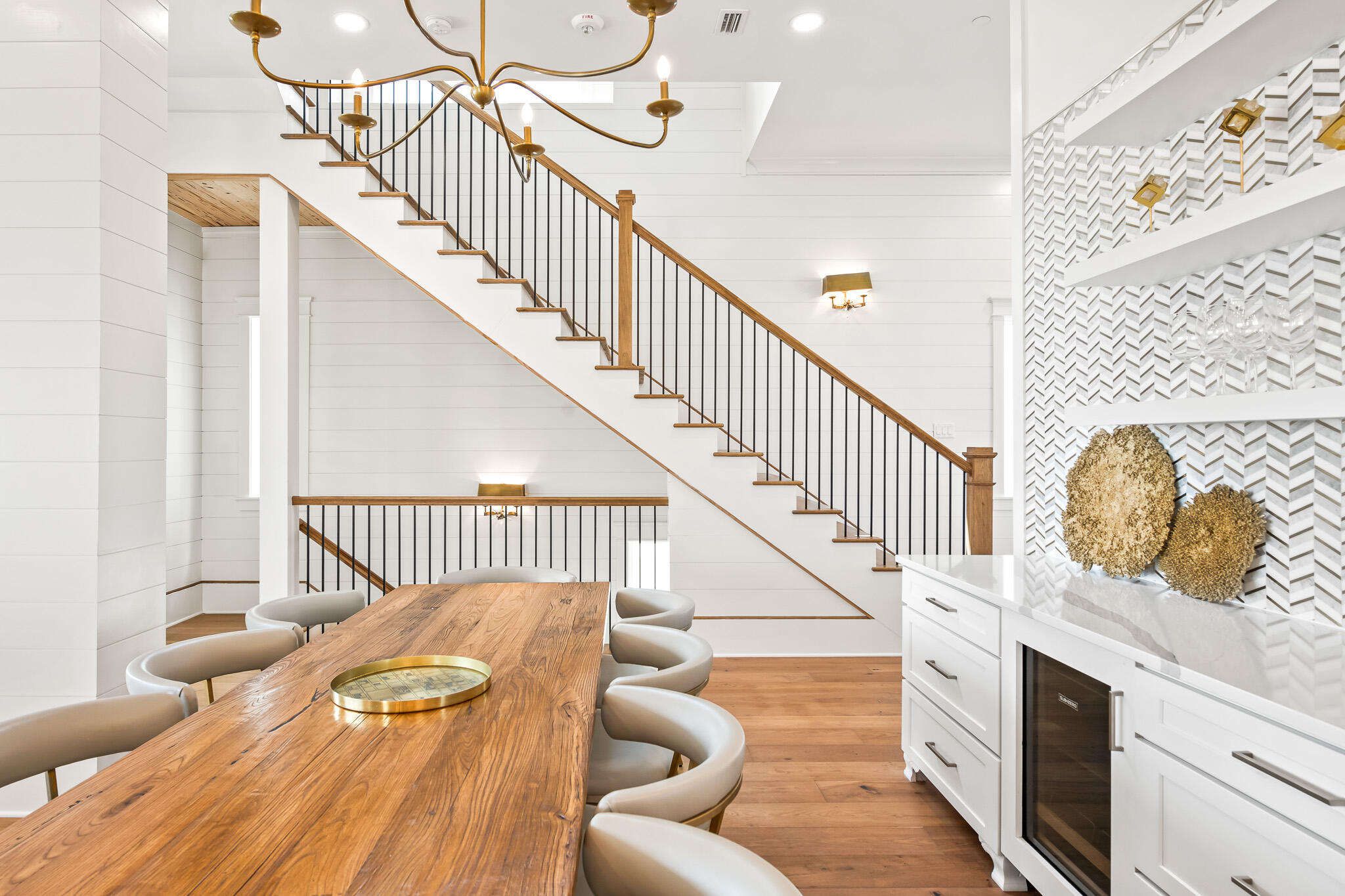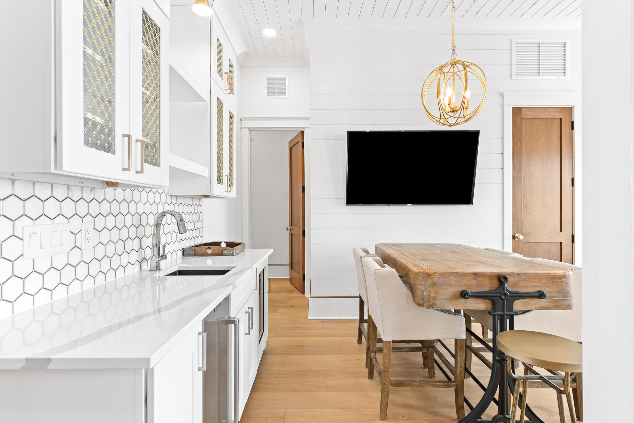 Anchored in the exclusive Palm Court enclave just south of 30A, this newly built Inlet Beach residence delivers a rare combination of architectural presence and coastal ease. Rising four stories and spanning nearly 5,000 square feet of thoughtfully executed design, 17 Palm Court was crafted for those who move between worlds, effortlessly balancing laid-back beach days with refined, high-design living. From the moment you step inside, clean lines, curated materials, and intentional volume set the tone. Wide-plank hardwoods, statement lighting, and expansive glazing elevate the interiors. A private elevator connects each level with ease. The main living floor is designed to impressopen, airy, and anchored by a custom kitchen outfitted with chef-grade appliances, sleek cabinetry, and a massive waterfall island that turns everyday dining into a showpiece.
