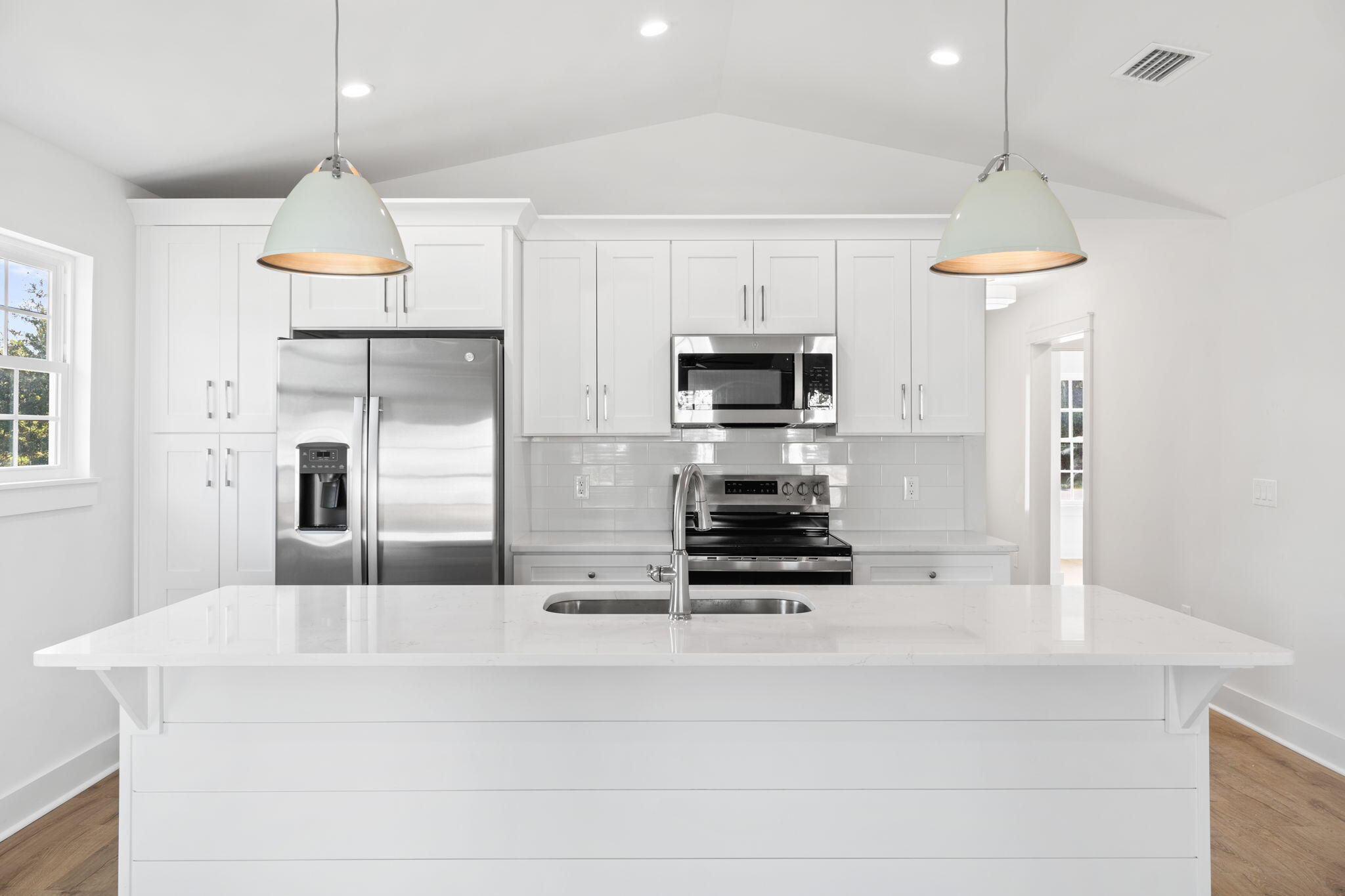Brand new and built to impress - welcome to 925 Bonnie Lane! This thoughtfully designed home in Panama City is a smart move for anyone looking for quality, comfort, and convenience. Just minutes from Tyndall Air Force Base, public boat ramps, parks, and all the essentials of town, this location offers the best of both peace and practicality. Step inside to vaulted ceilings, tons of natural light, and an open-concept layout that feels spacious yet inviting. The kitchen delivers serious style with sleek quartz countertops, stainless steel appliances, soft-close shaker cabinets, and a large island perfect for hosting or your morning coffee routine. Durable vinyl plank flooring runs throughout. No carpet = no stress or mess.