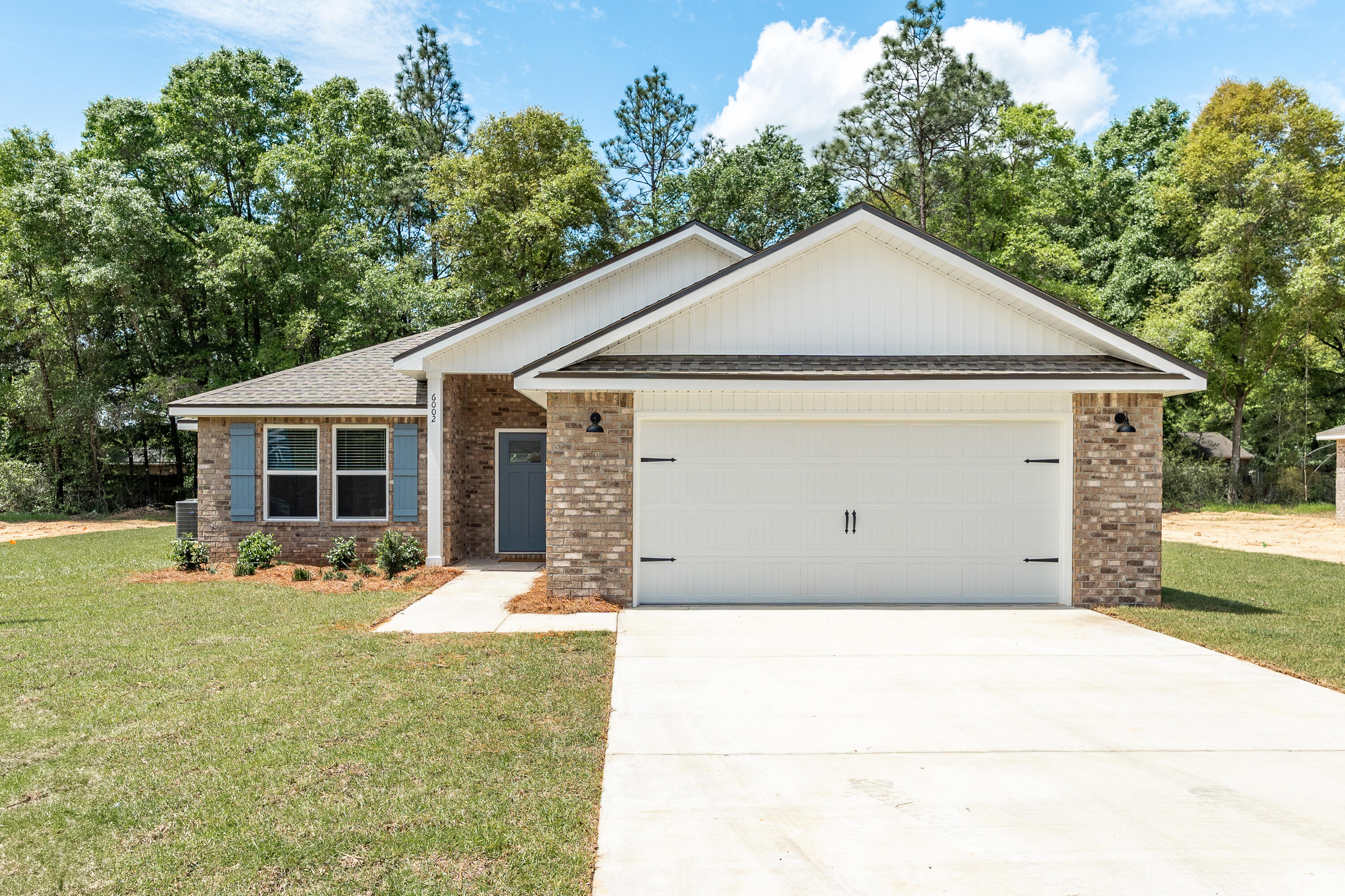 The ''Jackson'' plan has a spacious functional flow, featuring open family room/kitchen/dining. The work island has bar seating, cozy dining nook, overlooking covered rear porch. Quartz countertops, white shaker style cabinets. Owner's bath has double vanities, linen storage, generous walk-in closet. Split bedroom plan, luxury vinyl plank flooring in common areas, carpet in bedrooms. Finished garage, fully landscaped yard. NO HOA - 1/2 ACRE!! Call to see today. Home will be completed Early Nov.Photo of a similar home completed. Elevation may vary as well as interior/exterior colors. Seller will contribute up to $10,000 towards closing costs and/or prepaids and/or rate buydown (restrictions apply).